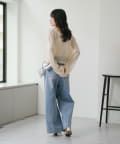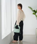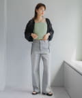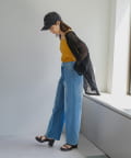 Mサイズはゆったりめなのでミニボトムやストレートシルエットのパンツなどコンパクトなデザインのボトムとマッチします。