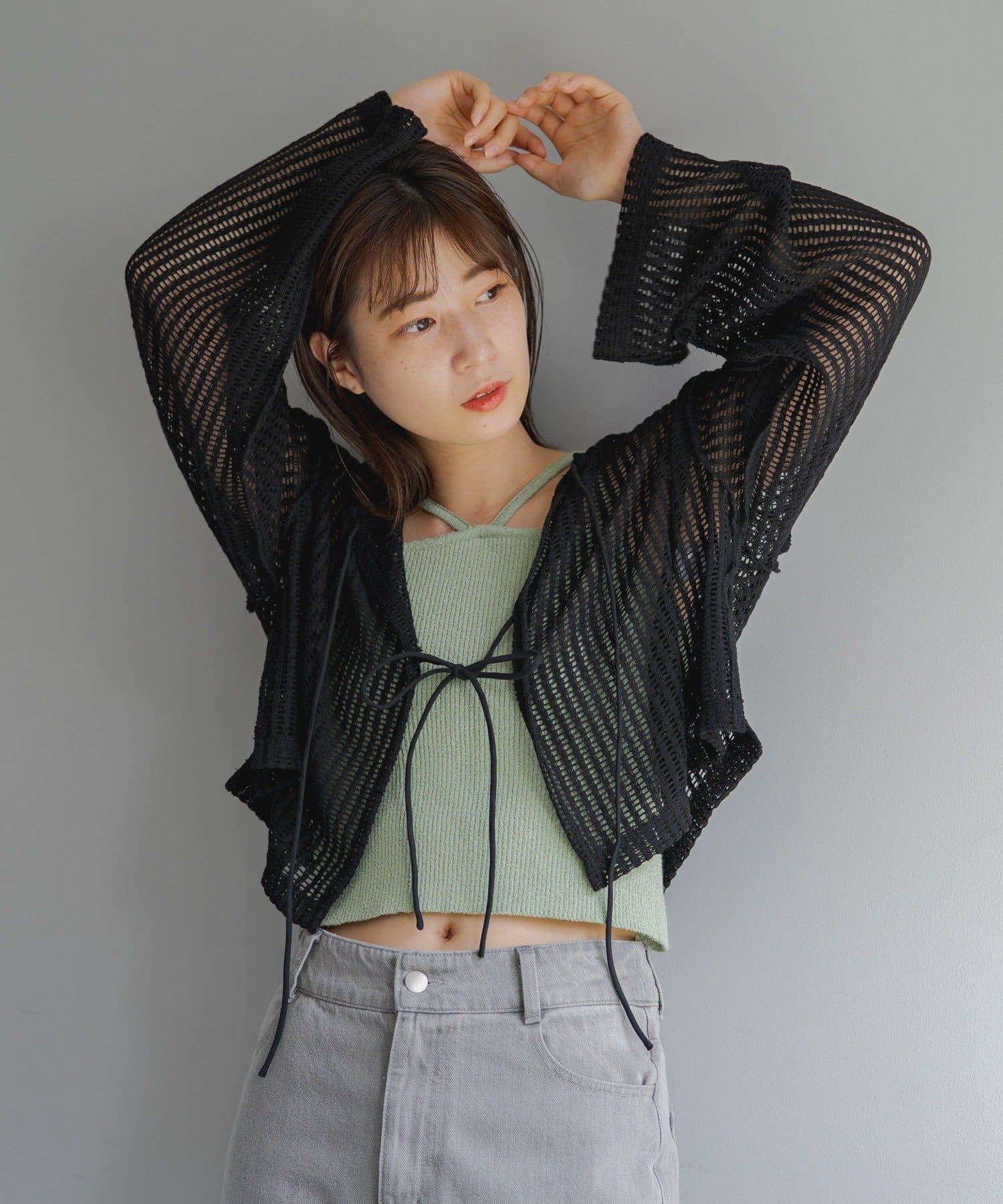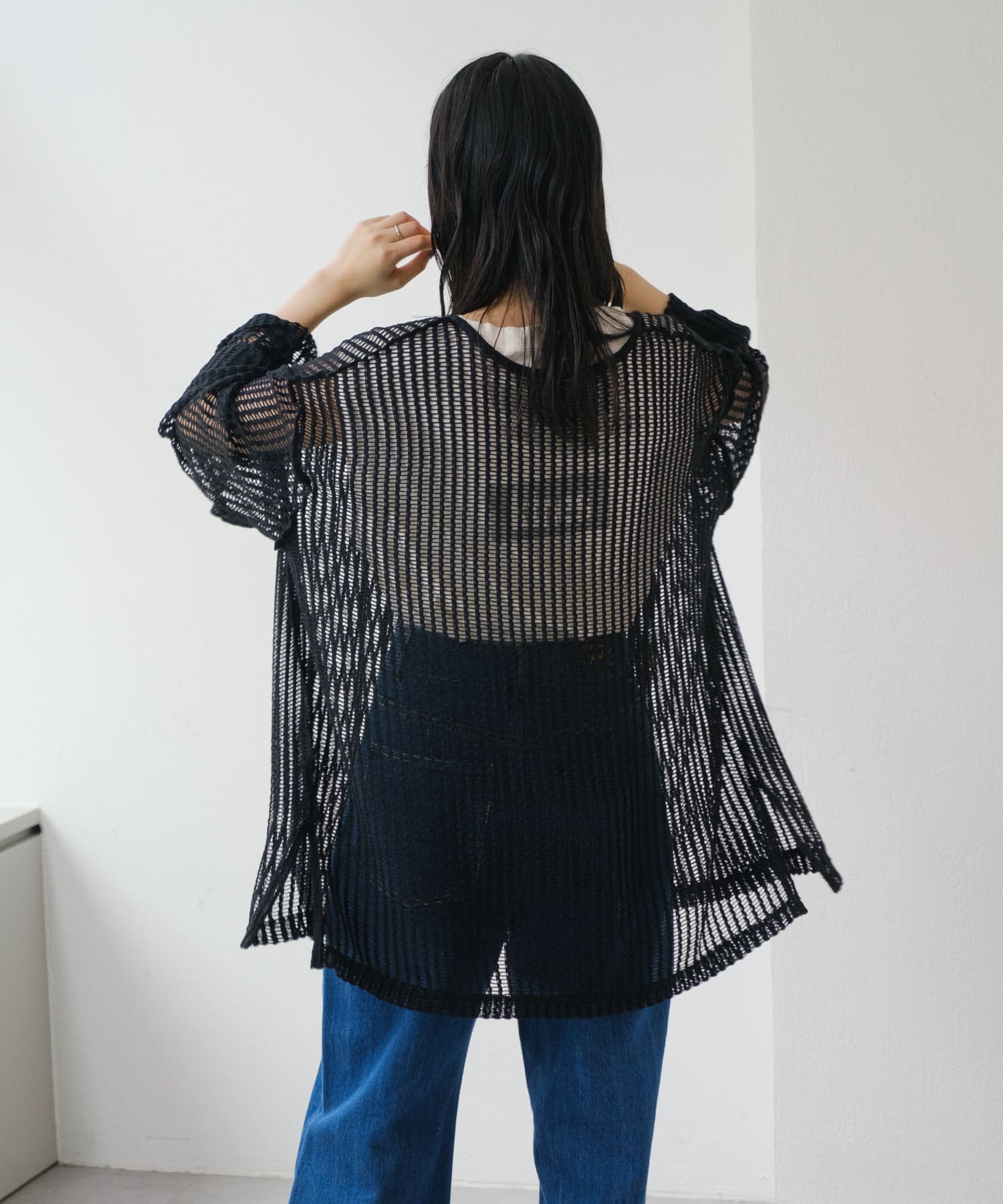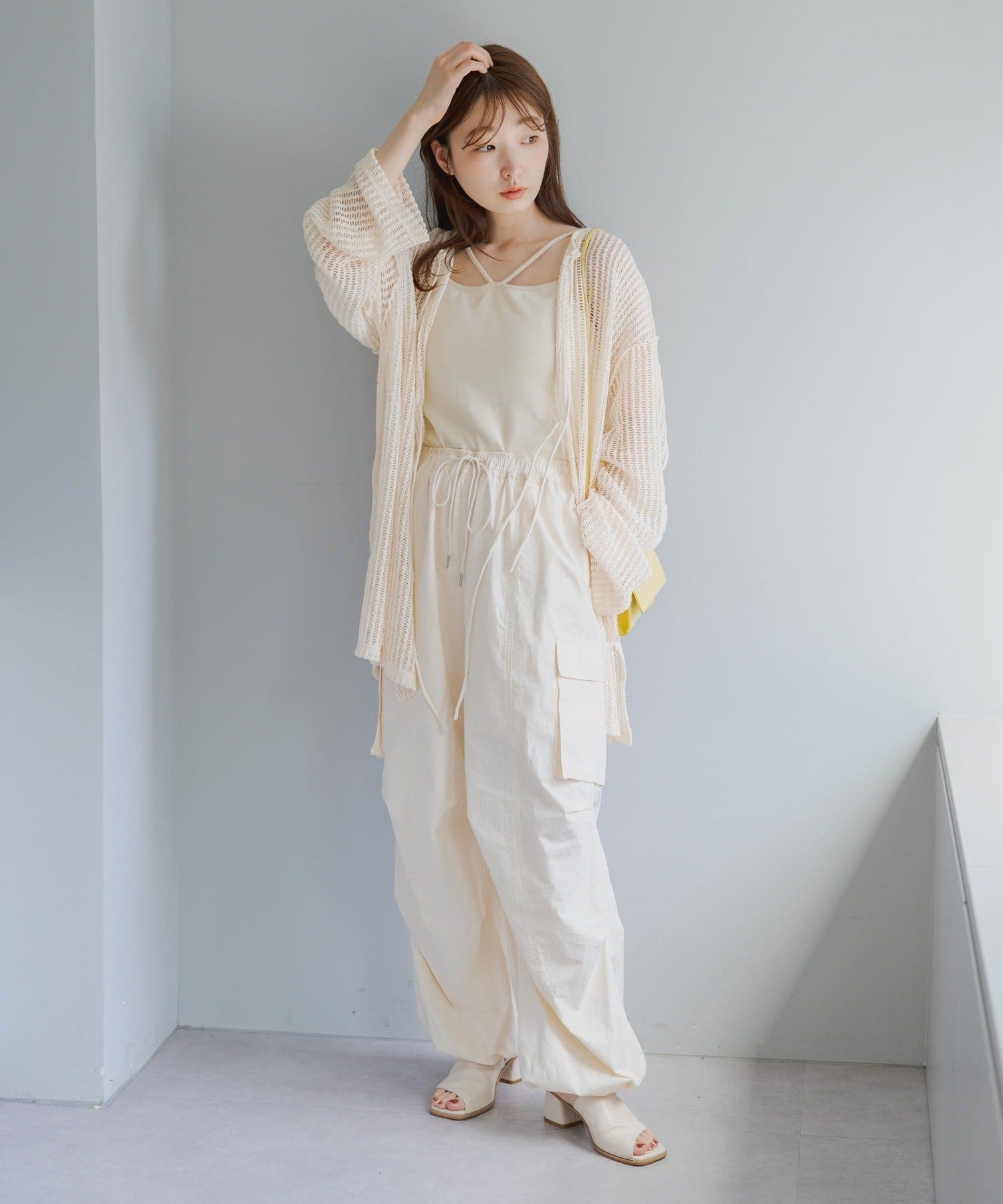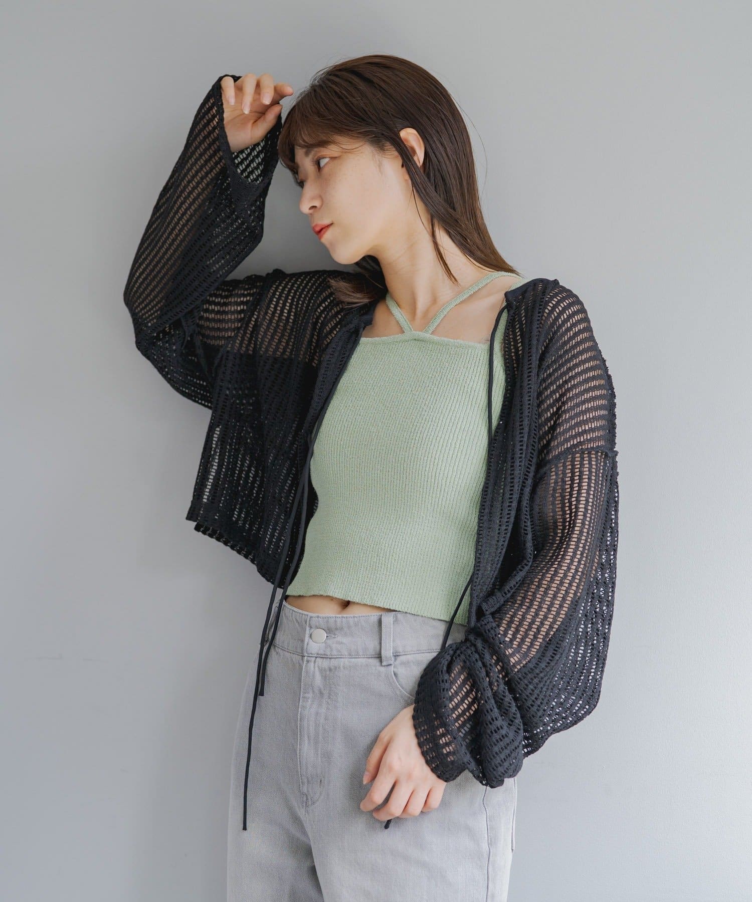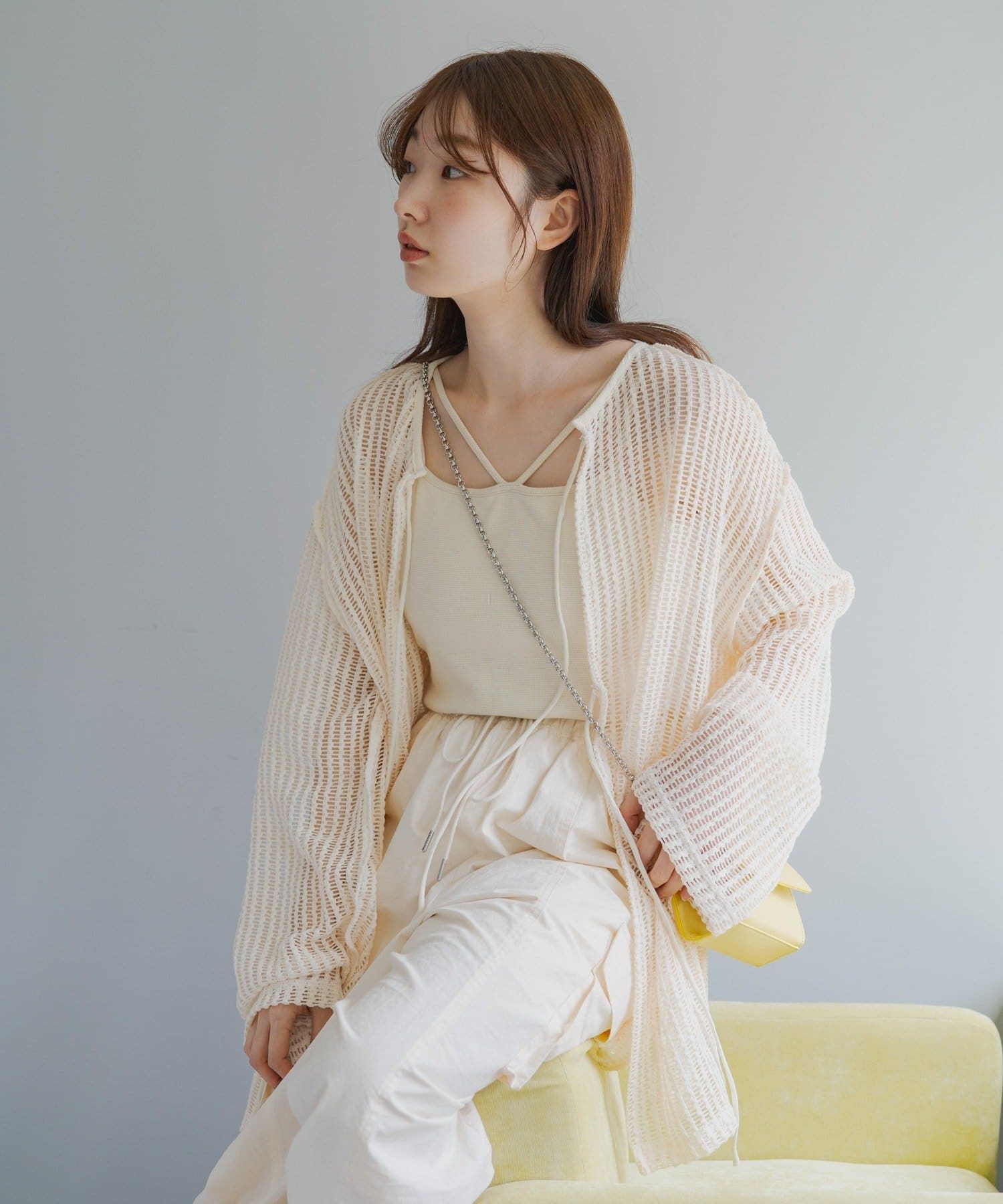キャミソールやタンクトップと合わせて透け感を楽しんでいただくのがおすすめ。