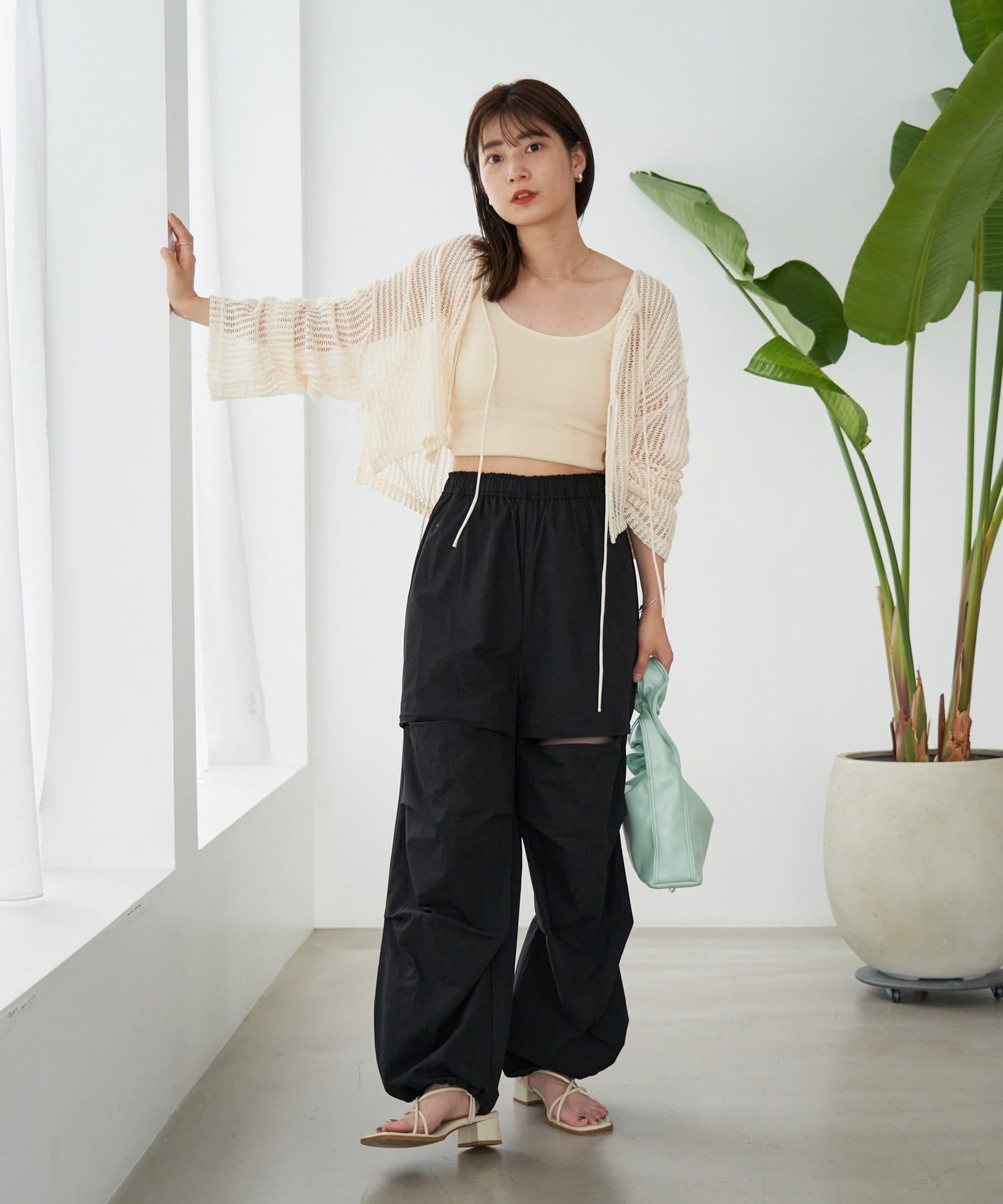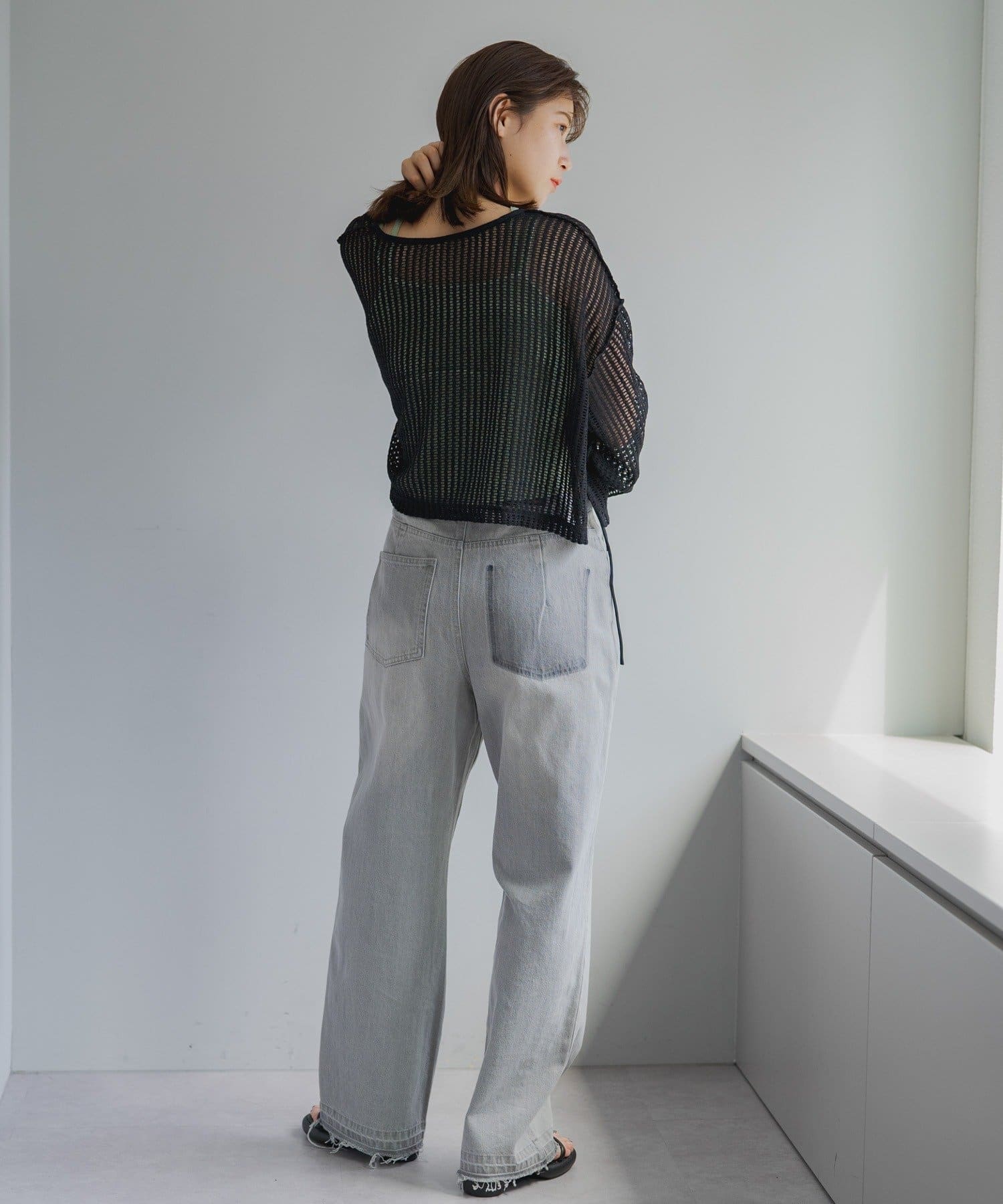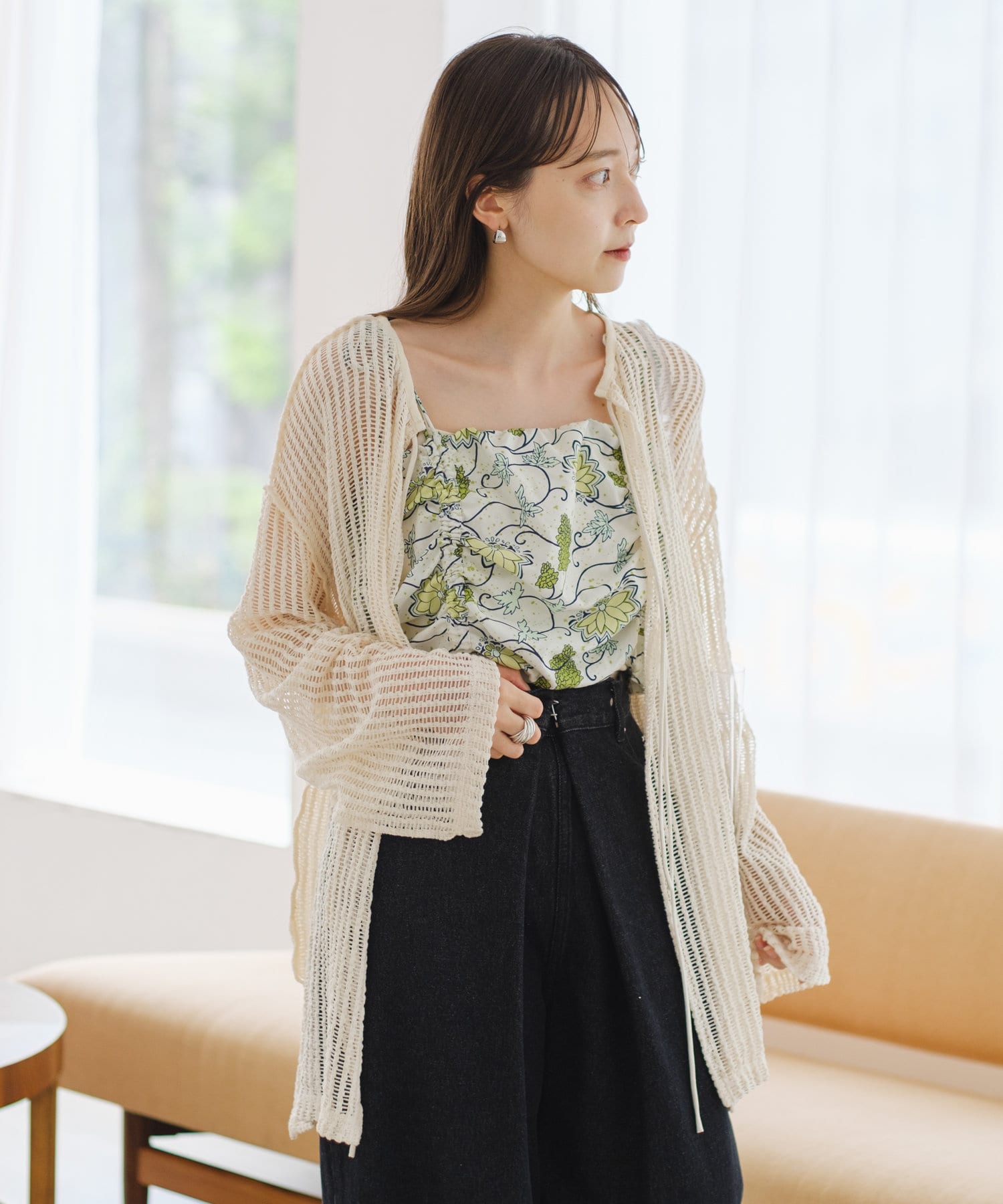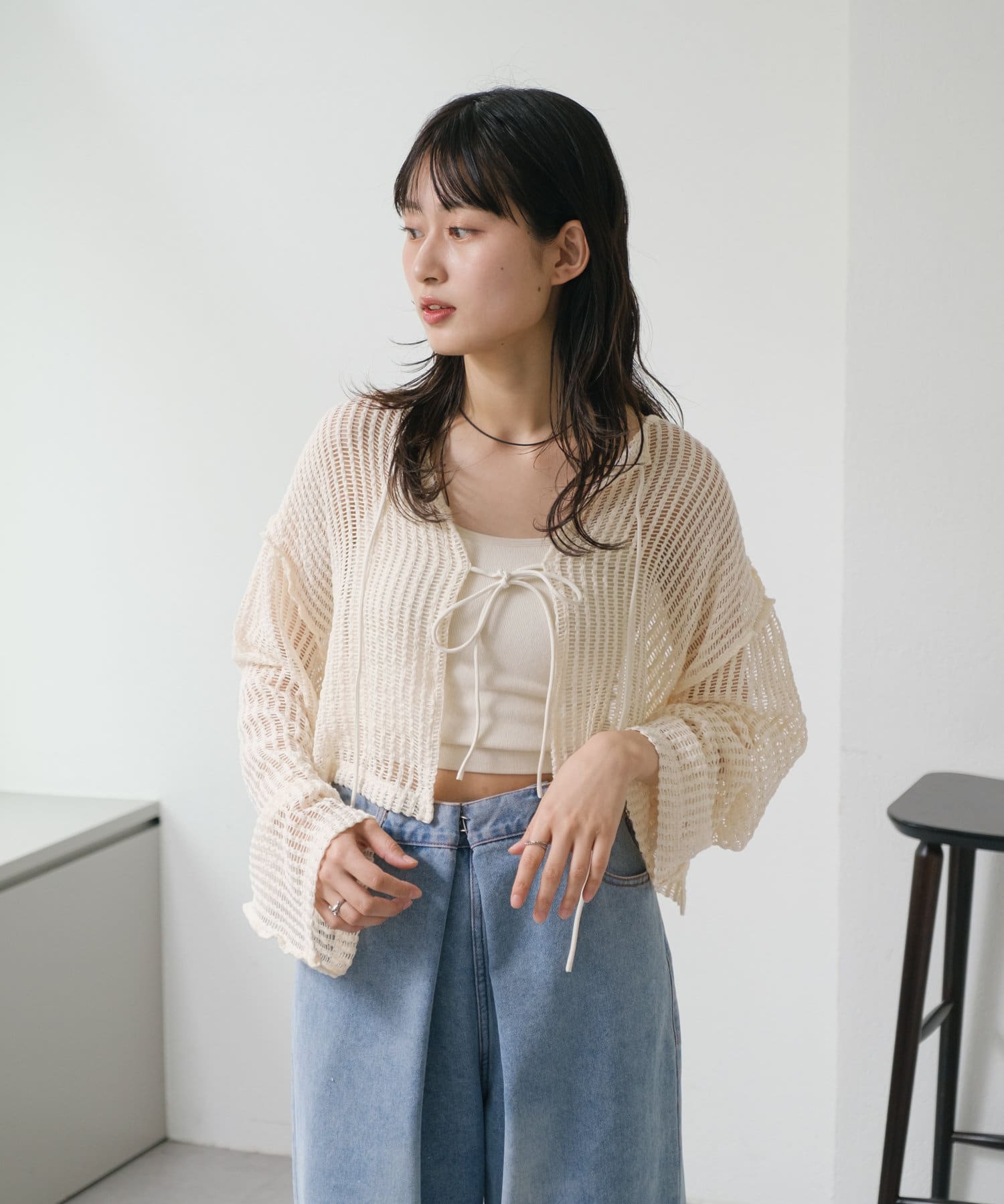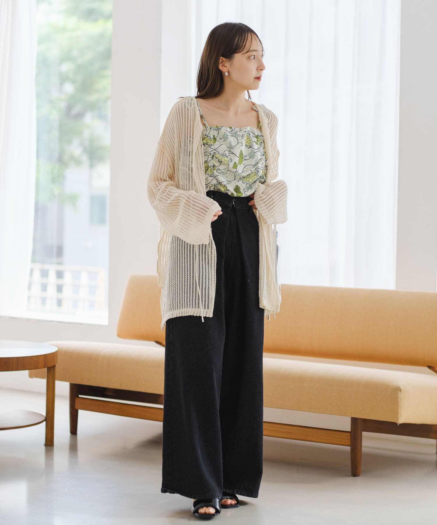 キャミソールやタンクトップと合わせて透け感を楽しんでいただくのがおすすめ。