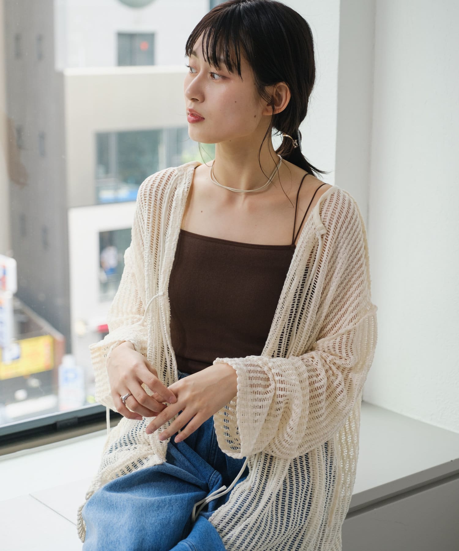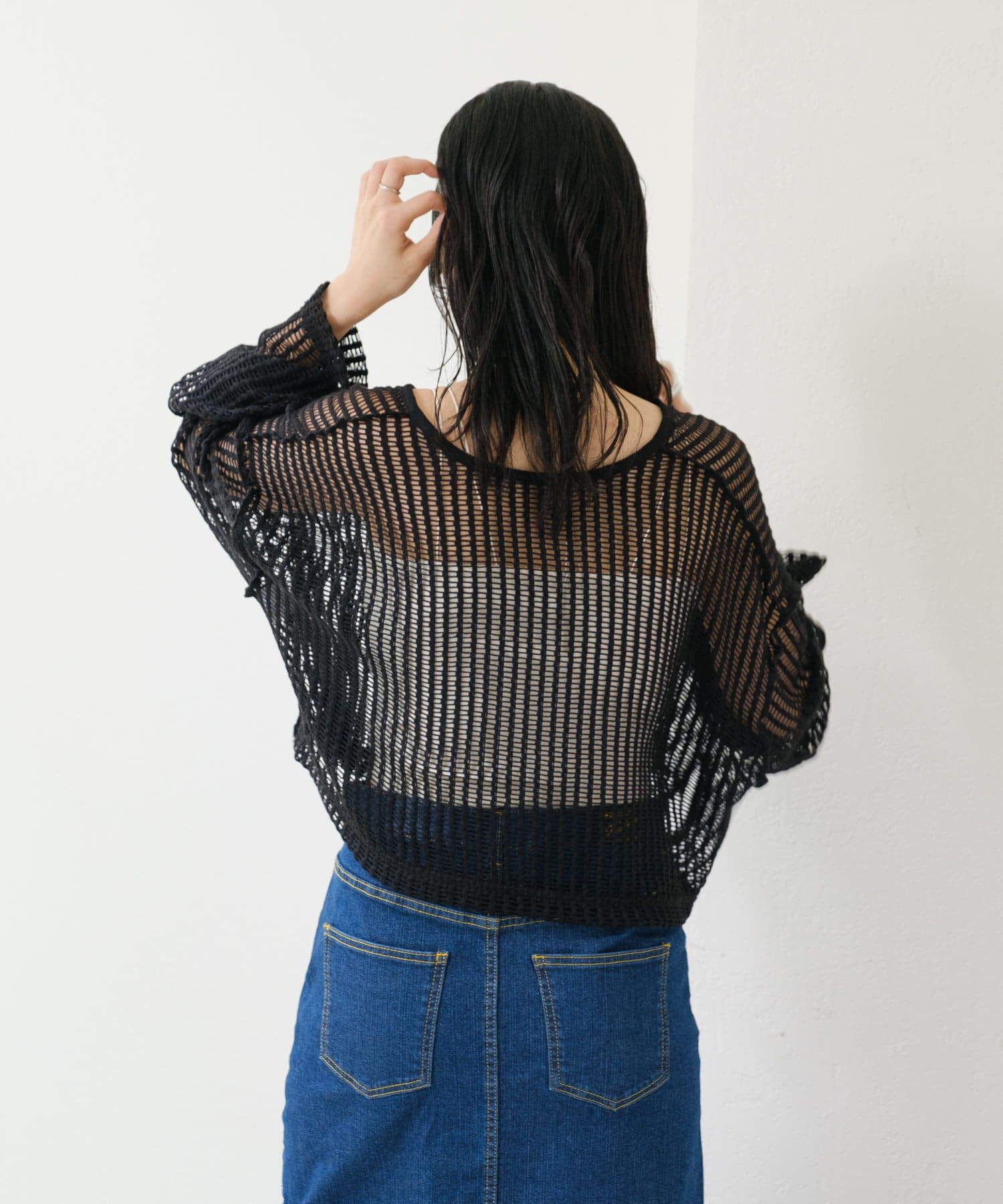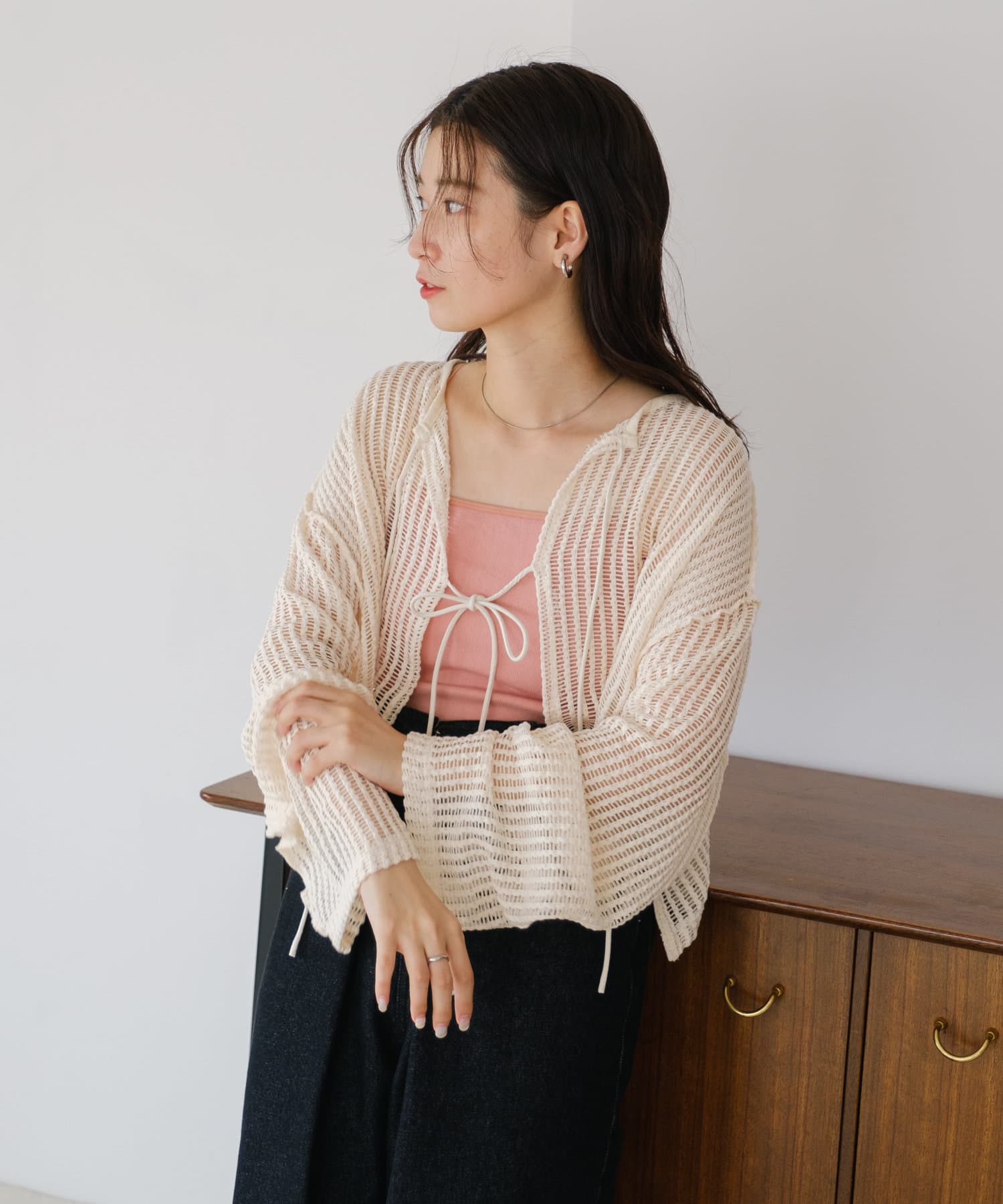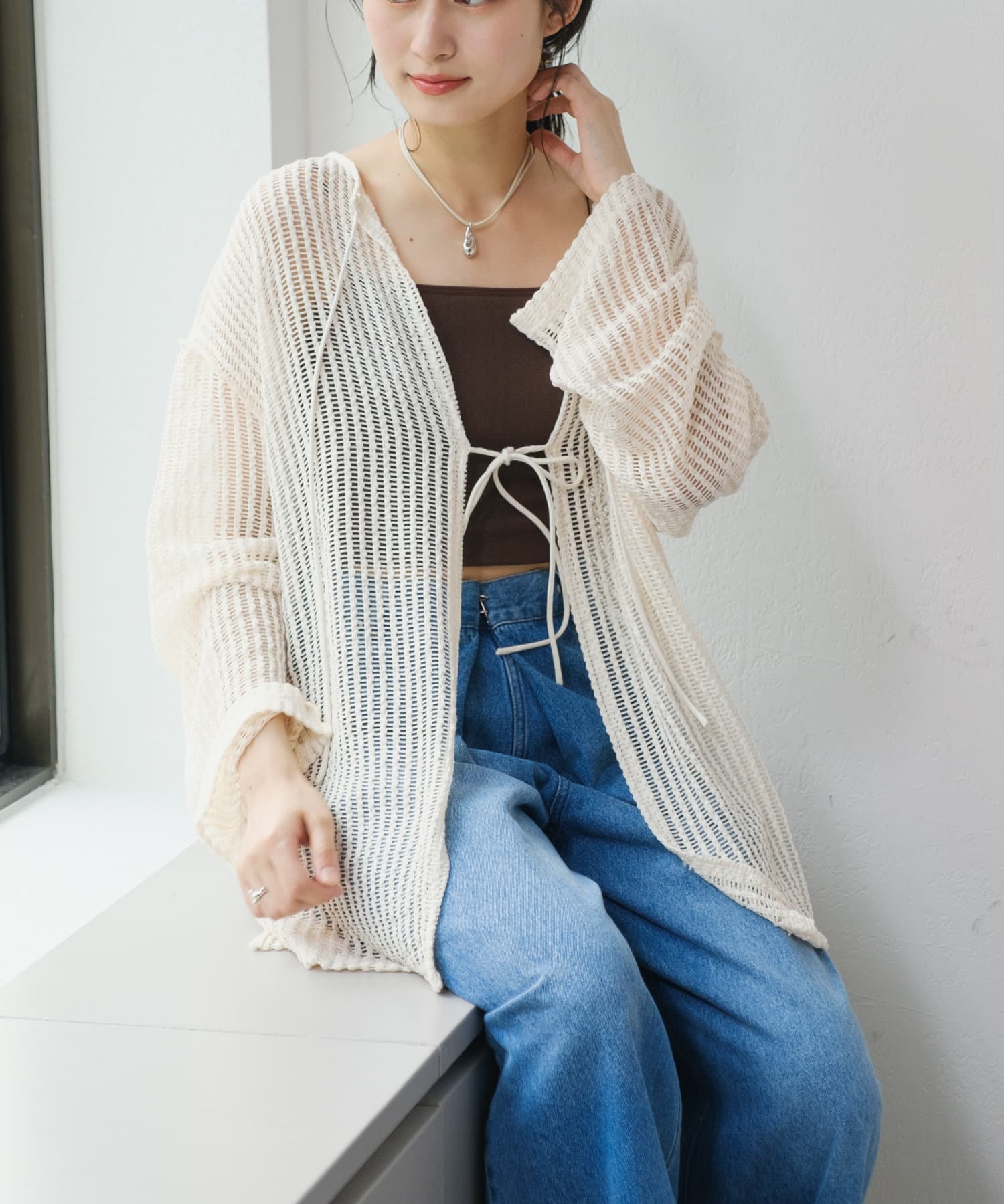 キャミソールやタンクトップと合わせて透け感を楽しんでいただくのがおすすめ。