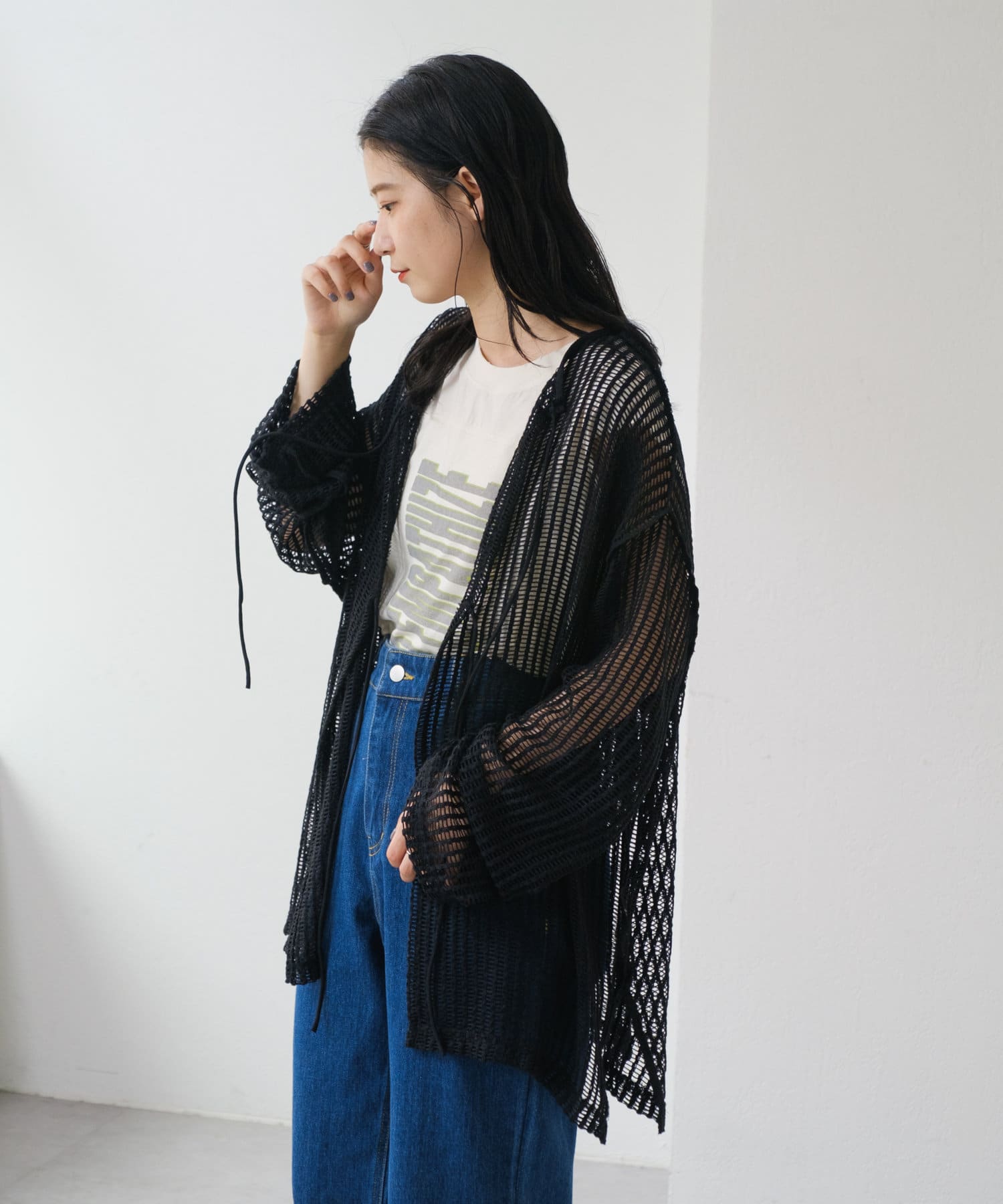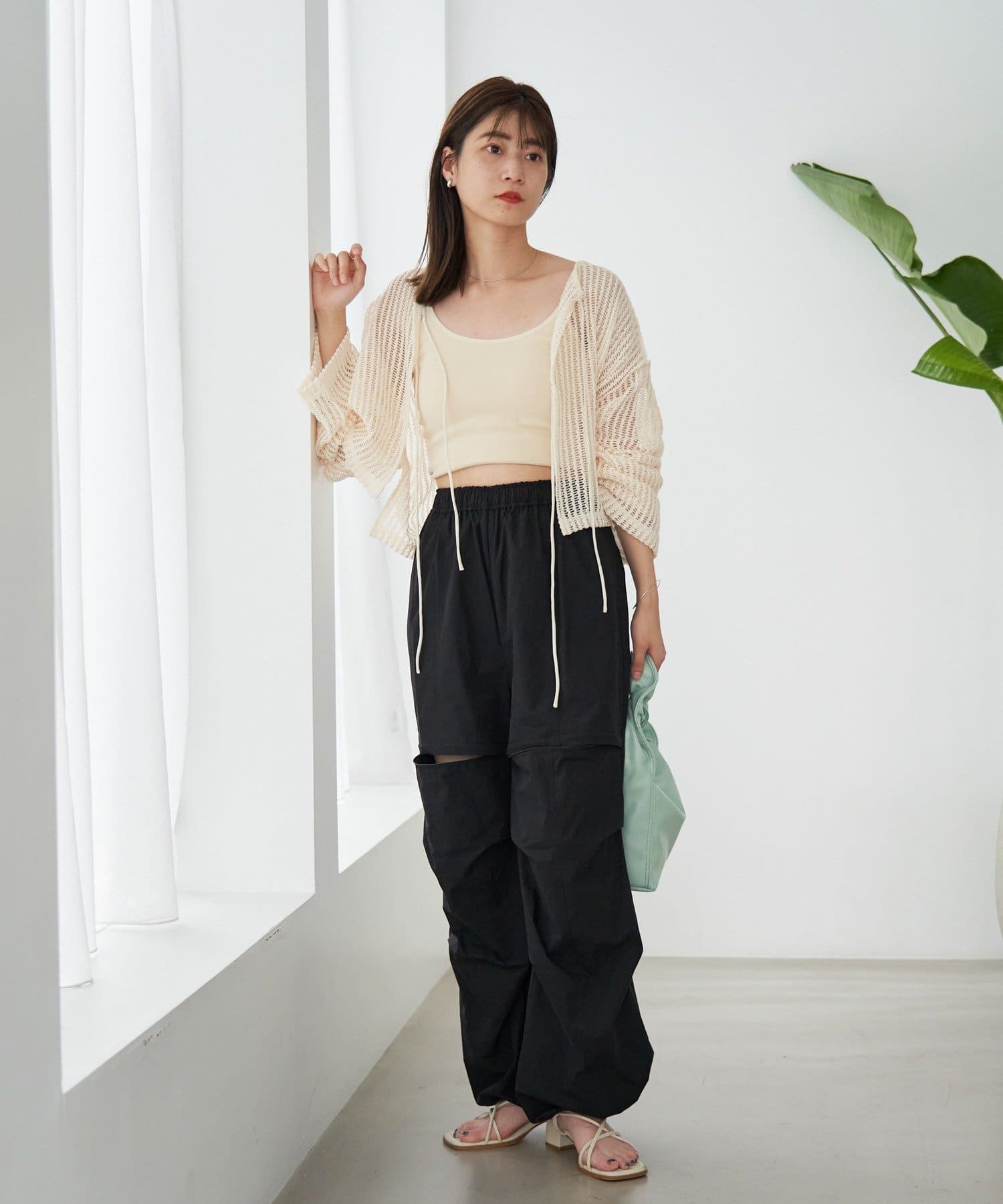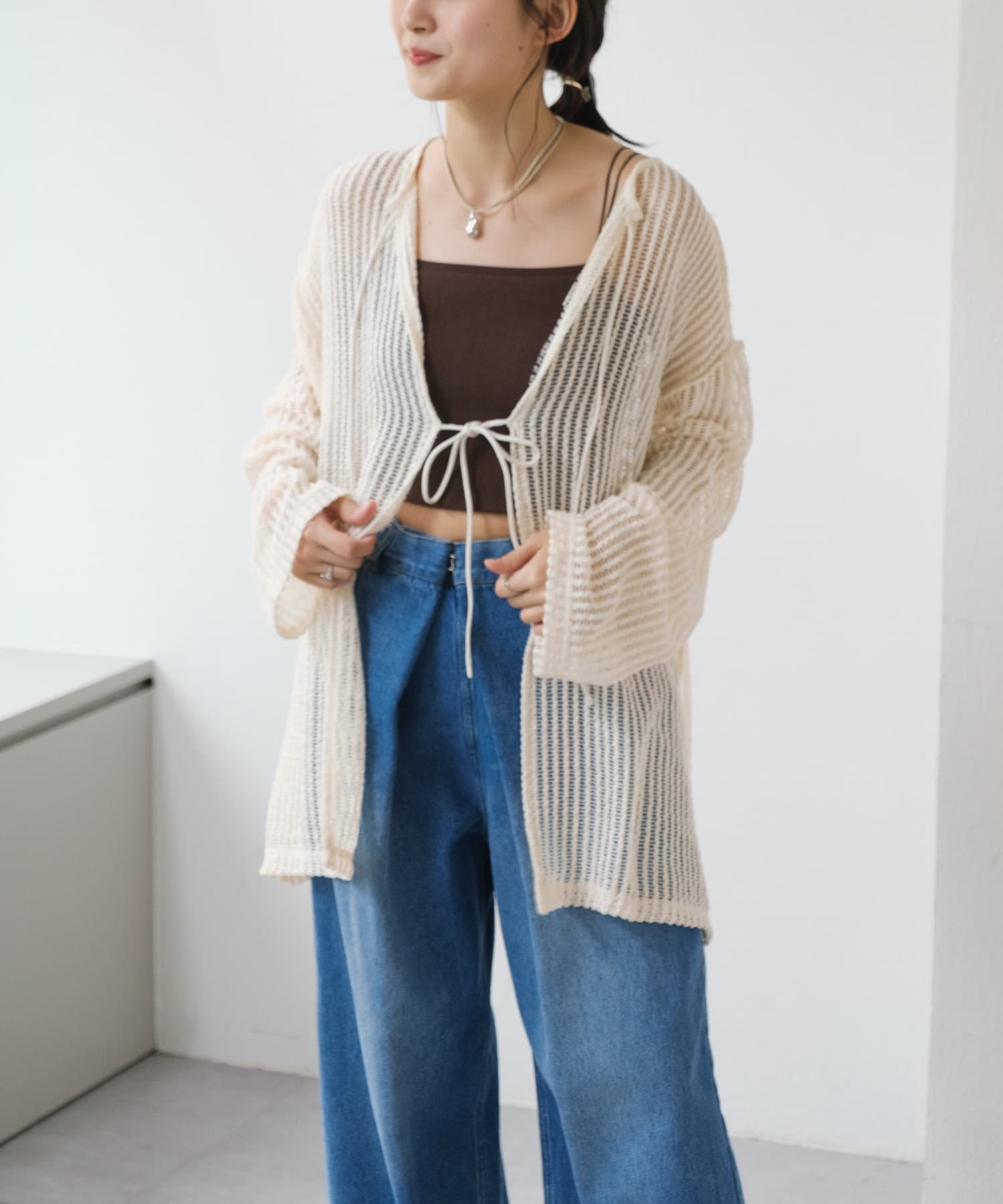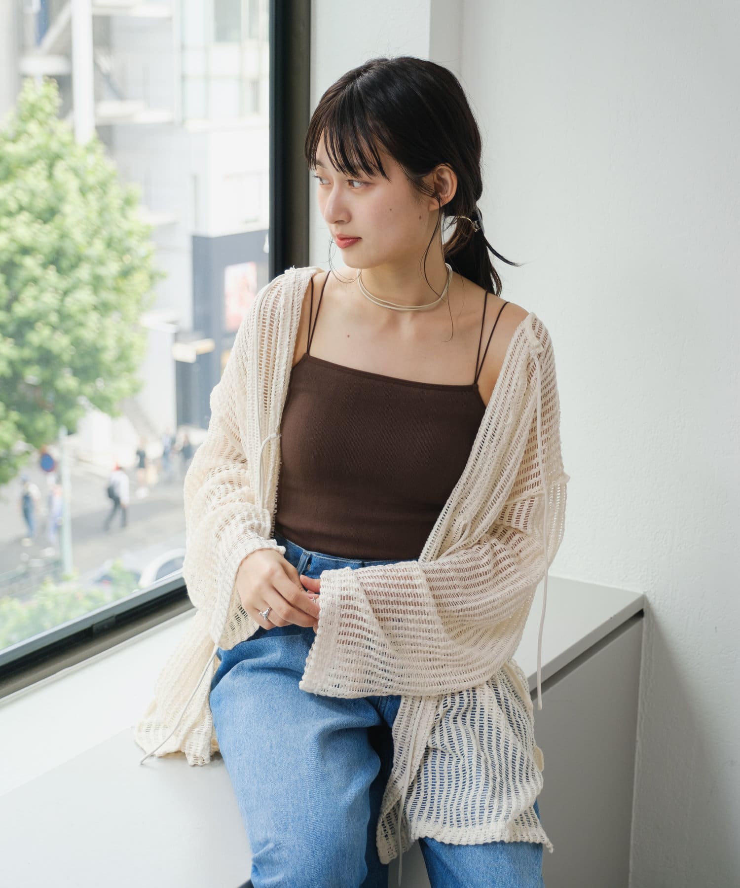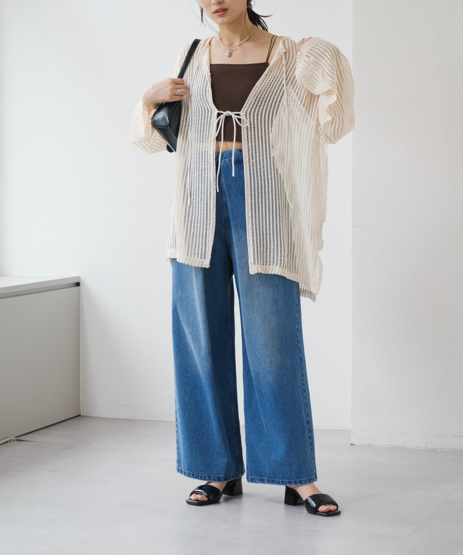 キャミソールやタンクトップと合わせて透け感を楽しんでいただくのがおすすめ。