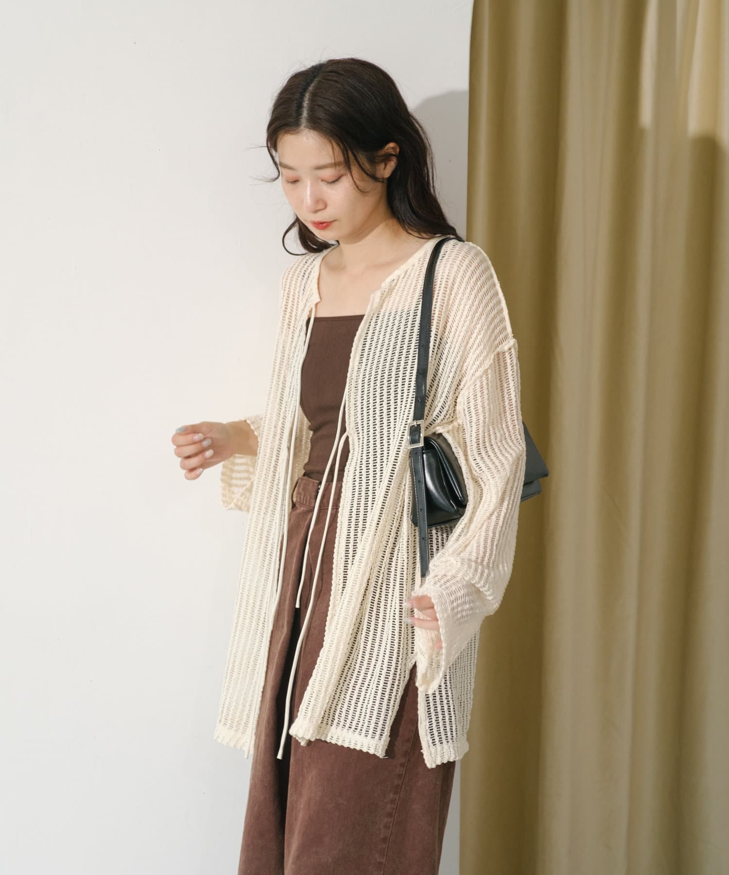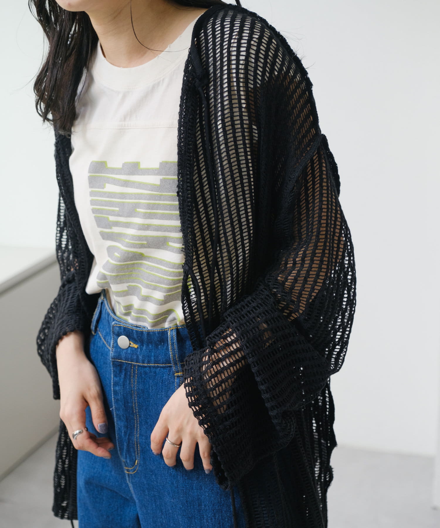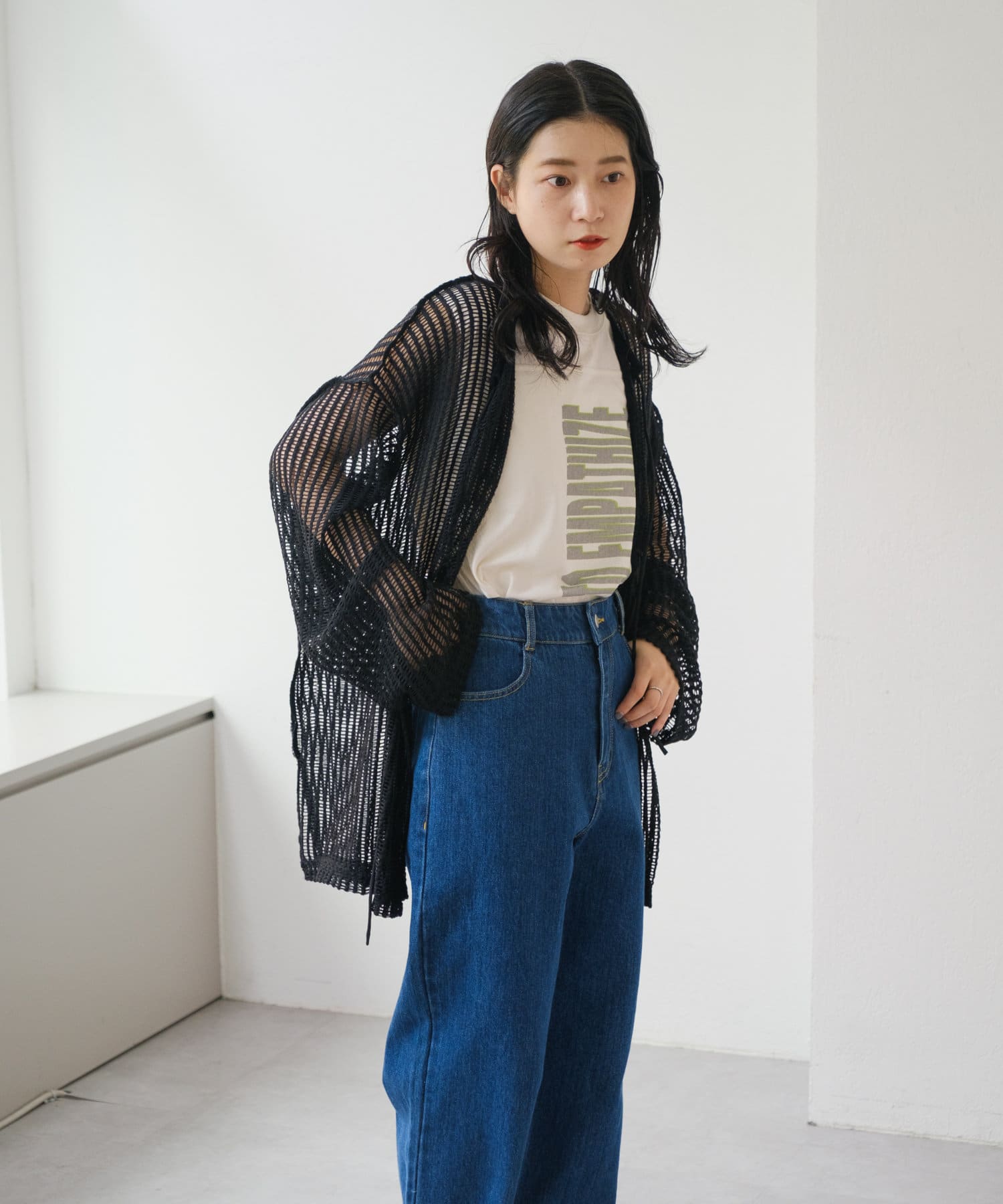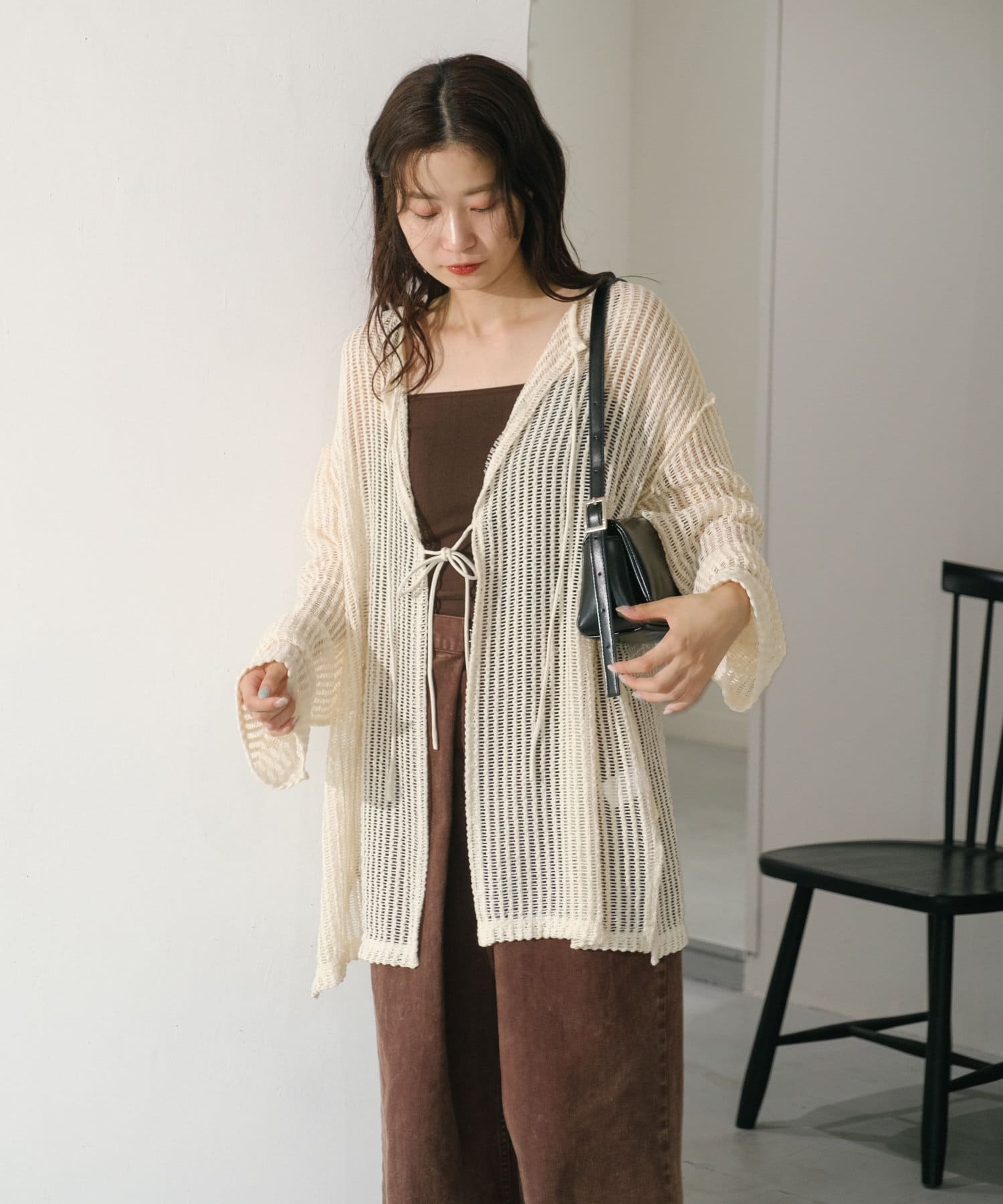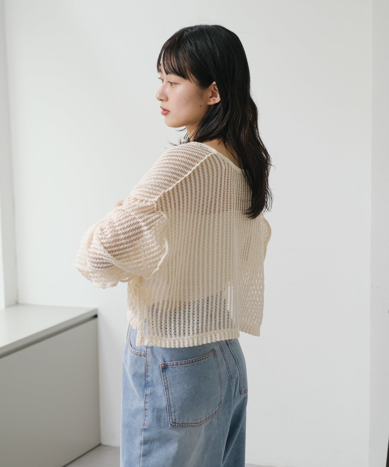 キャミソールやタンクトップと合わせて透け感を楽しんでいただくのがおすすめ。