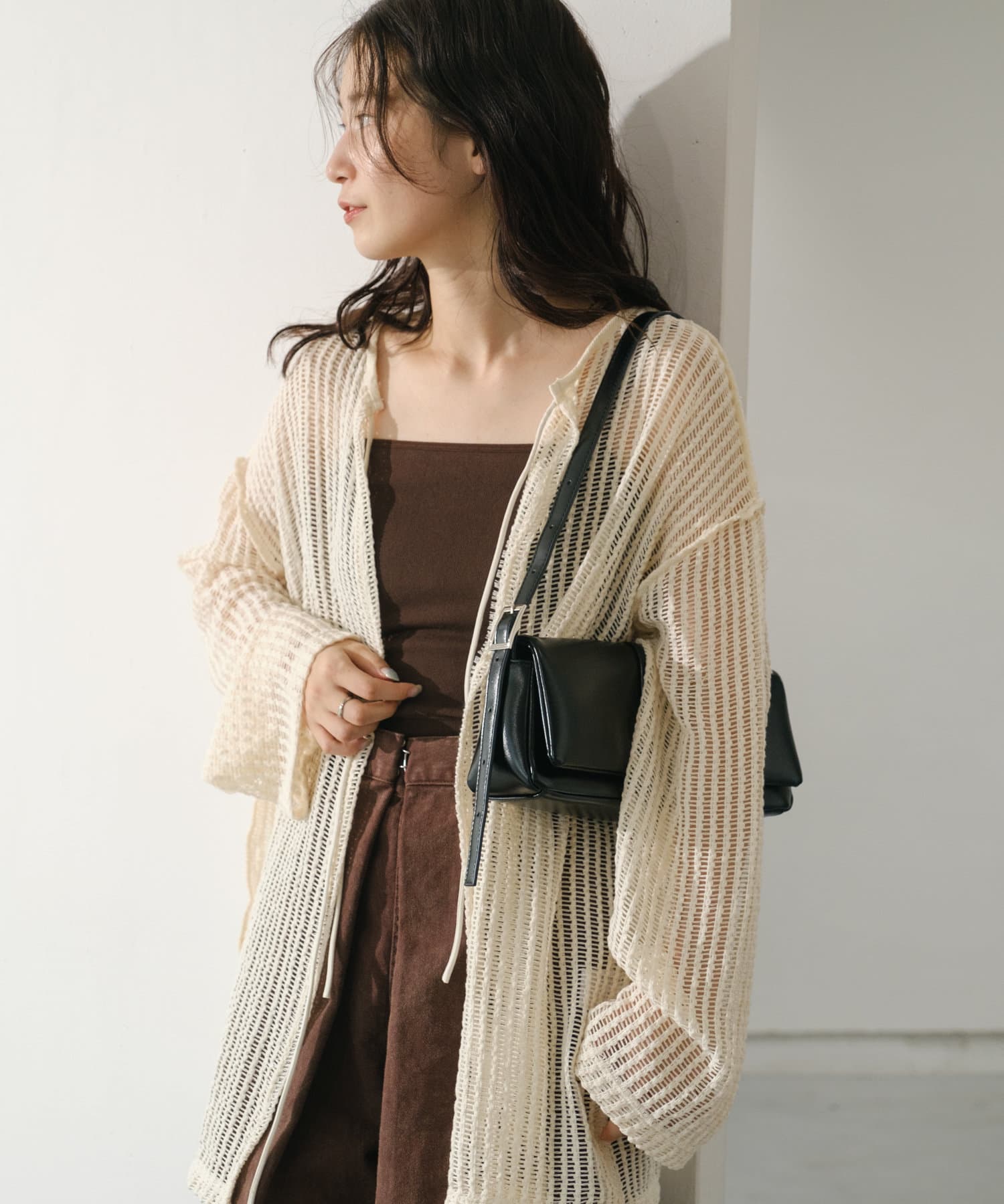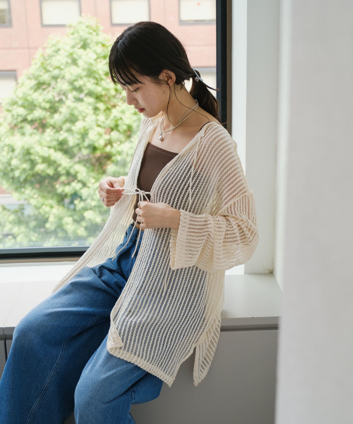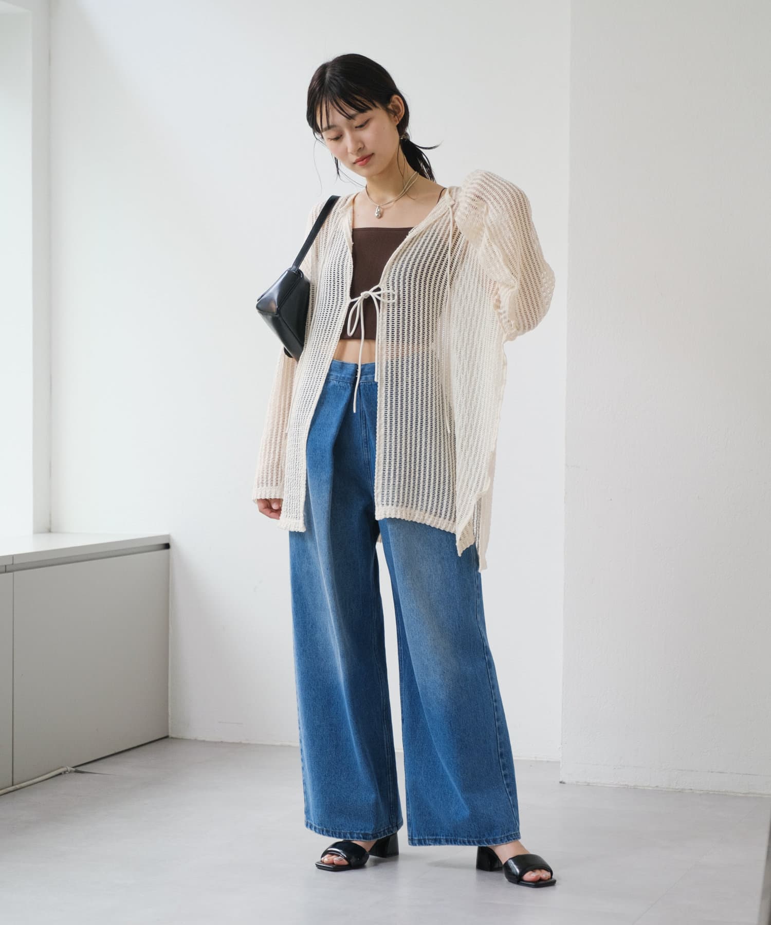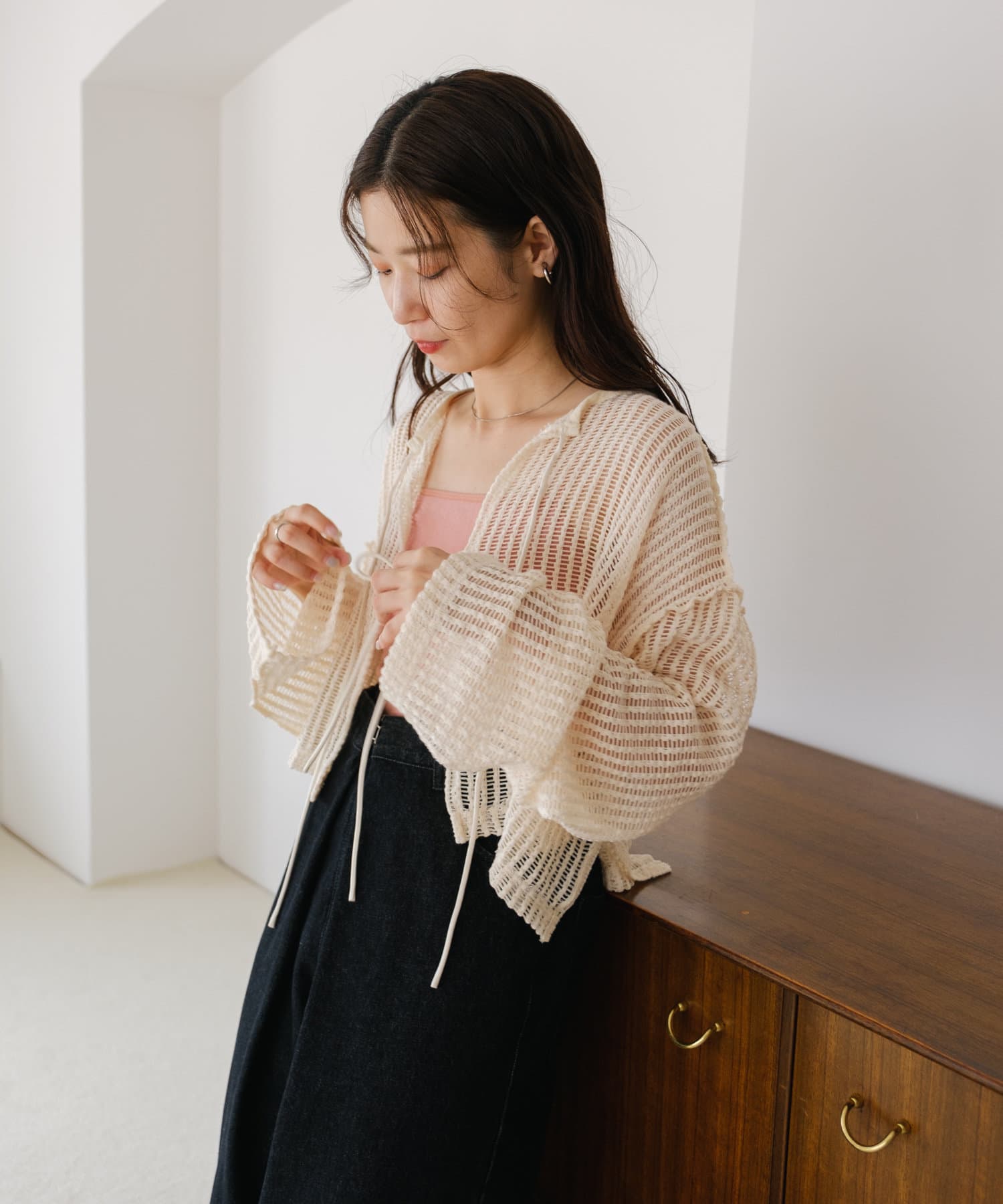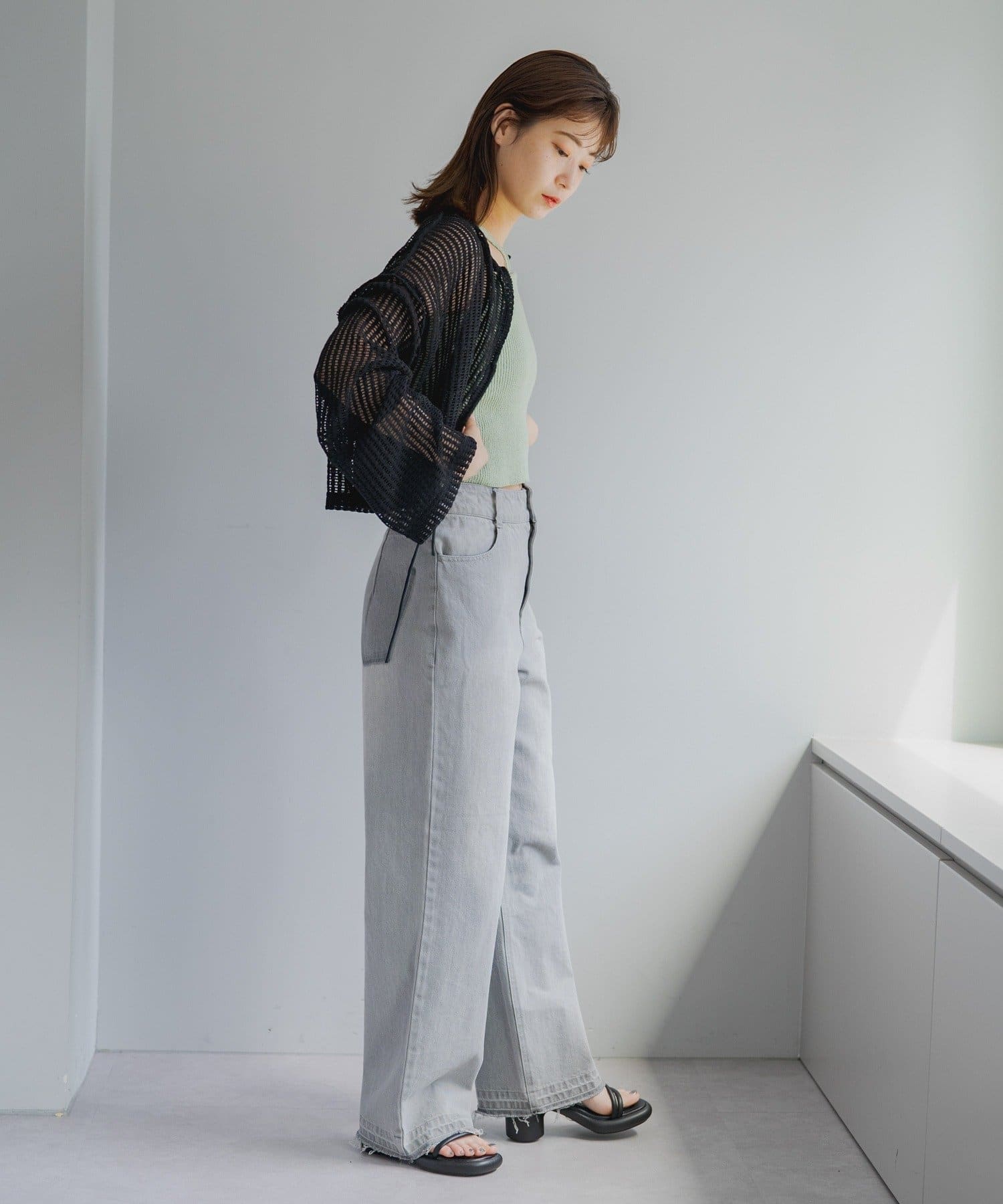 キャミソールやタンクトップと合わせて透け感を楽しんでいただくのがおすすめ。