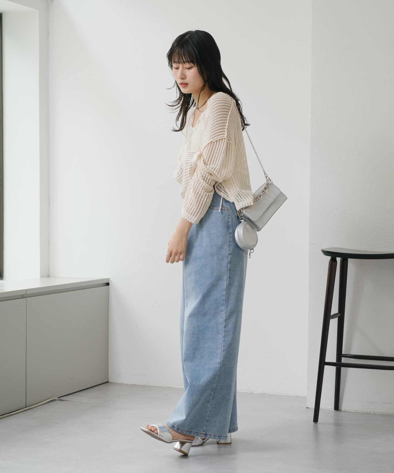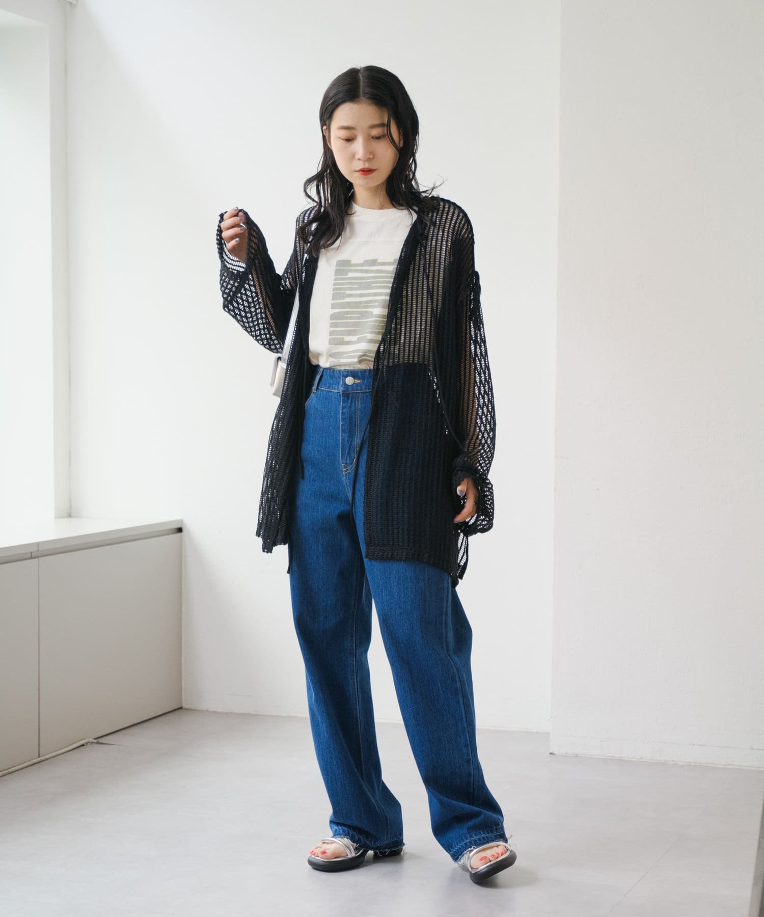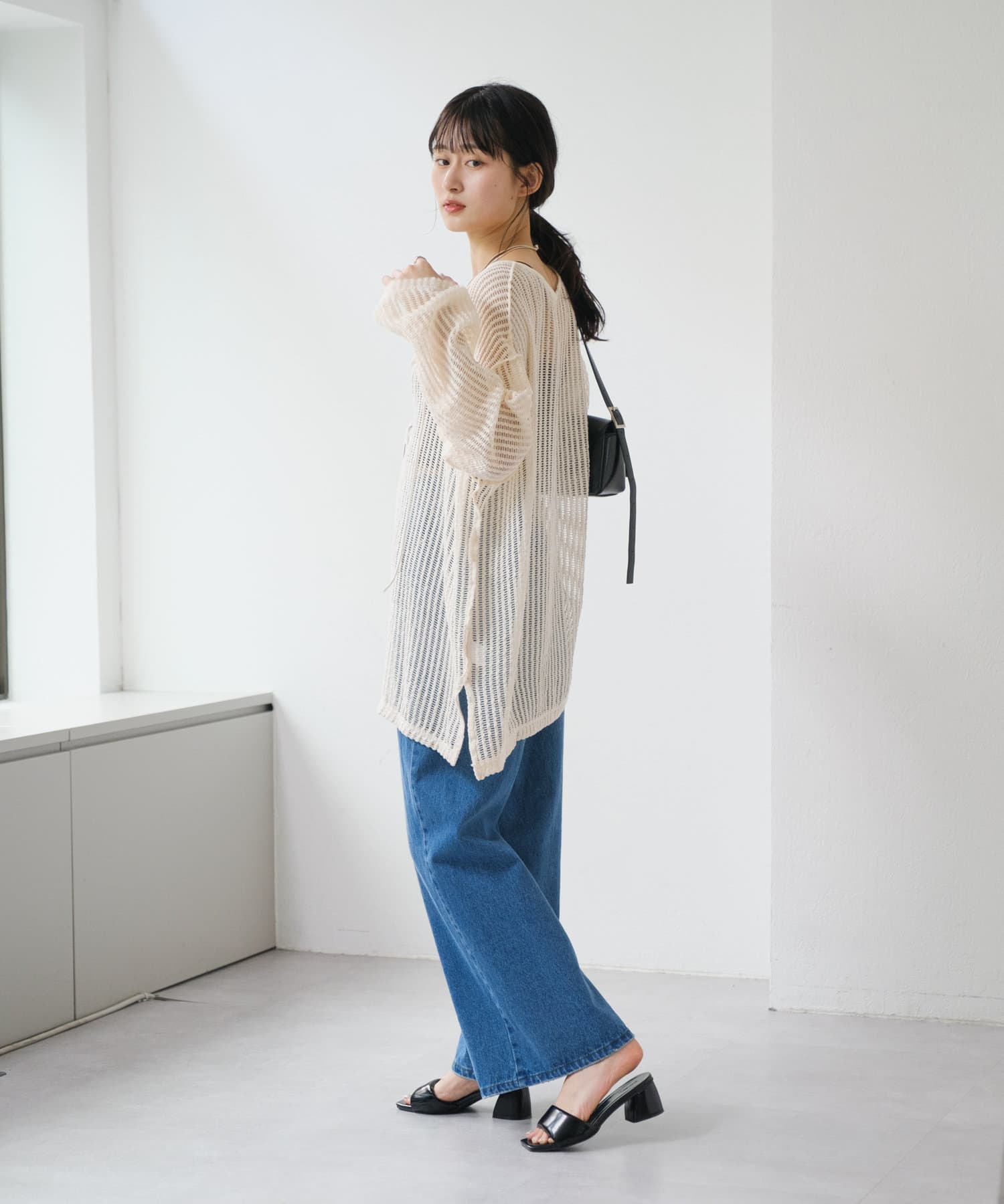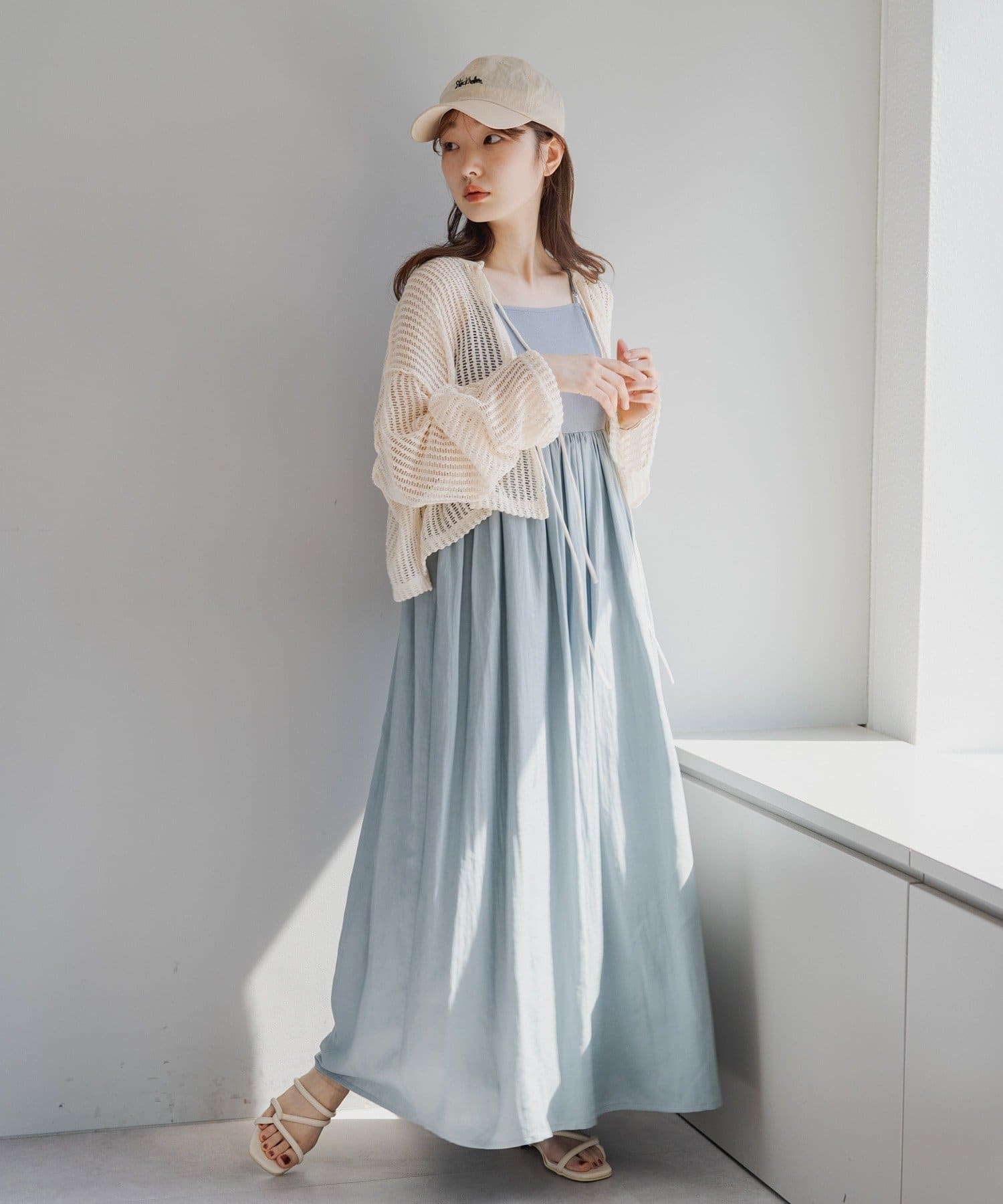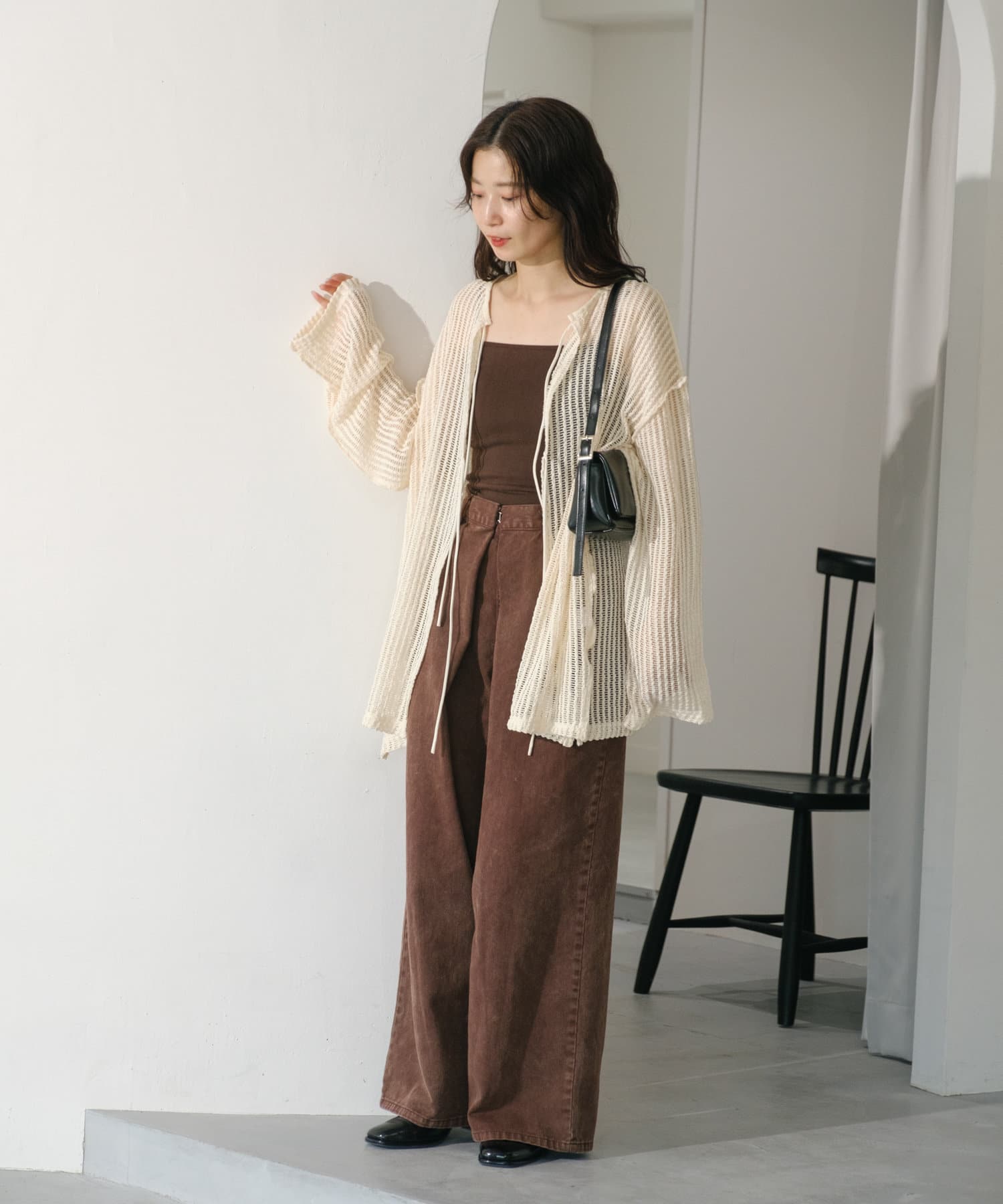 キャミソールやタンクトップと合わせて透け感を楽しんでいただくのがおすすめ。