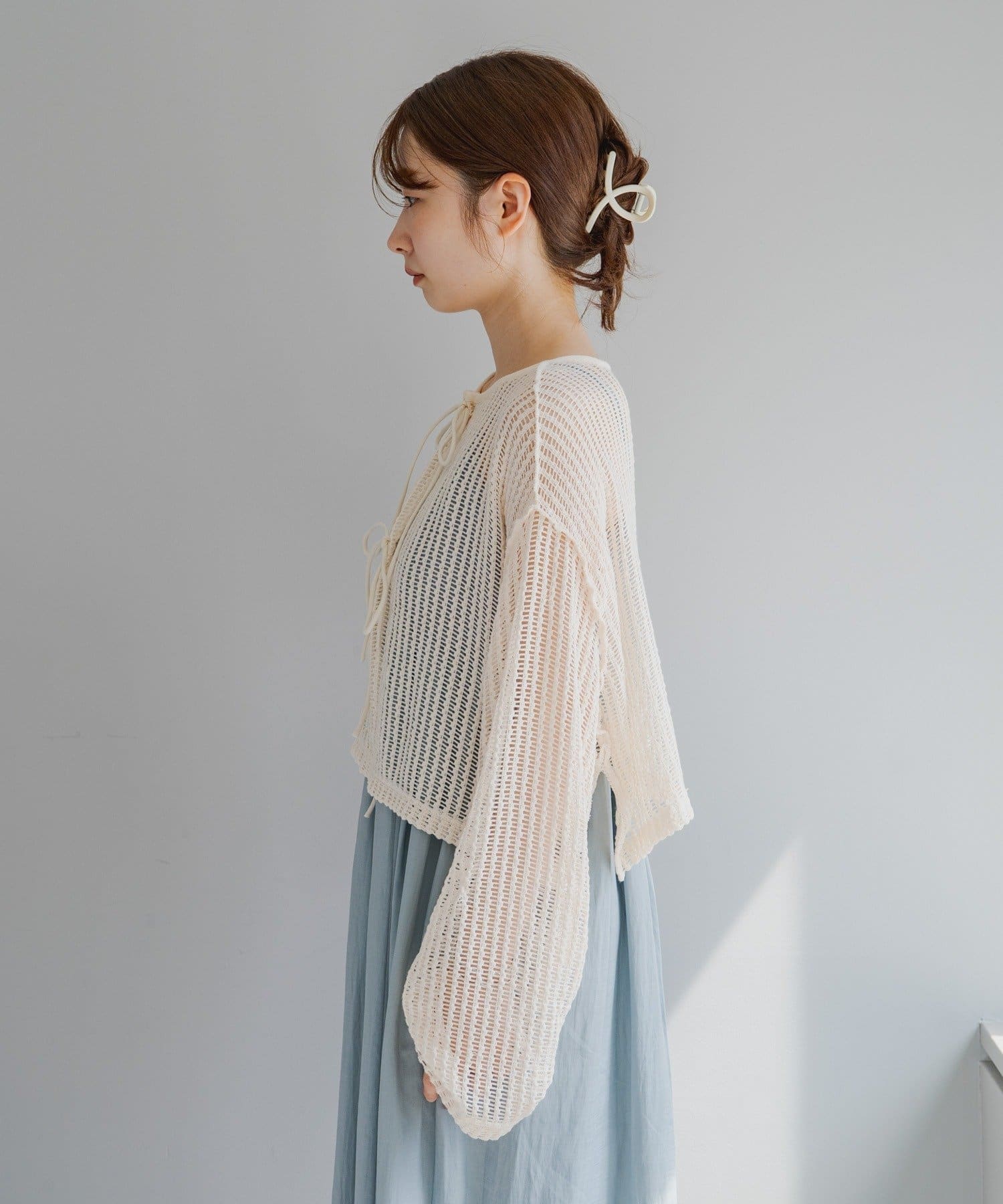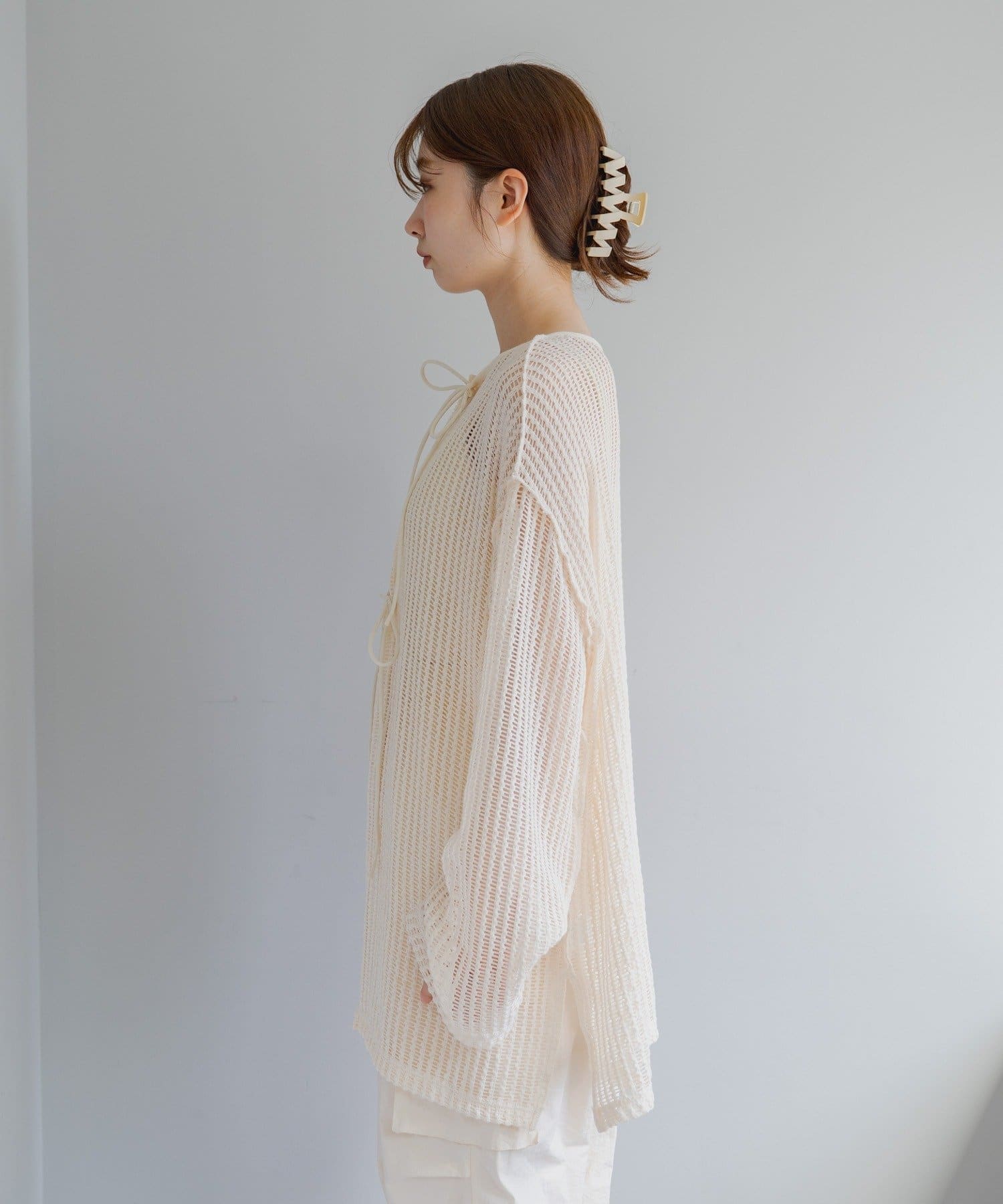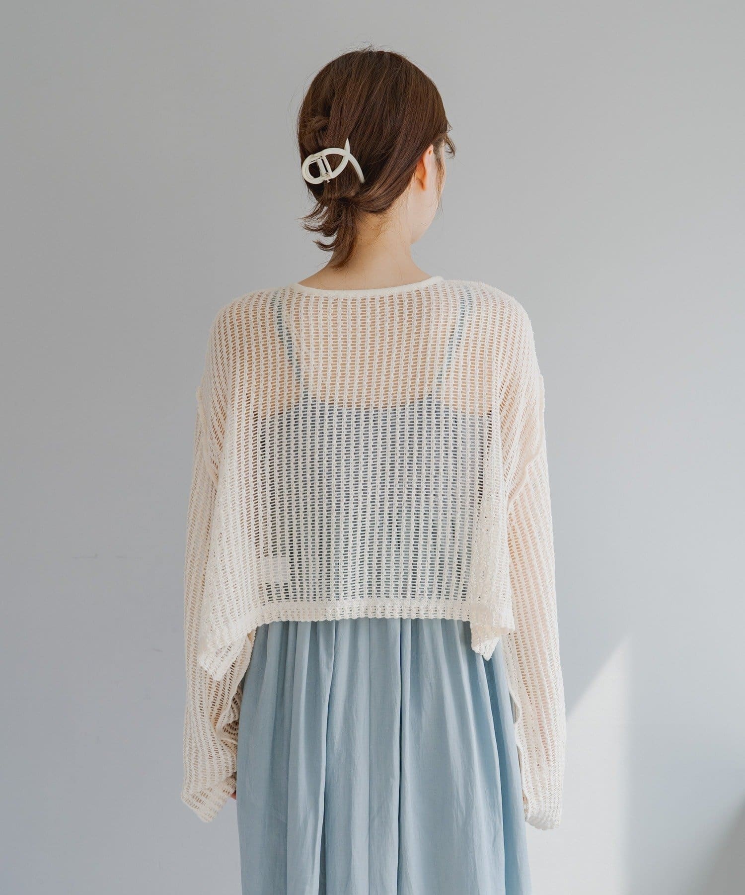 ざっくり編みで透け感があり程よく肌見せでき、これから暑くなる季節に嬉しい生地感です。