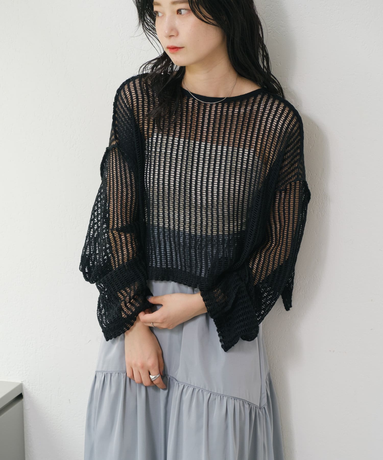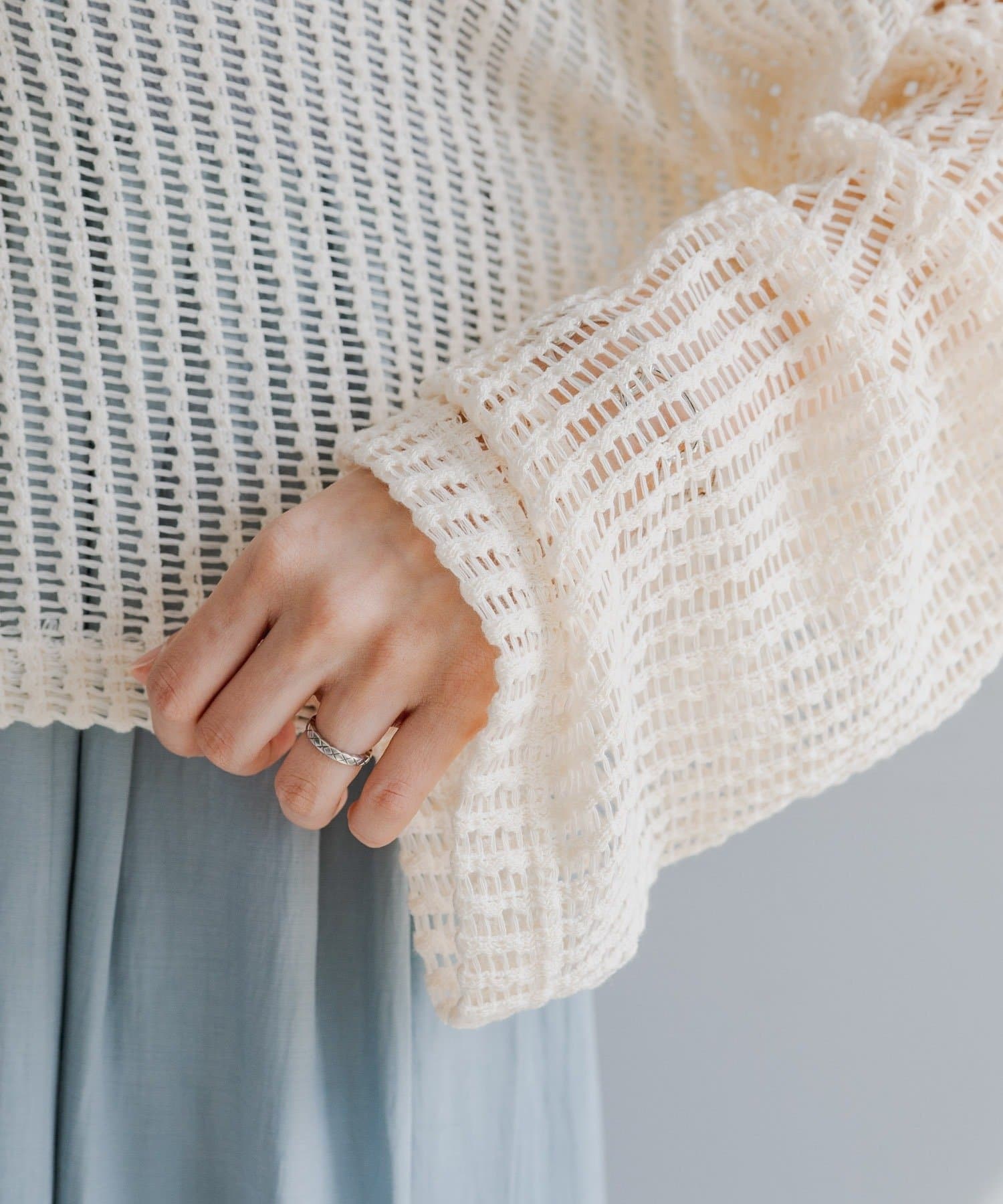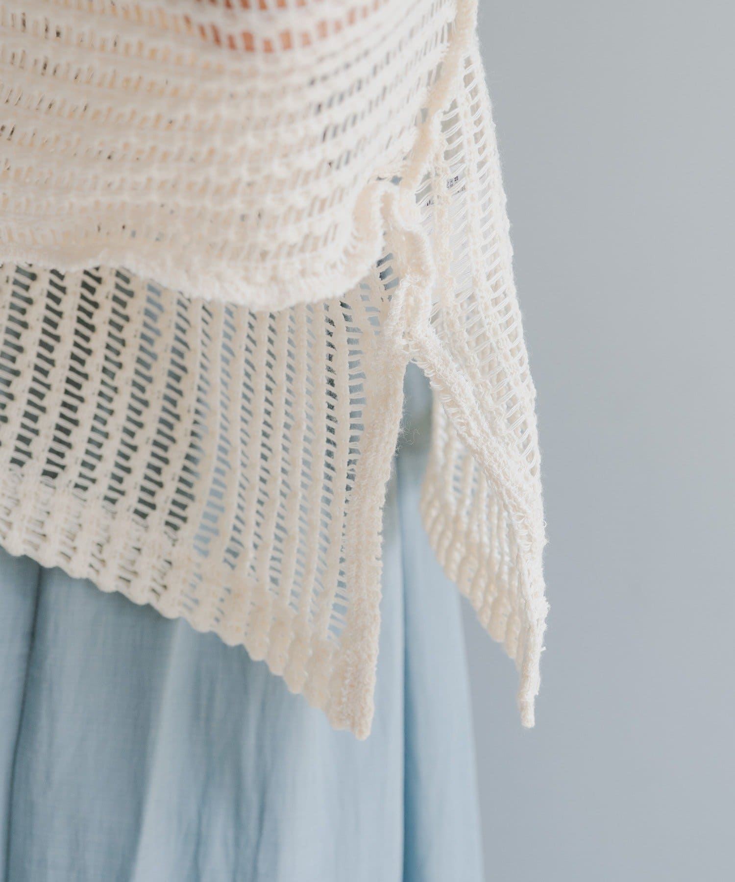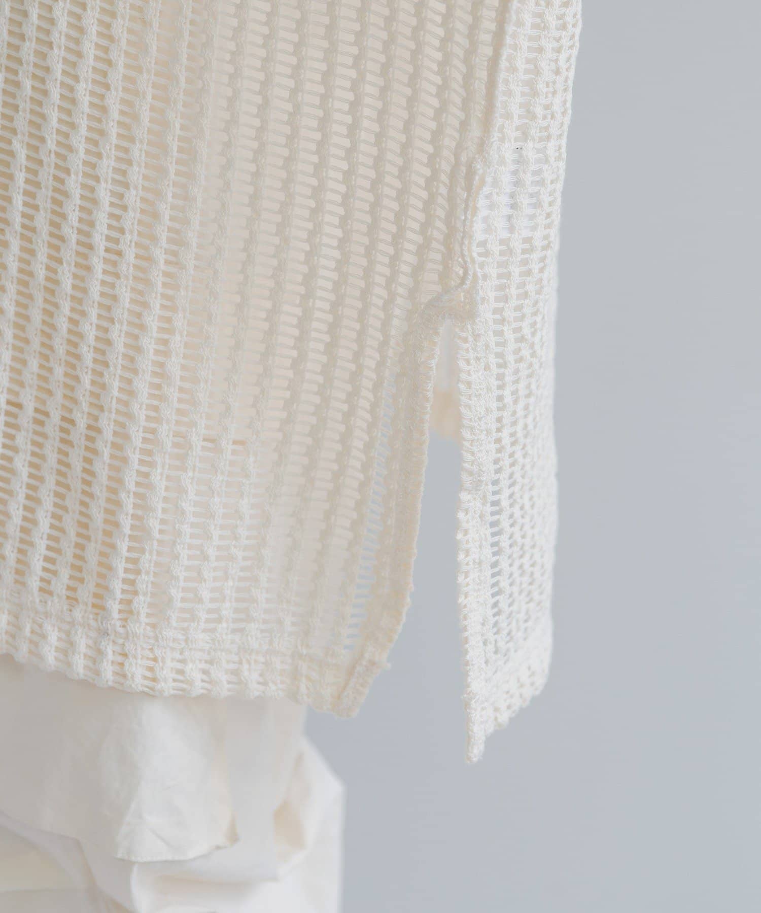 ざっくり編みで透け感があり程よく肌見せでき、これから暑くなる季節に嬉しい生地感です。