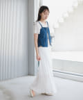 セットアップのレースパンツやデニムパンツとのレイヤードスタイルもおススメ。