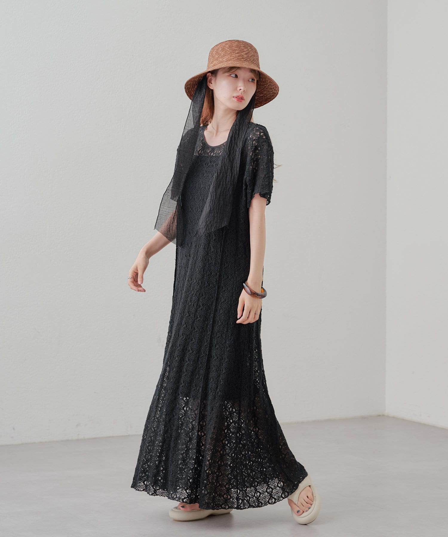 *【2サイズ展開/セットアップ/前後2WAY】半袖レースワンピース
