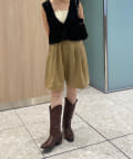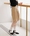 ハイウエストなのでトップスをインしてすっきりとした印象に。
