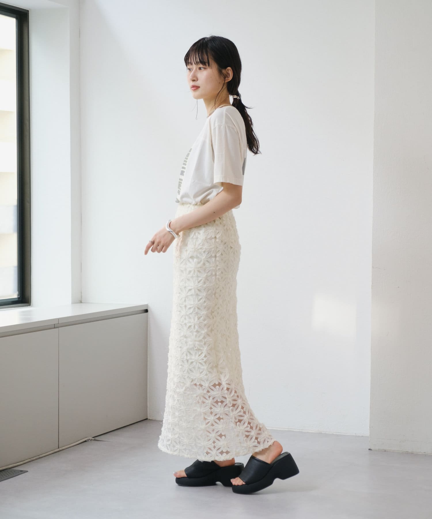 カジュアルなアイテムなのであえてスカートやキャミワンピースなど女性らしいアイテムと合わせていただくのもオススメ。
