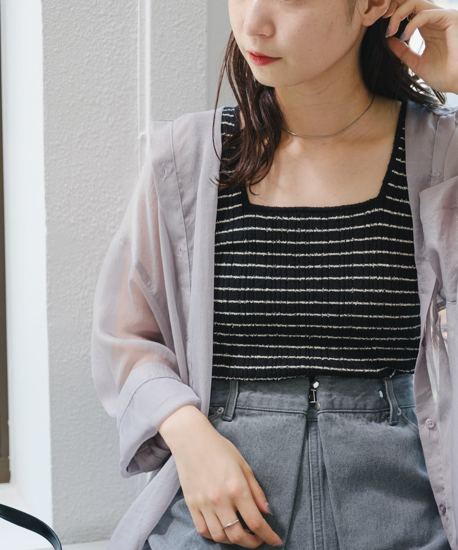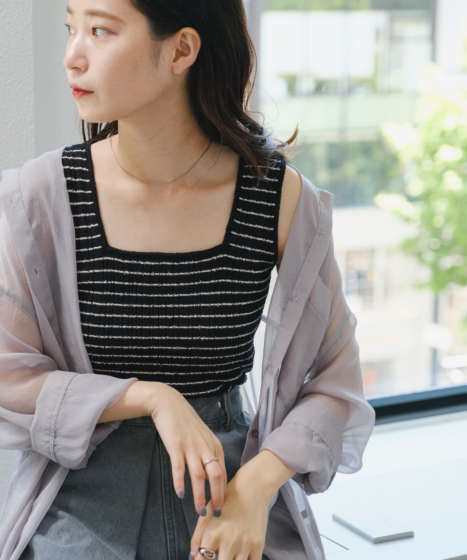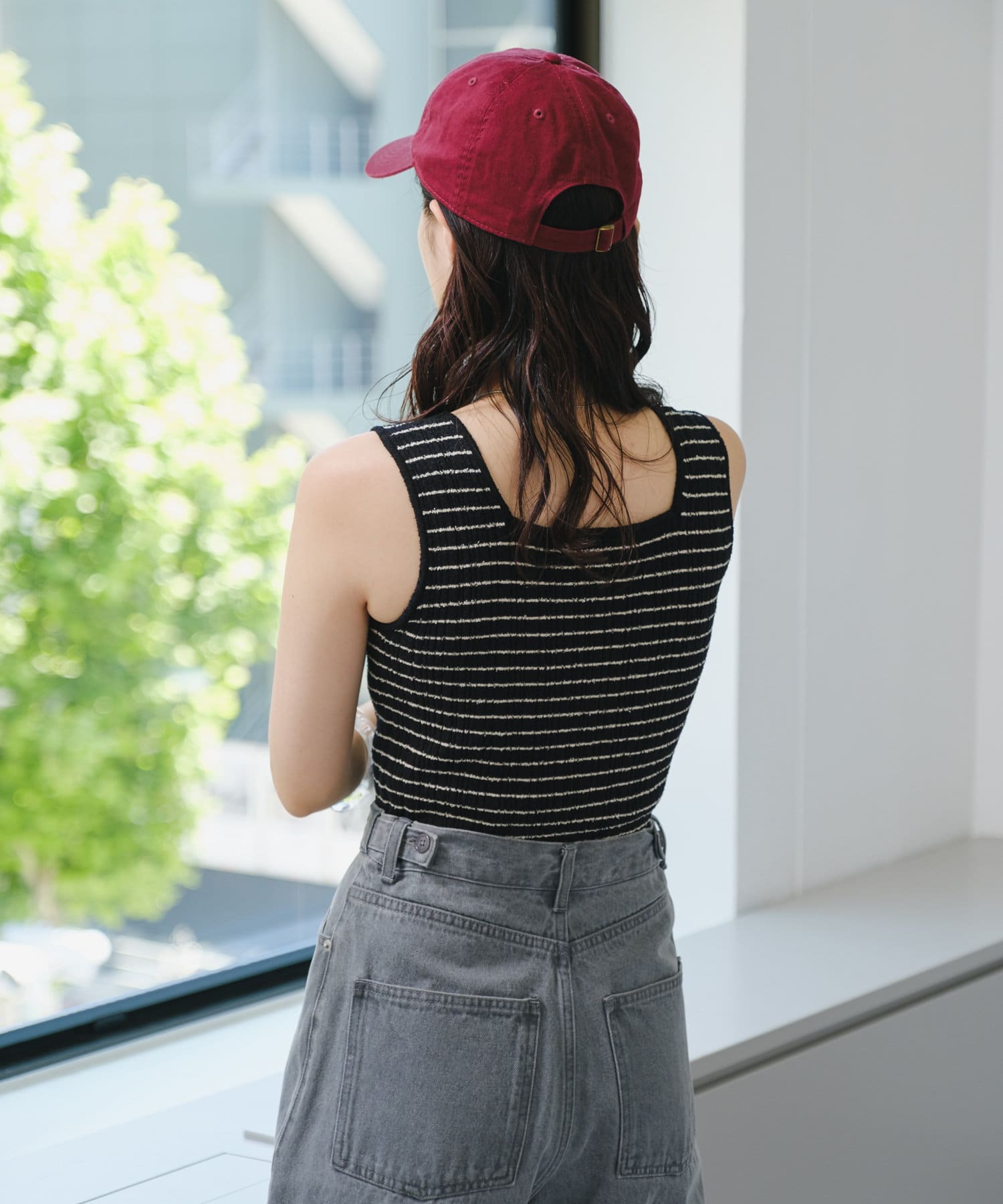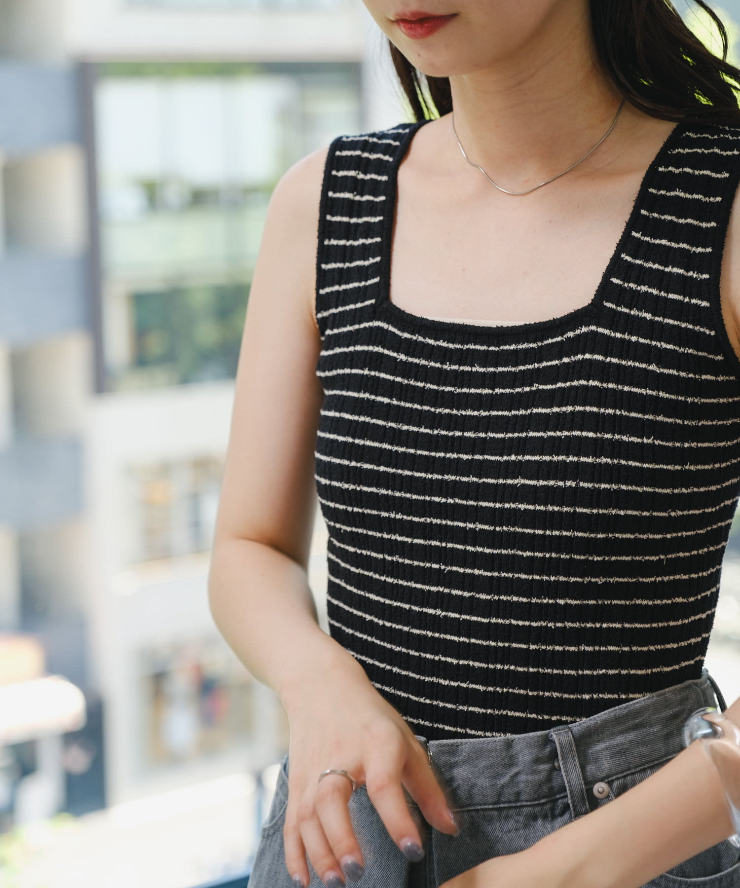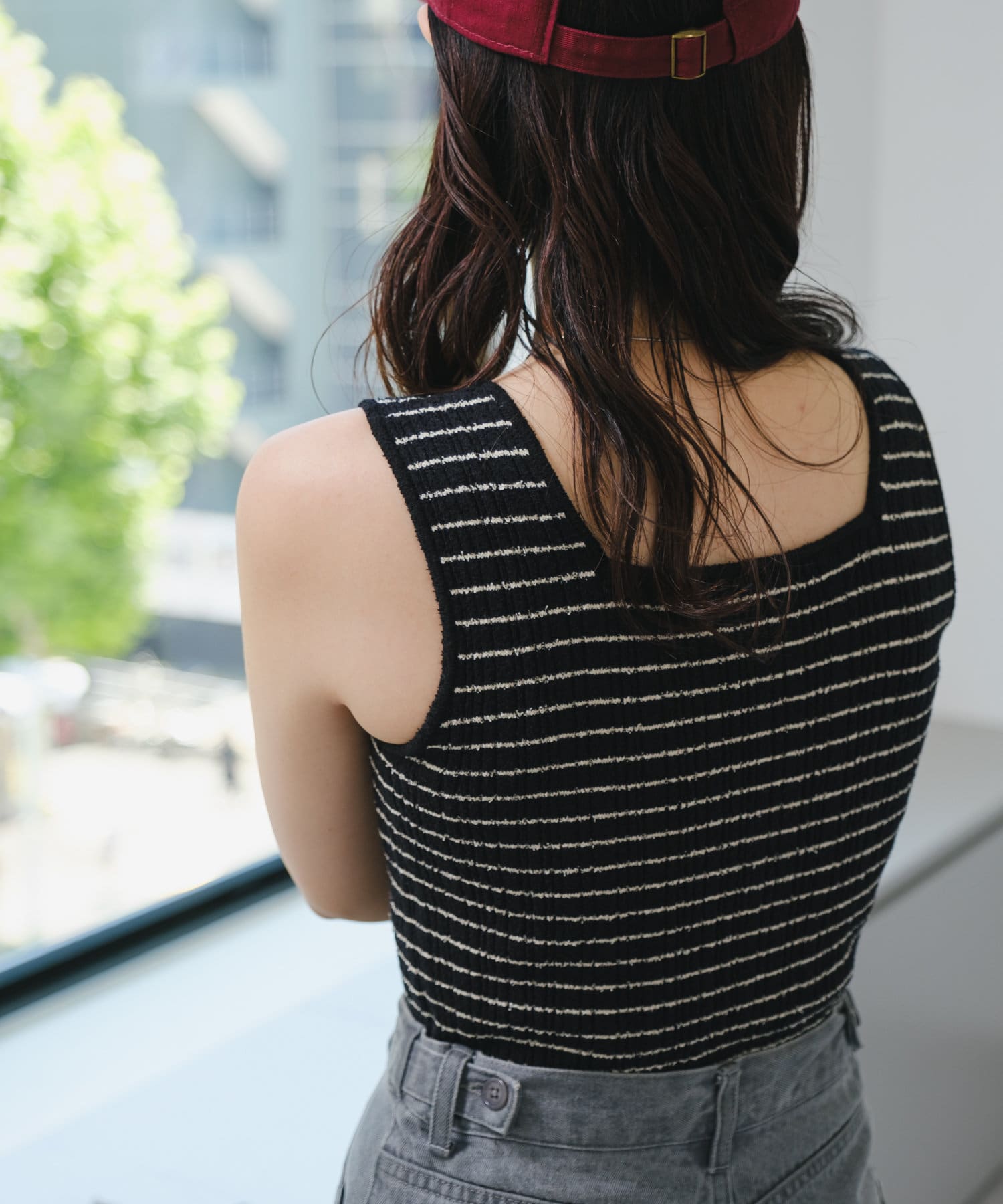 スタイリングのポイントになるボーダーニットタンク