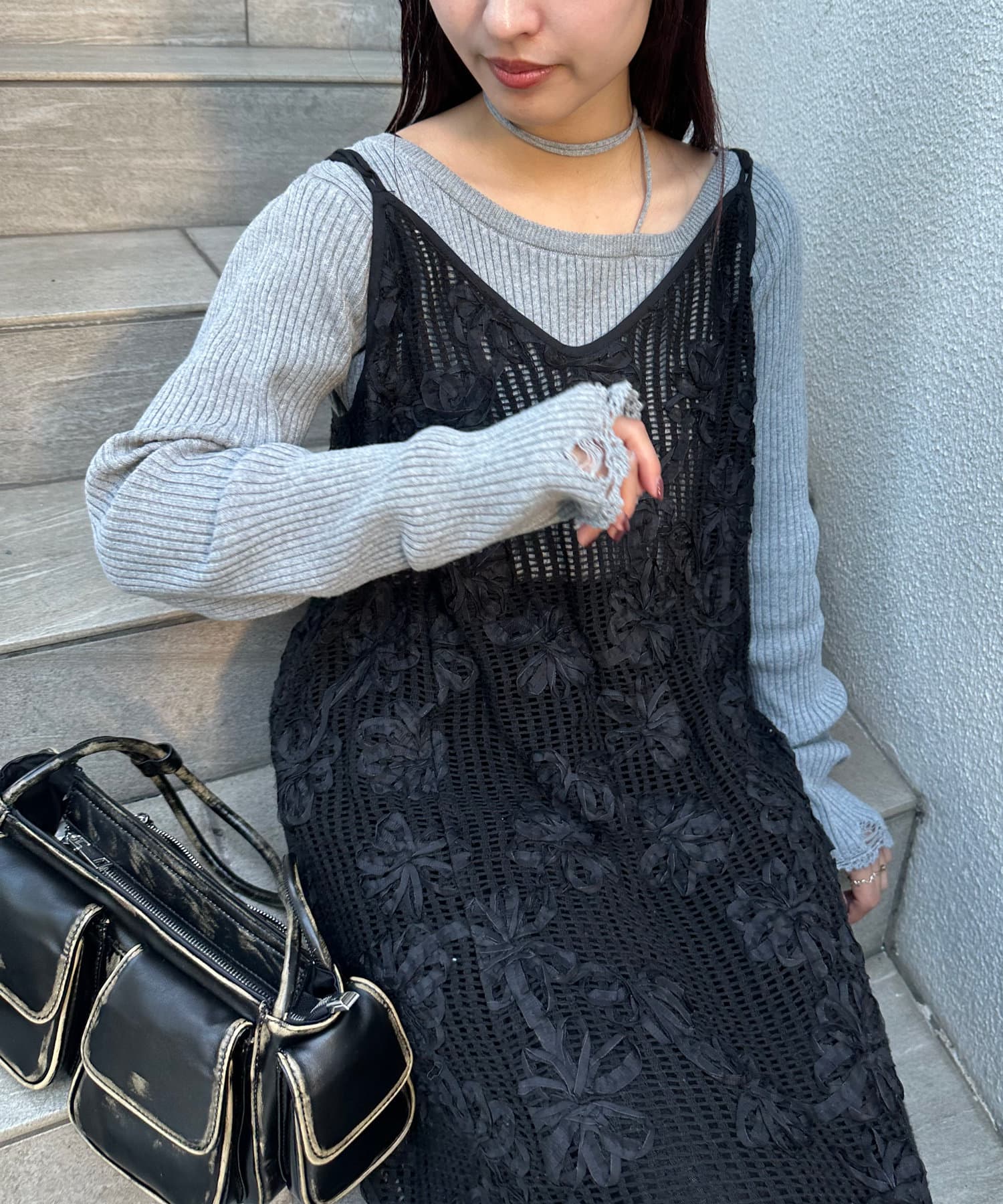 ●デリケートなレース素材を使用しております。表面の粗い物に擦ったりバックやベルト、先の鋭い物に引っ掛けますとささくれや糸が浮き易く、切れる事もあります。お取り扱いには十分にご注意ください。