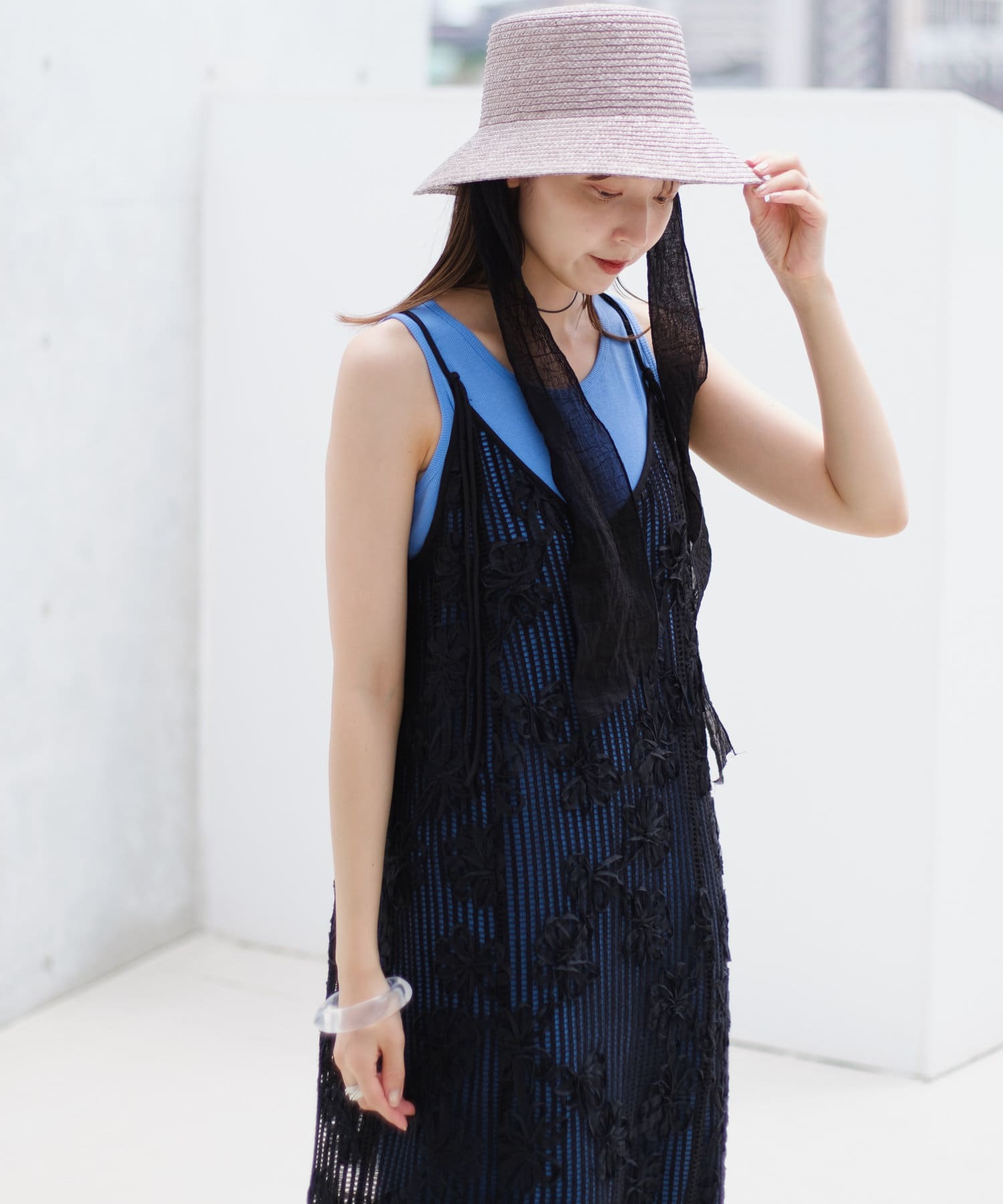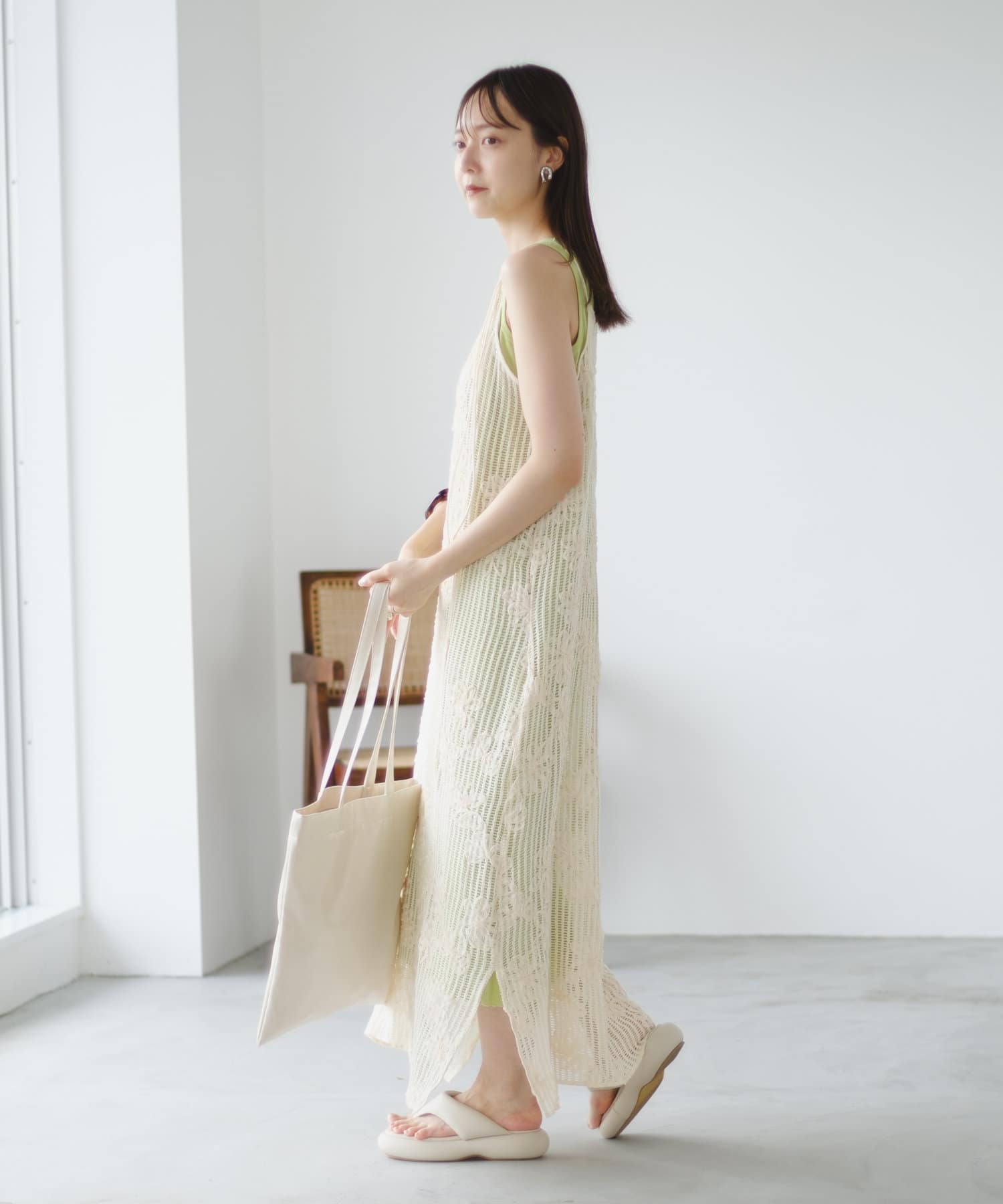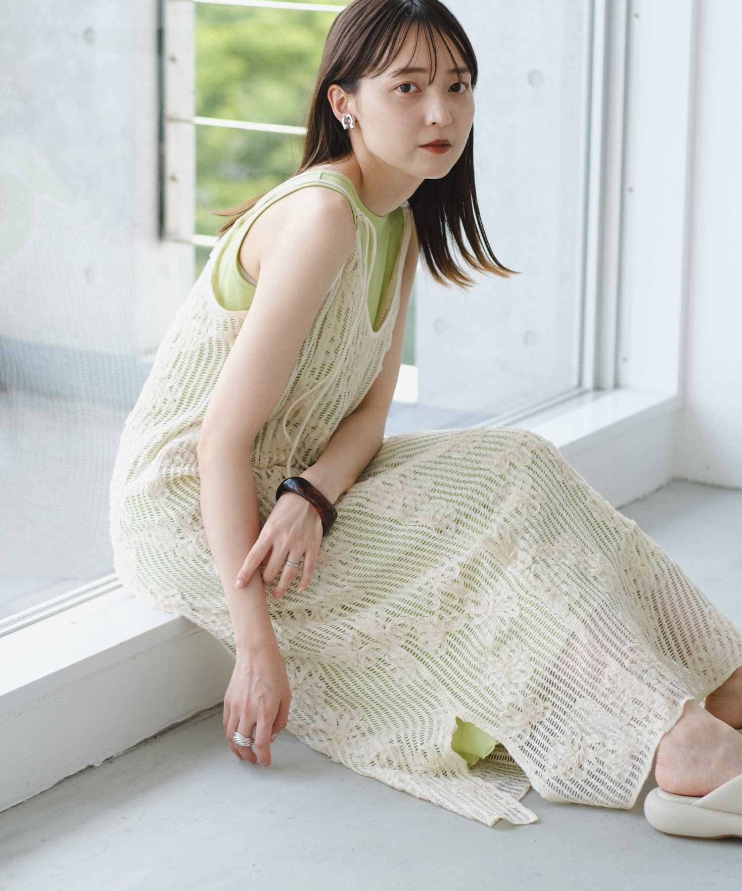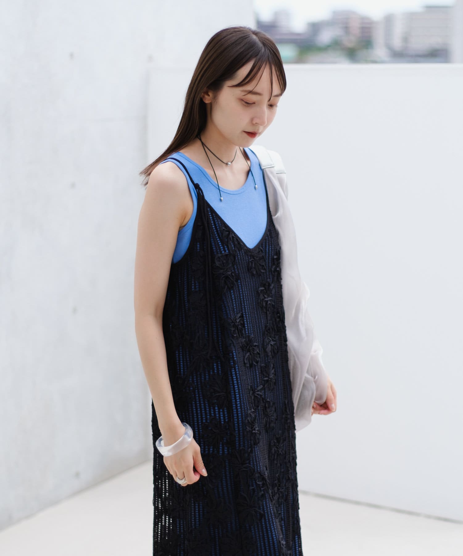 セットのタンクトップと合わせるだけでスタイリングが完成。