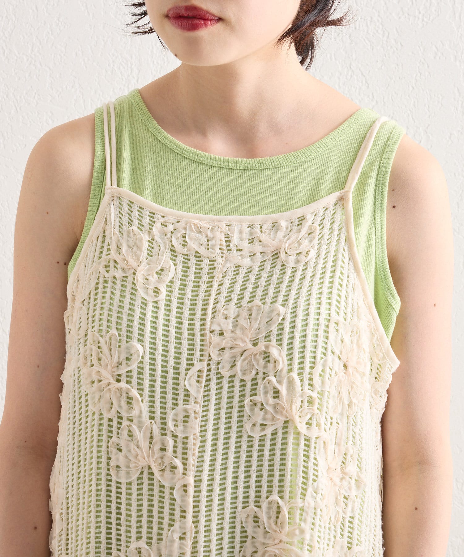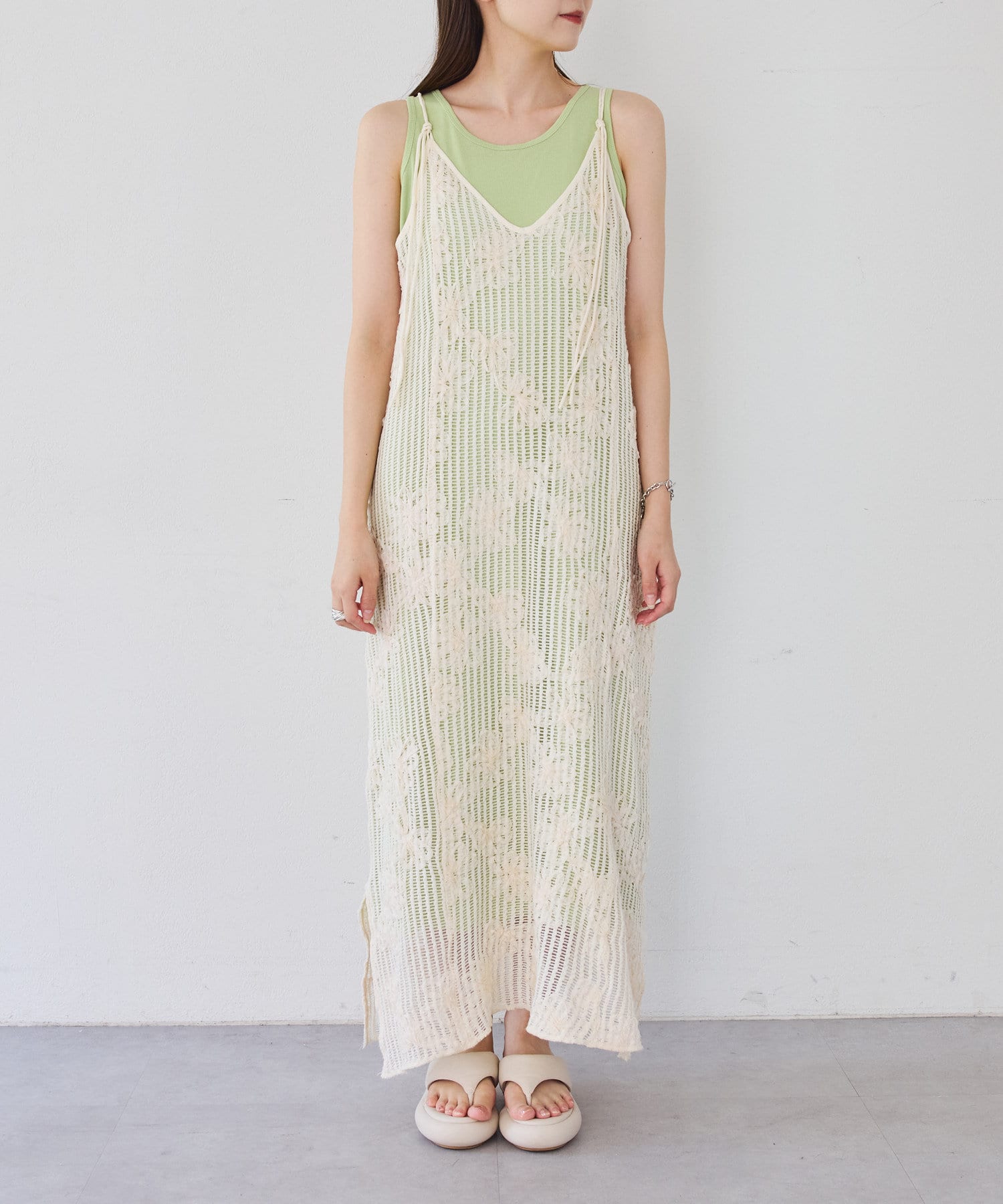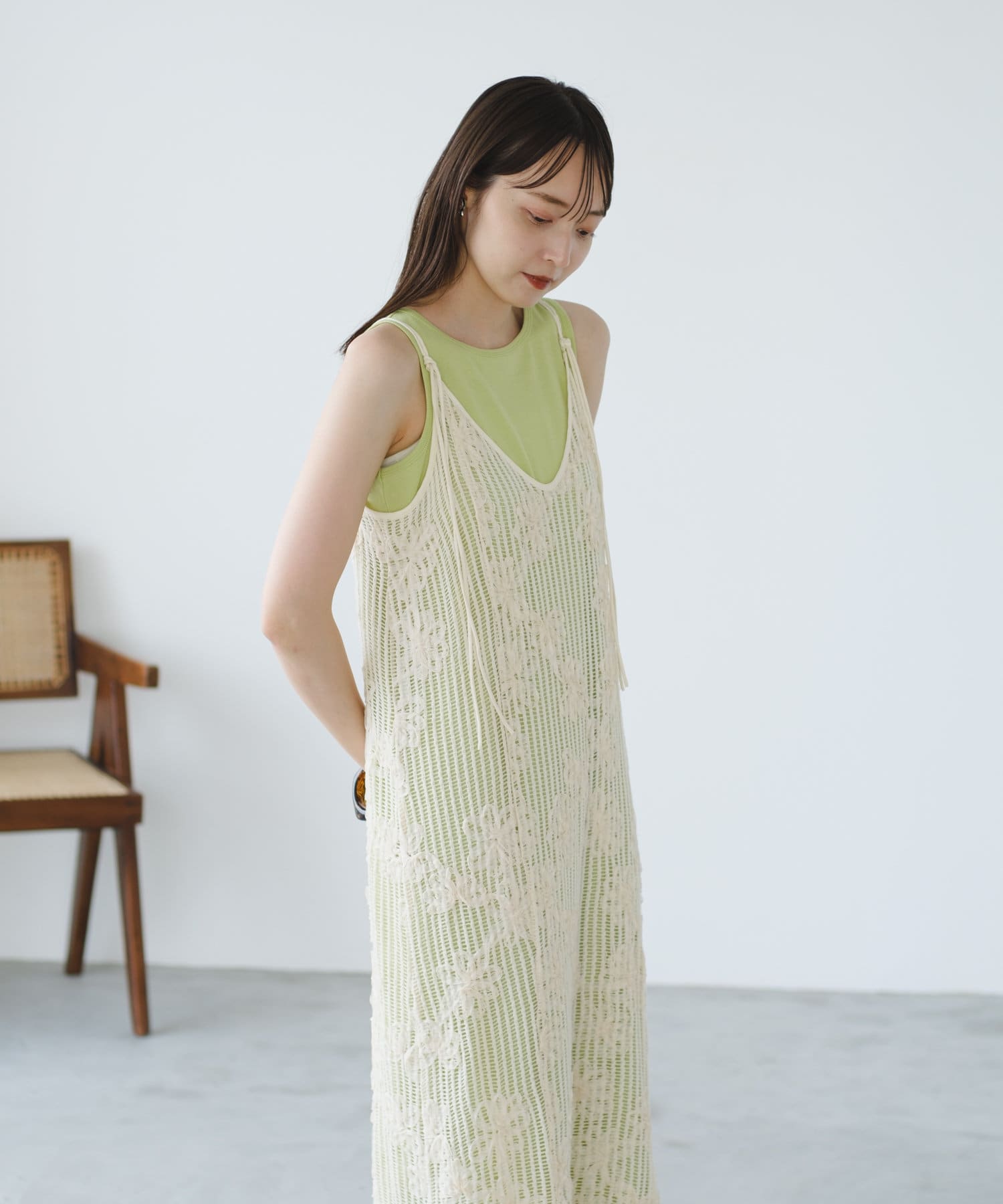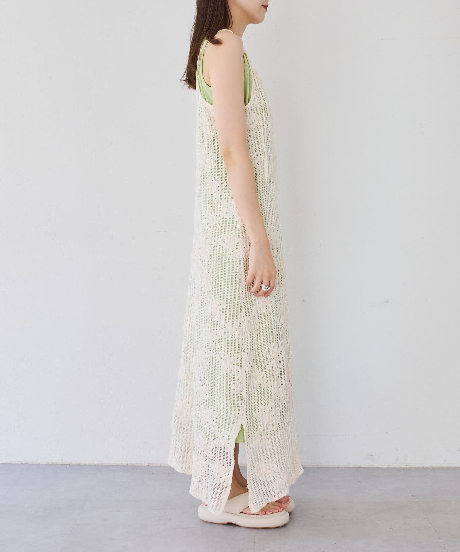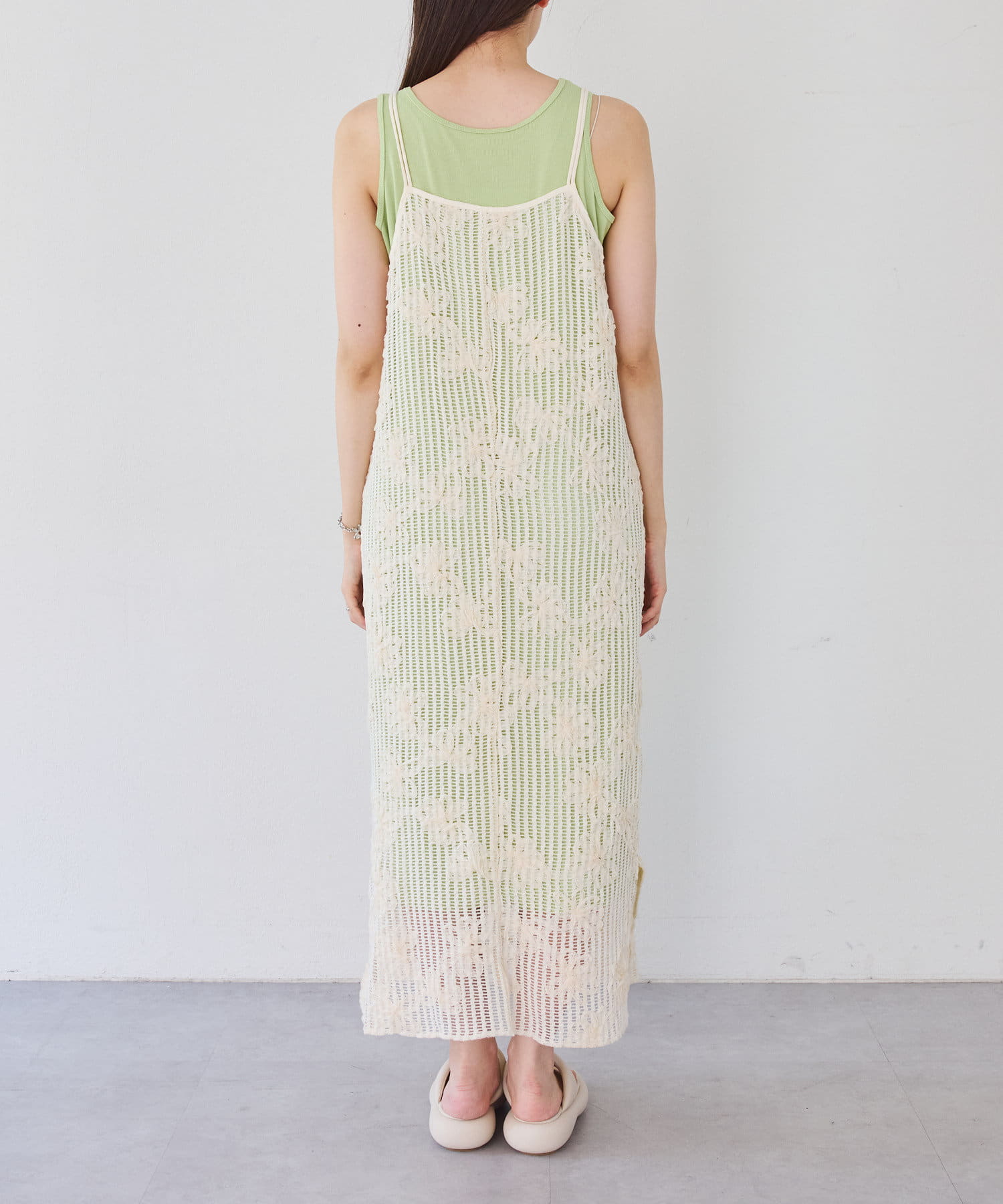 【低身長サイズ追加】フラワーレースキャミワンピース×タンクワンピースSET