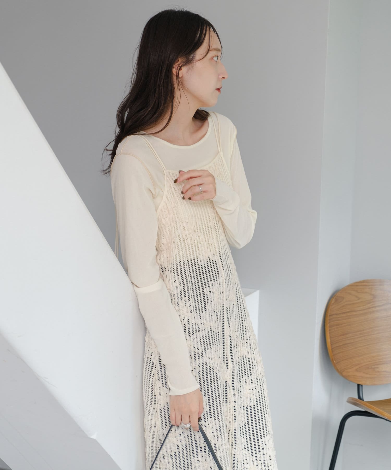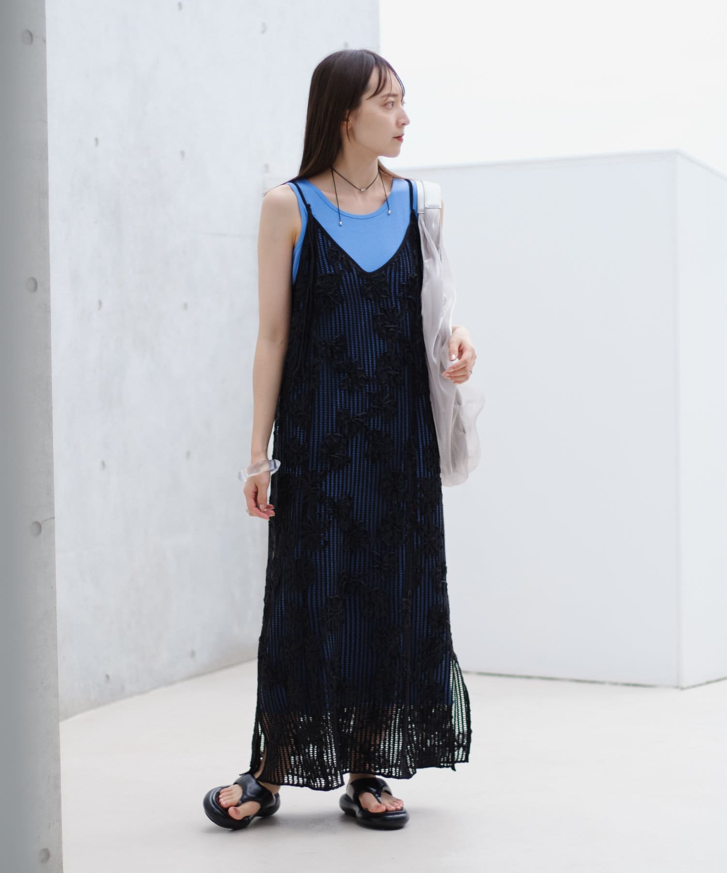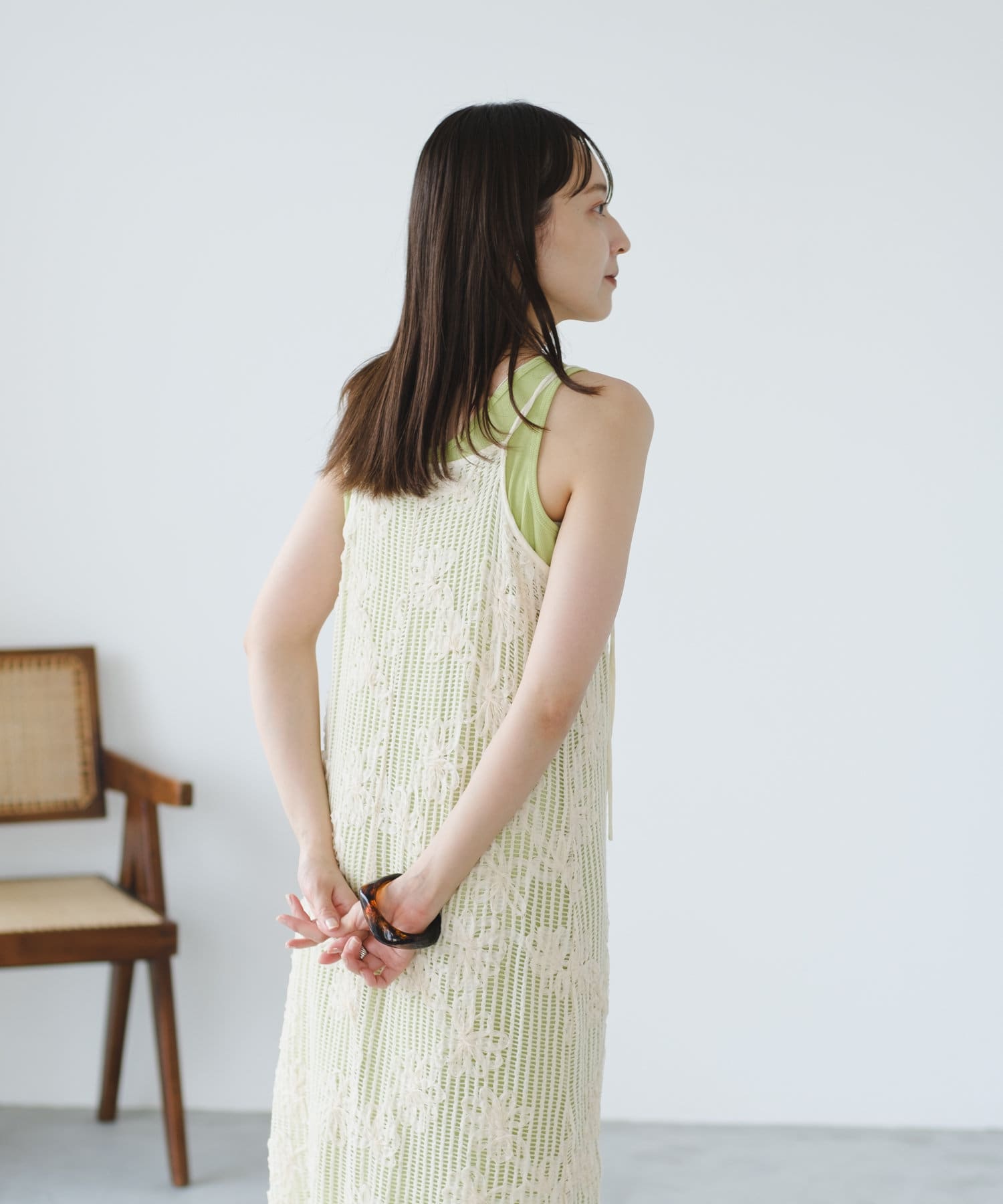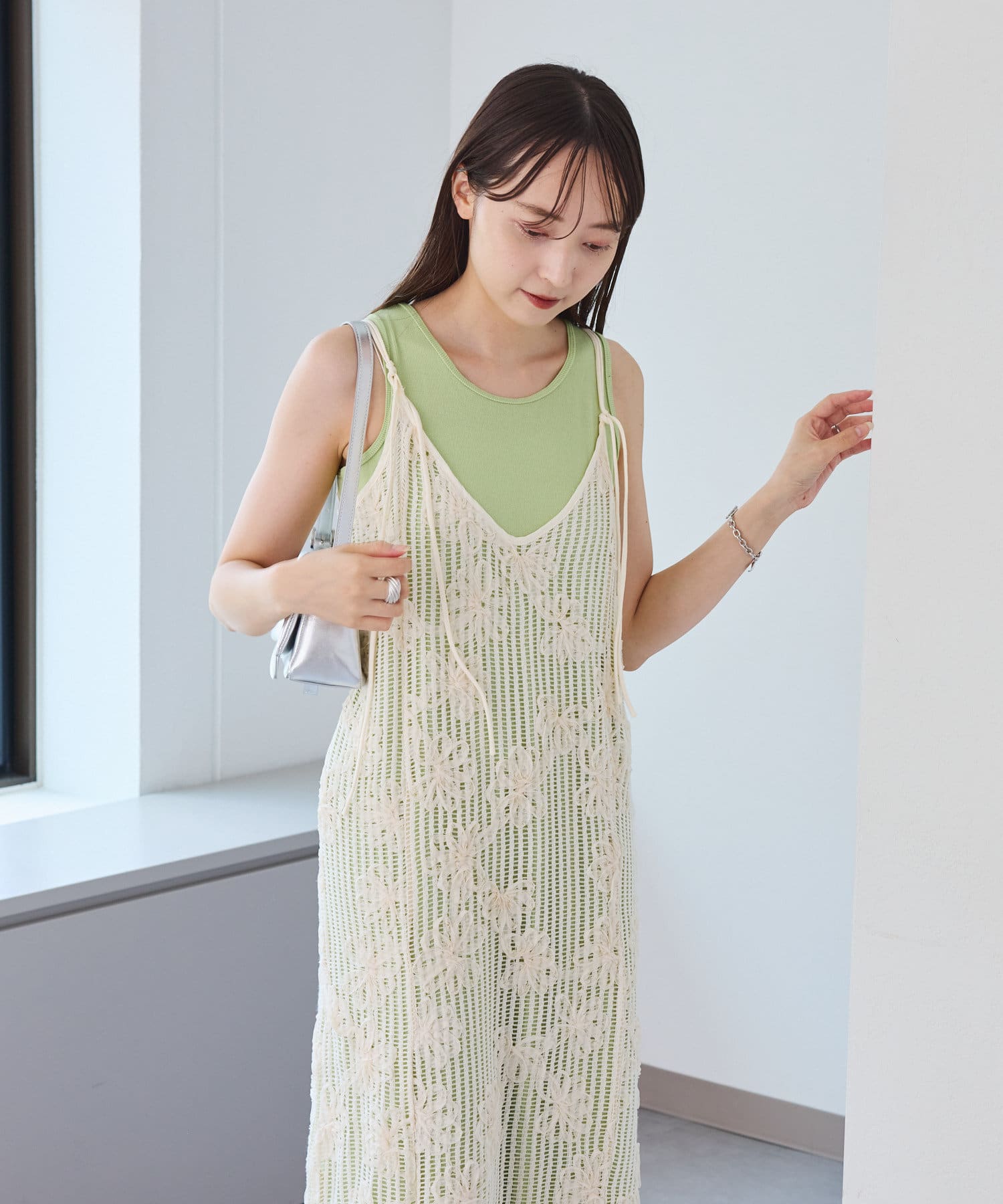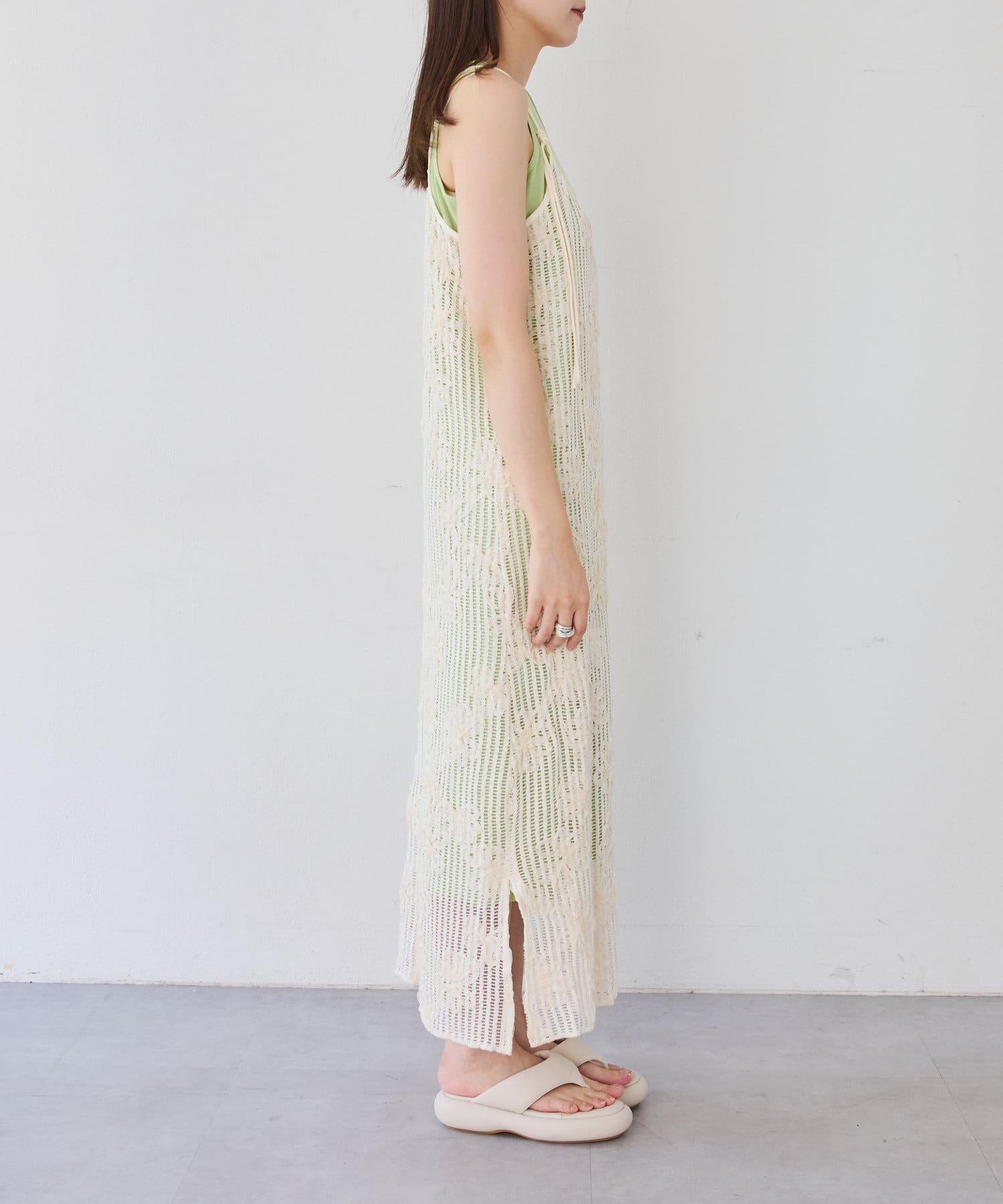 【低身長サイズ追加】フラワーレースキャミワンピース×タンクワンピースSET