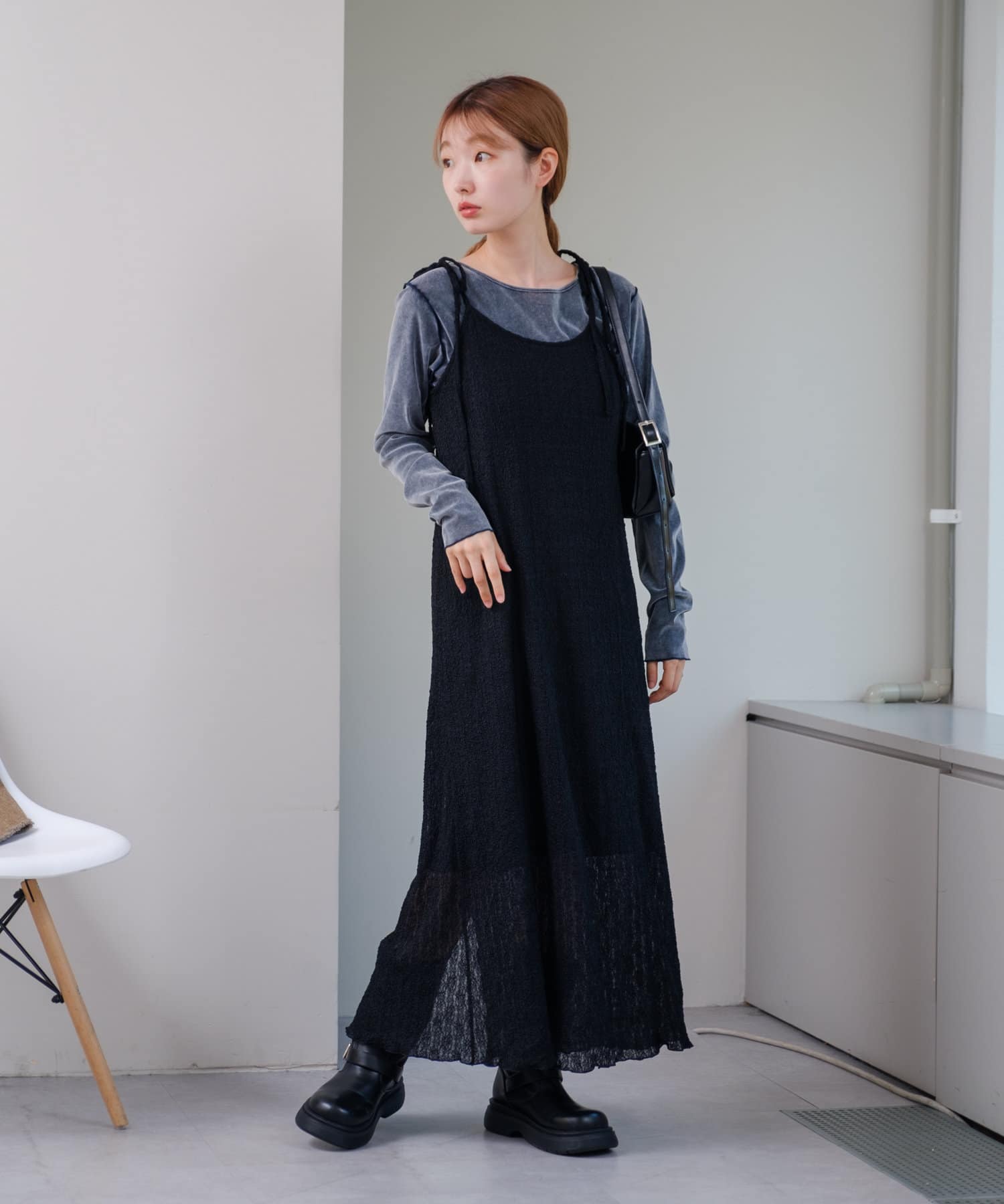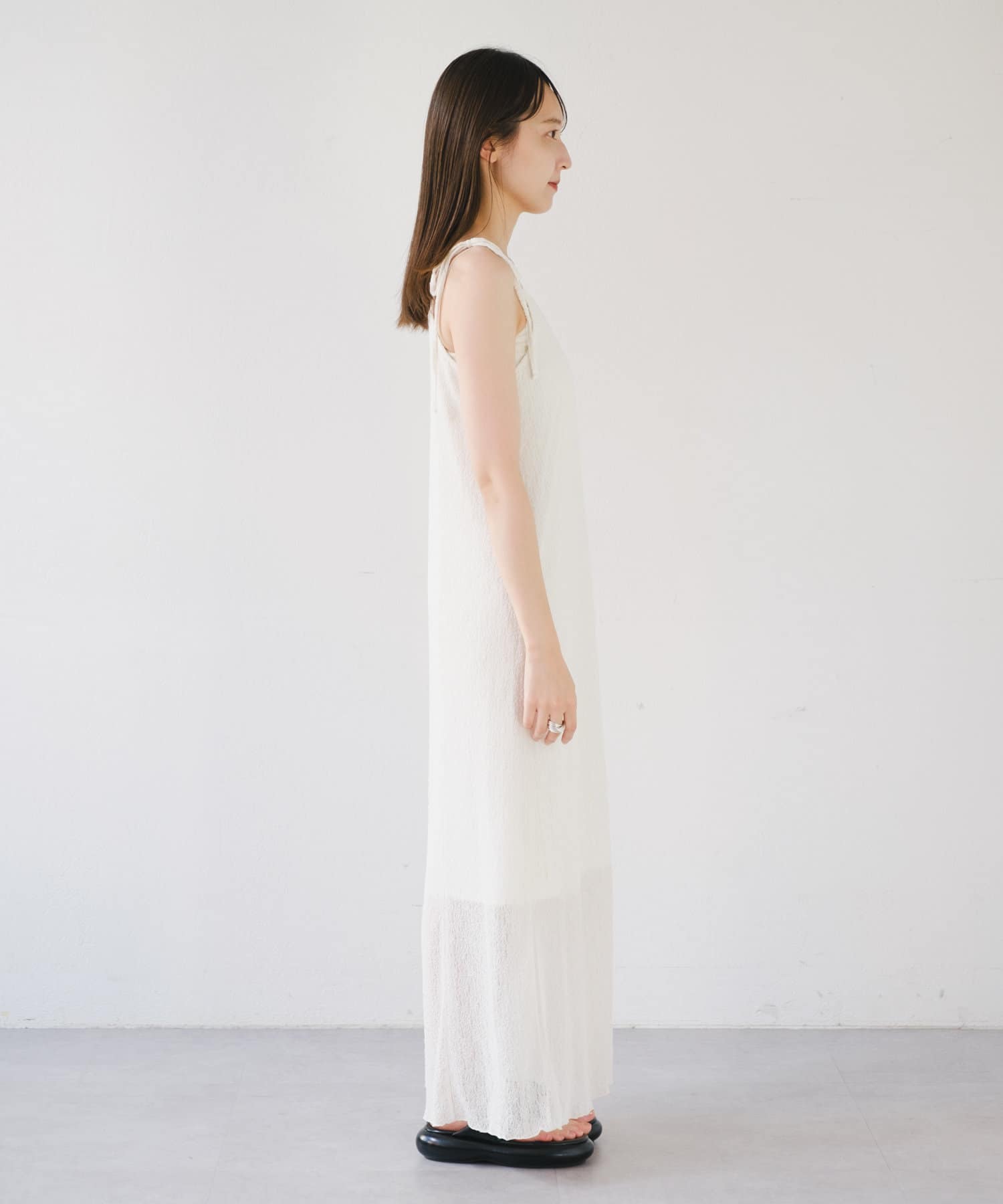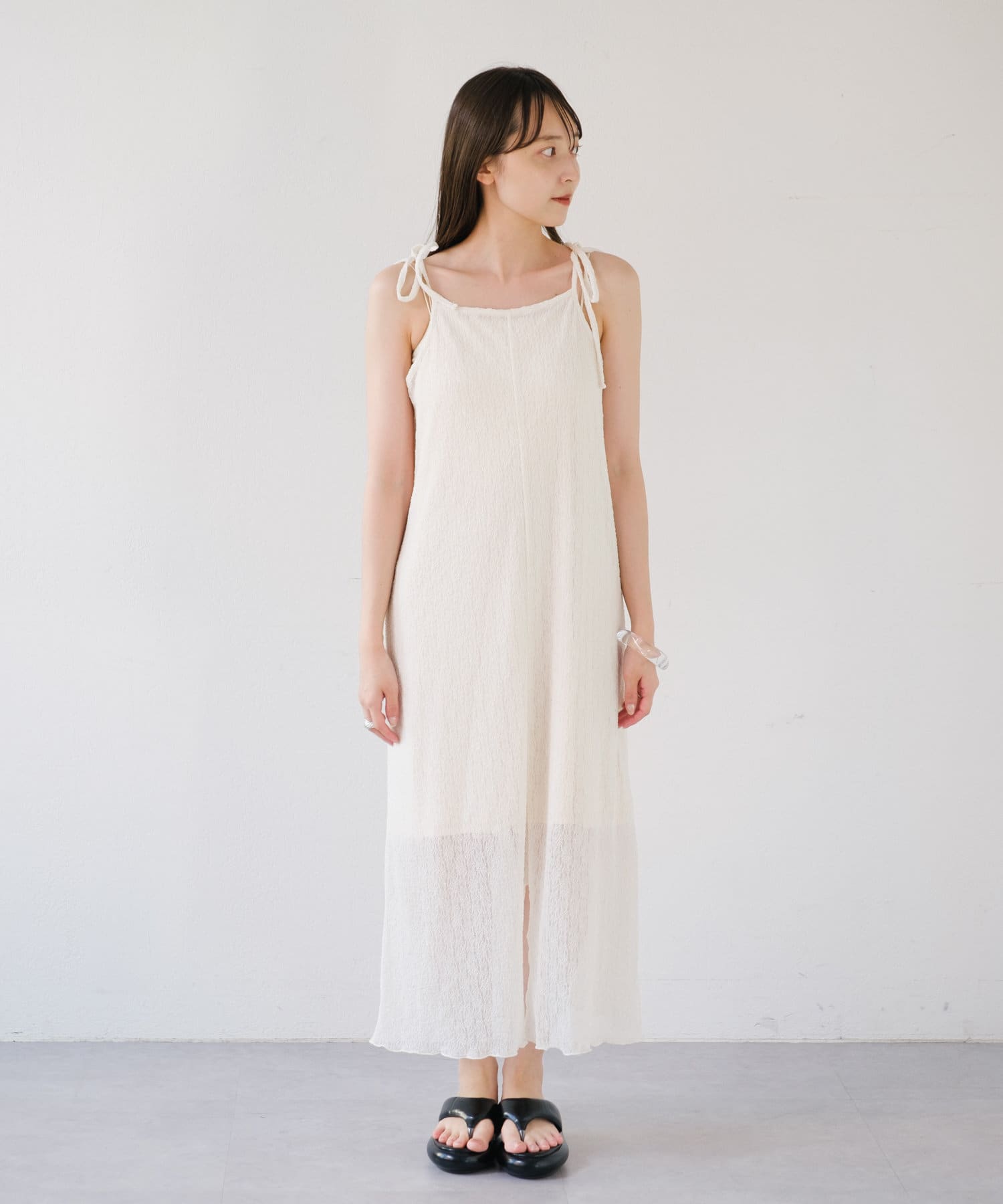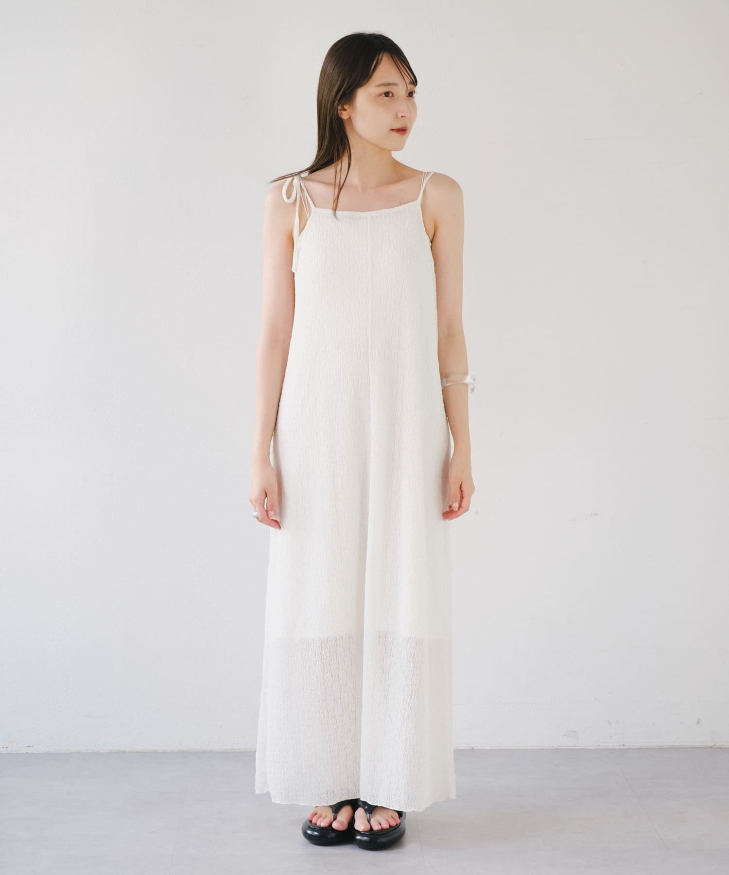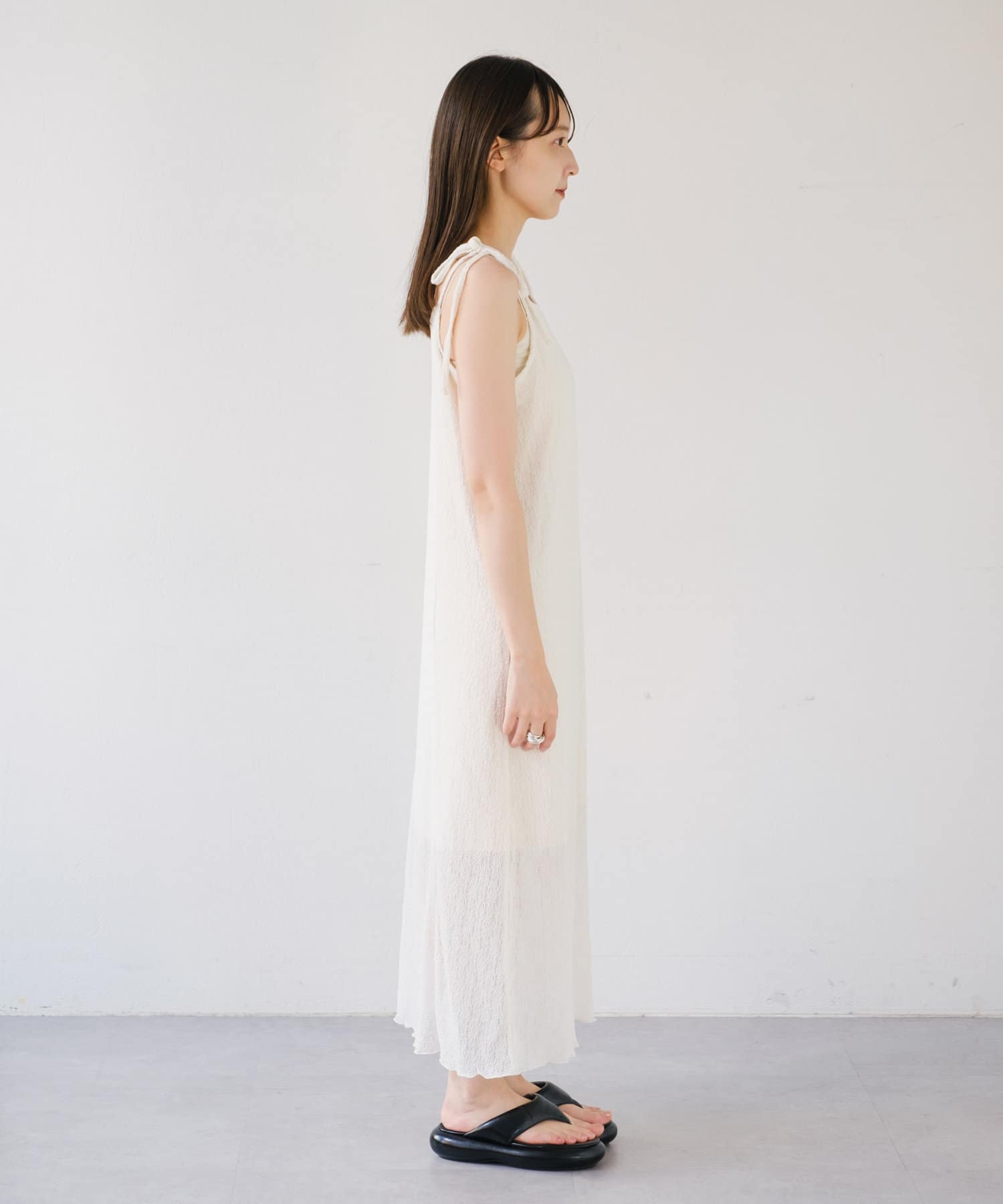 シアーフラワーデザインが涼し気で上品な印象のワンピース。