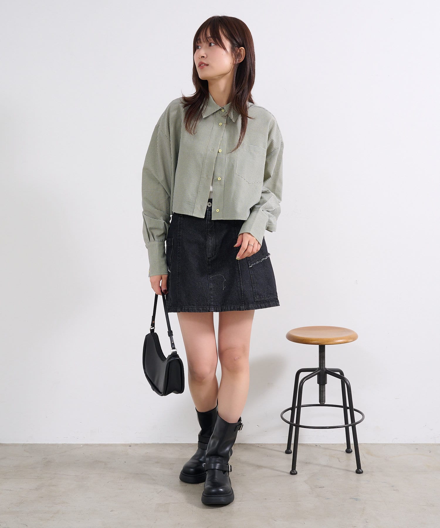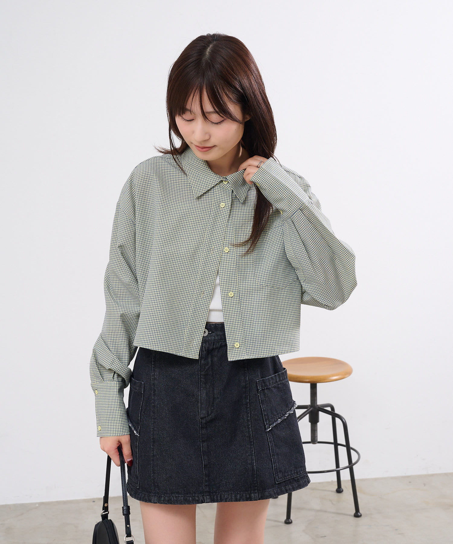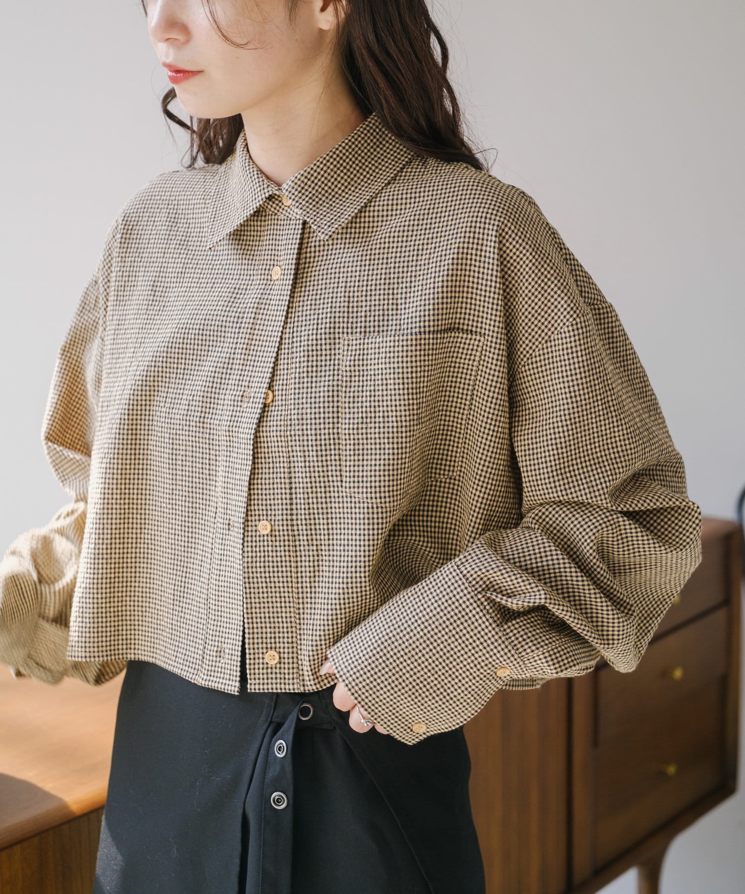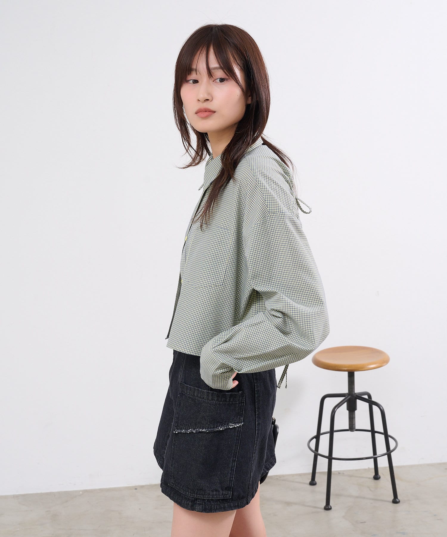 【4色展開】クロップドチェックシャツ
