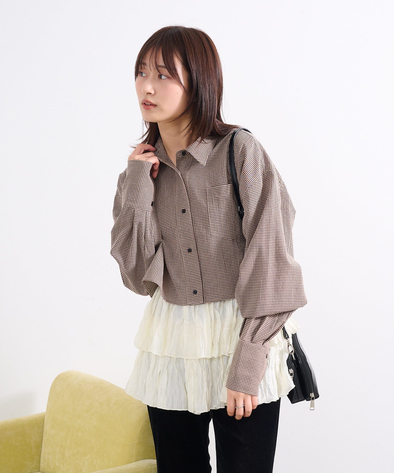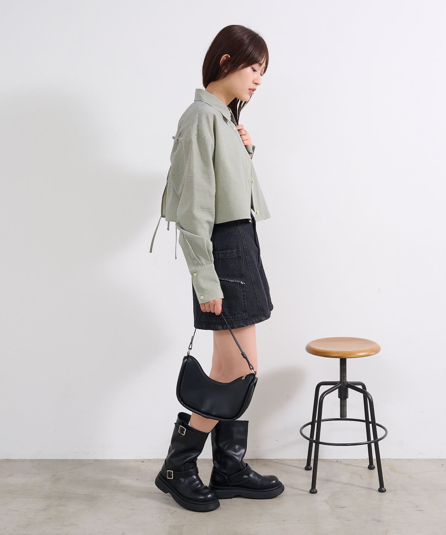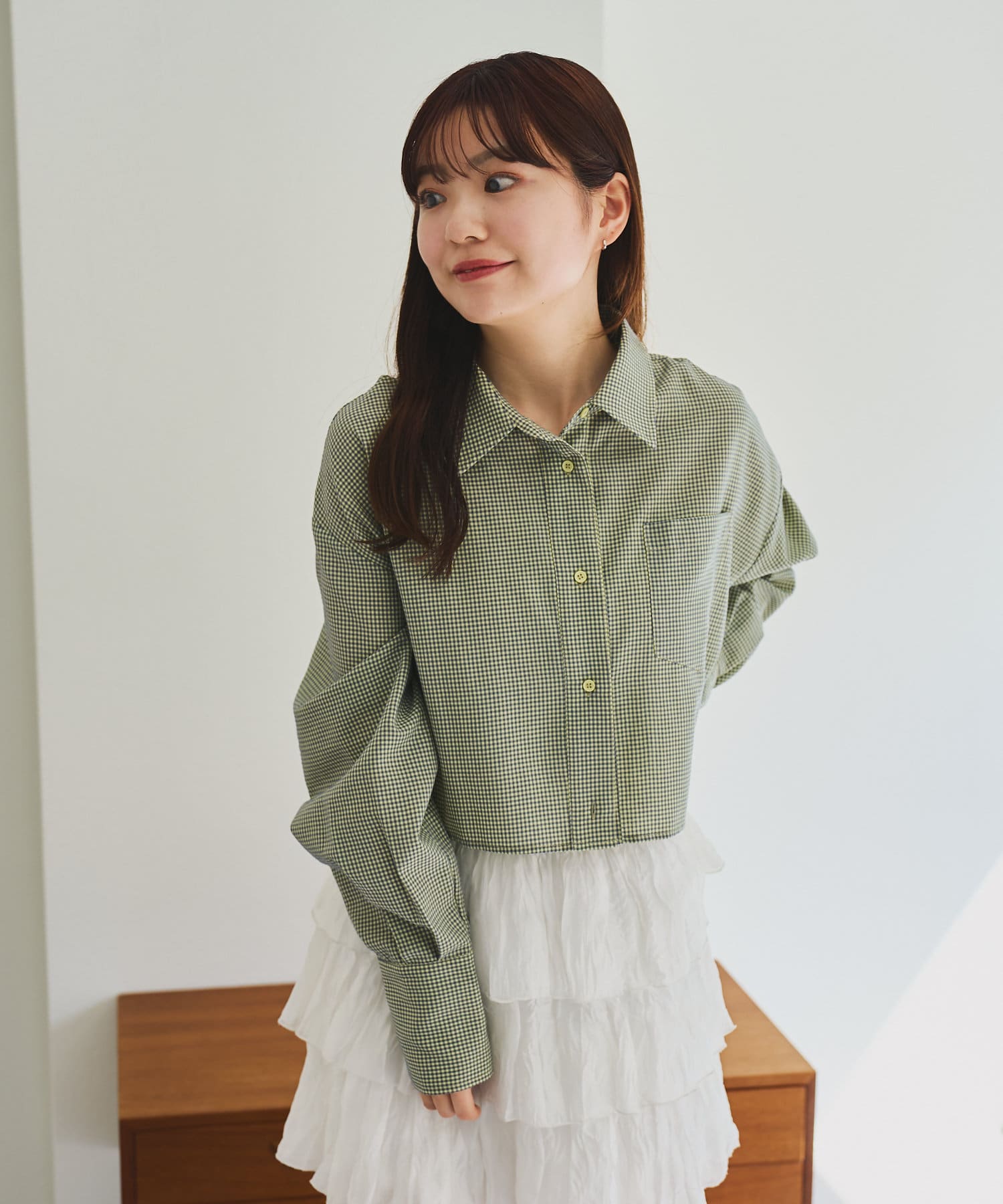 【4色展開】クロップドチェックシャツ