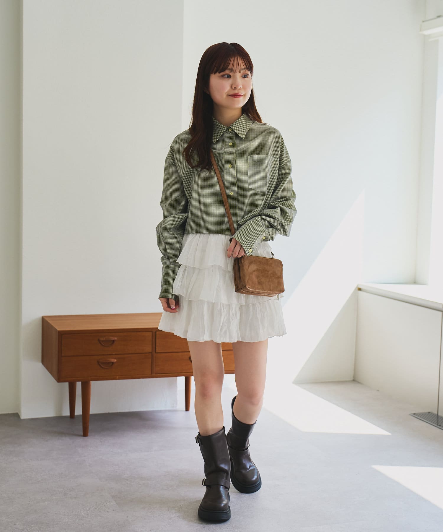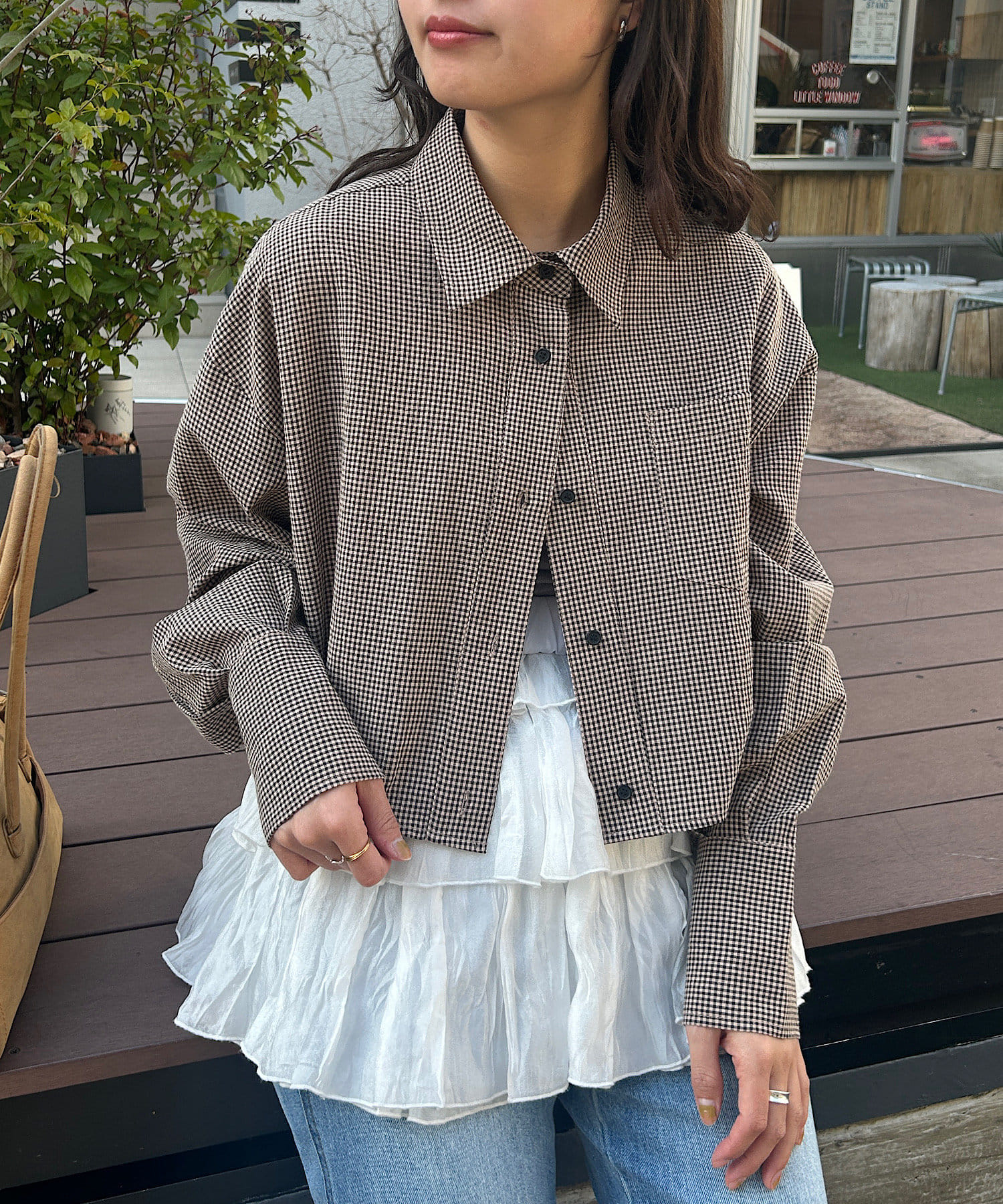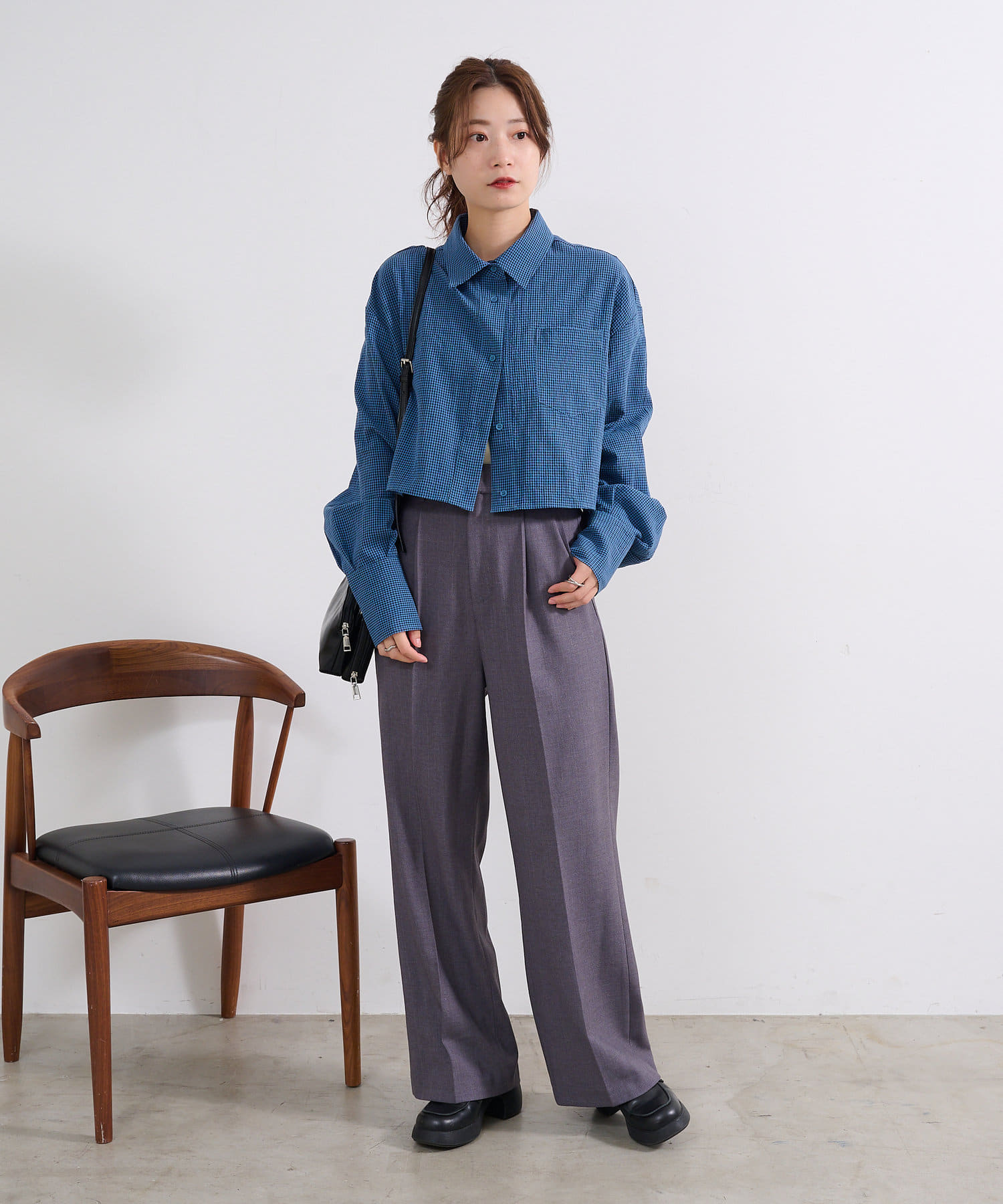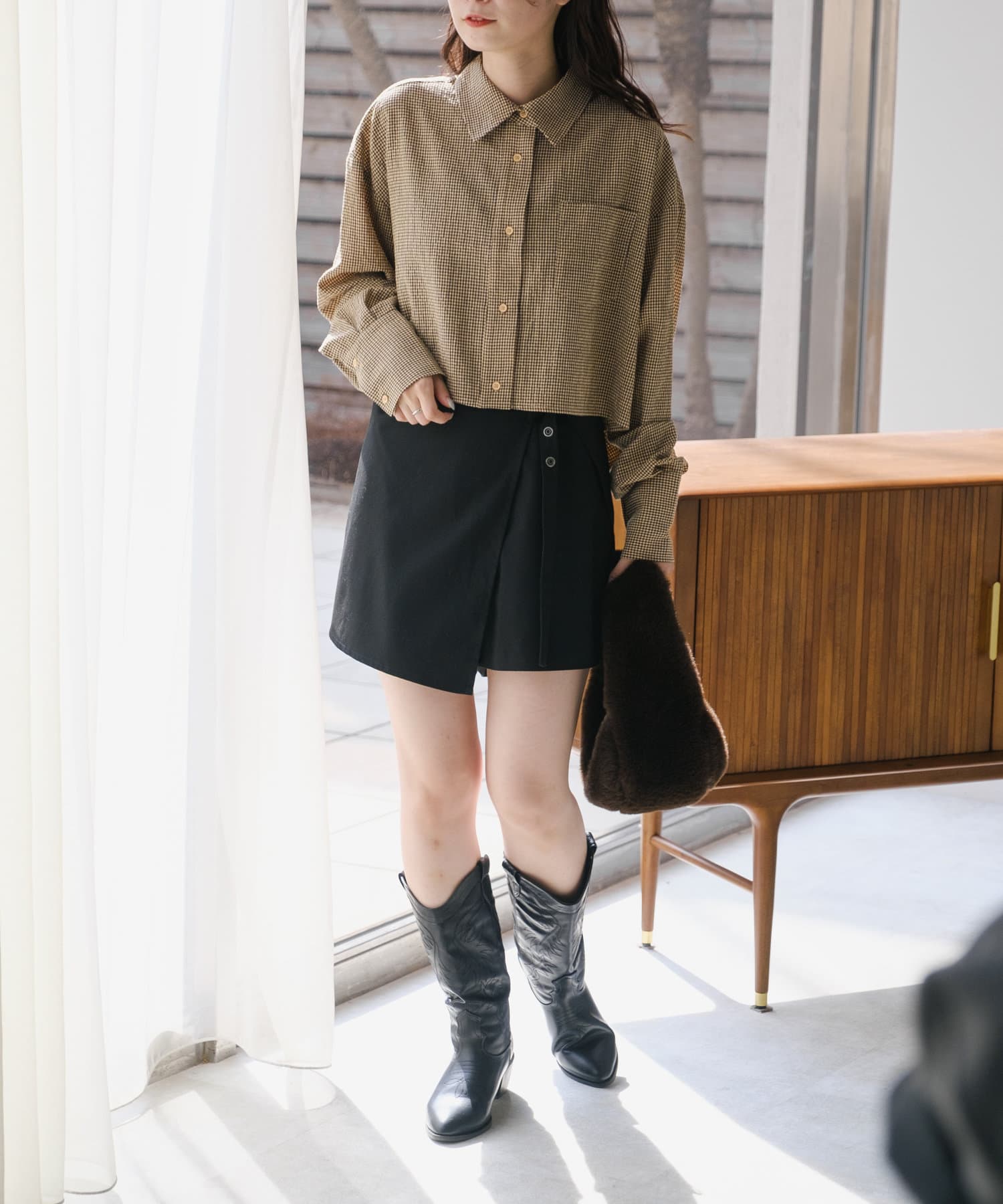 【4色展開】クロップドチェックシャツ