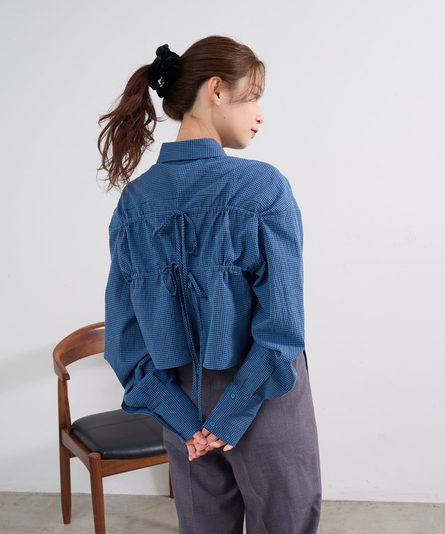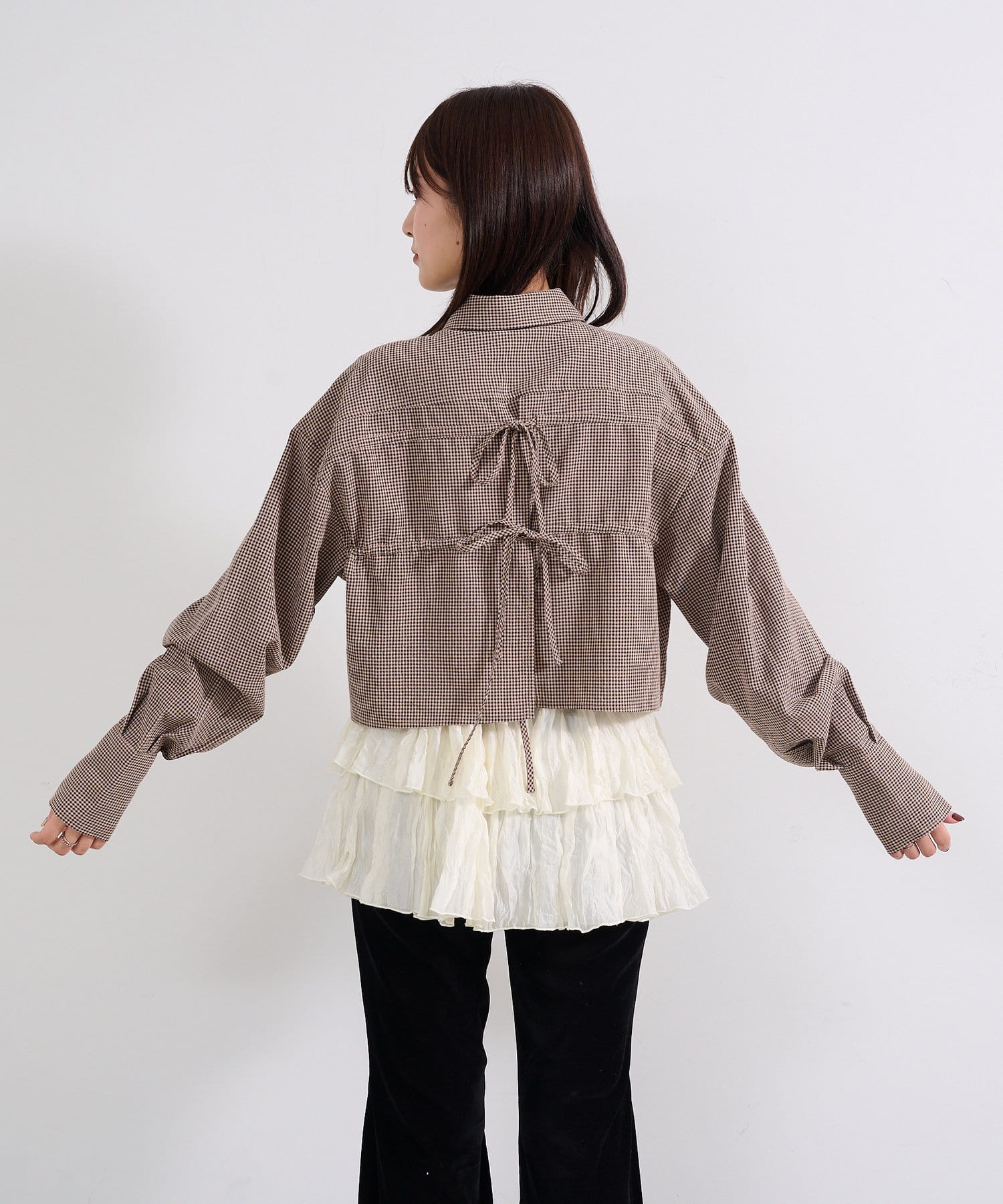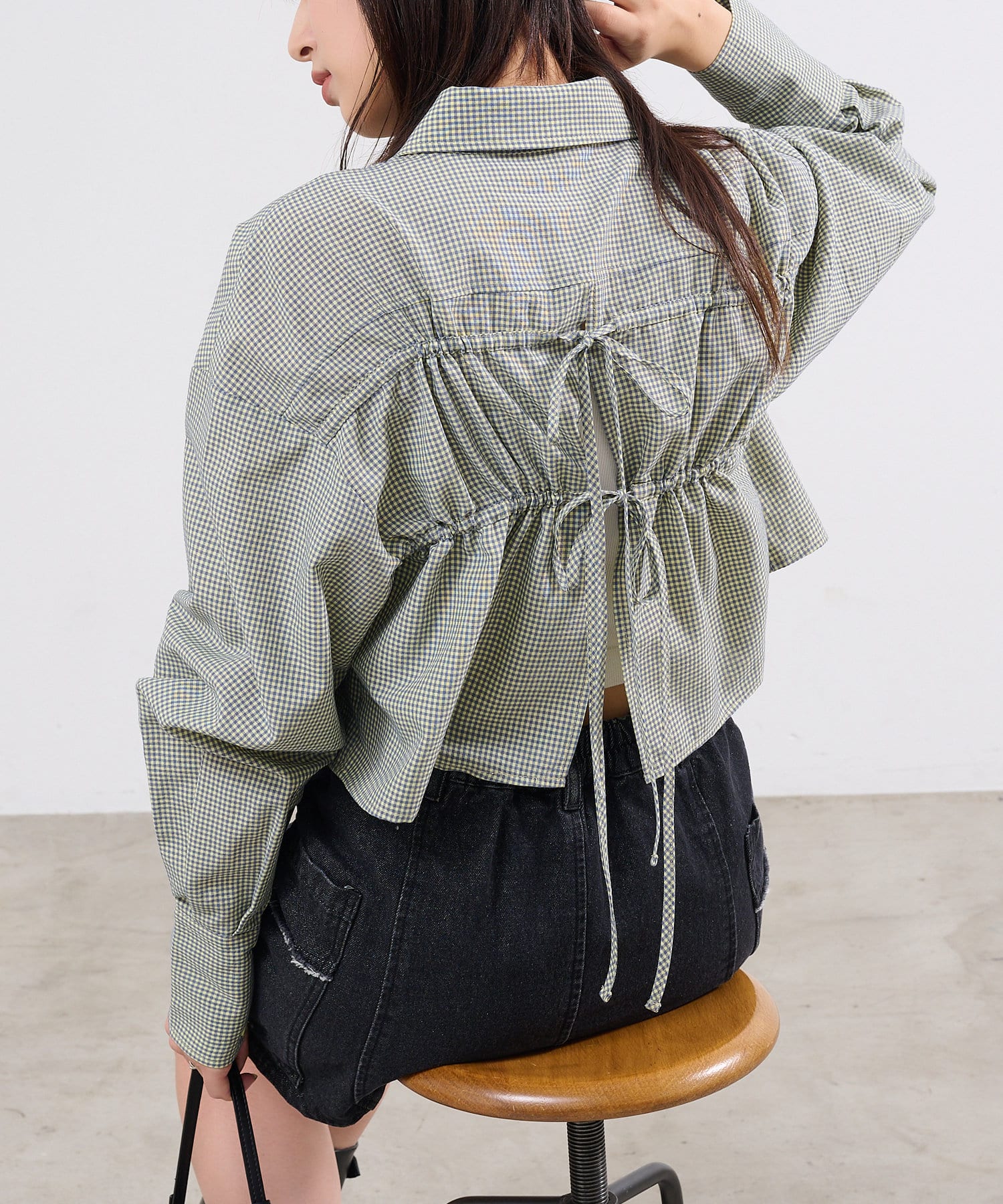 ギンガムバックリボンシャツ