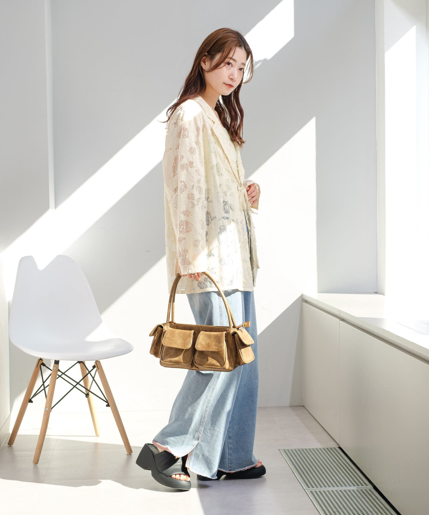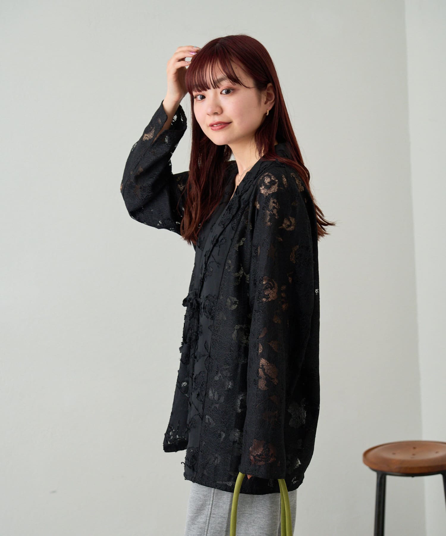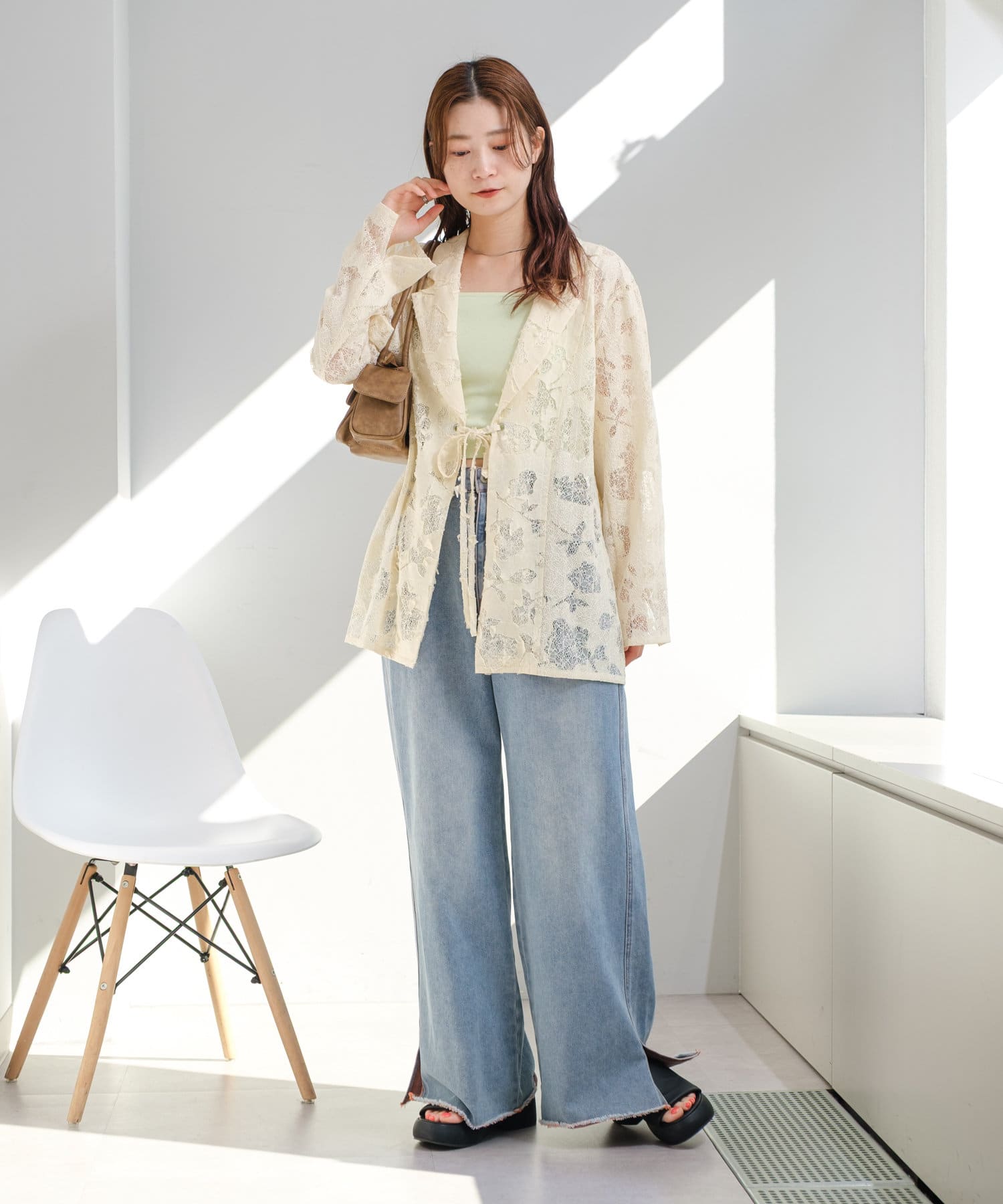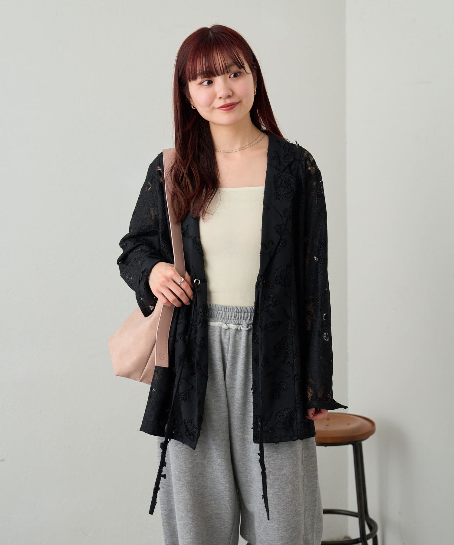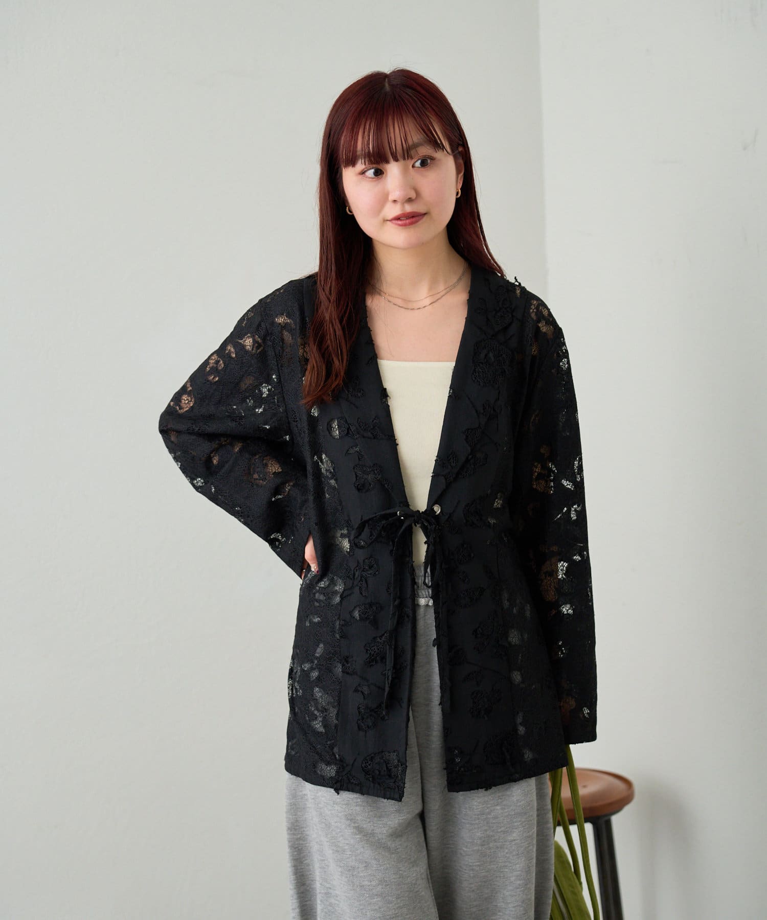 カップ付きインナーの上から羽織るだけで、あか抜けたスタイリングに。