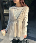Tシャツや薄手のインナーなど様々なトップスとレイヤード出来ます。