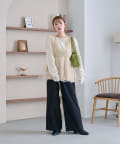 Iラインスカートやスラックスパンツと合わせたキレイめスタイリングがおススメ。