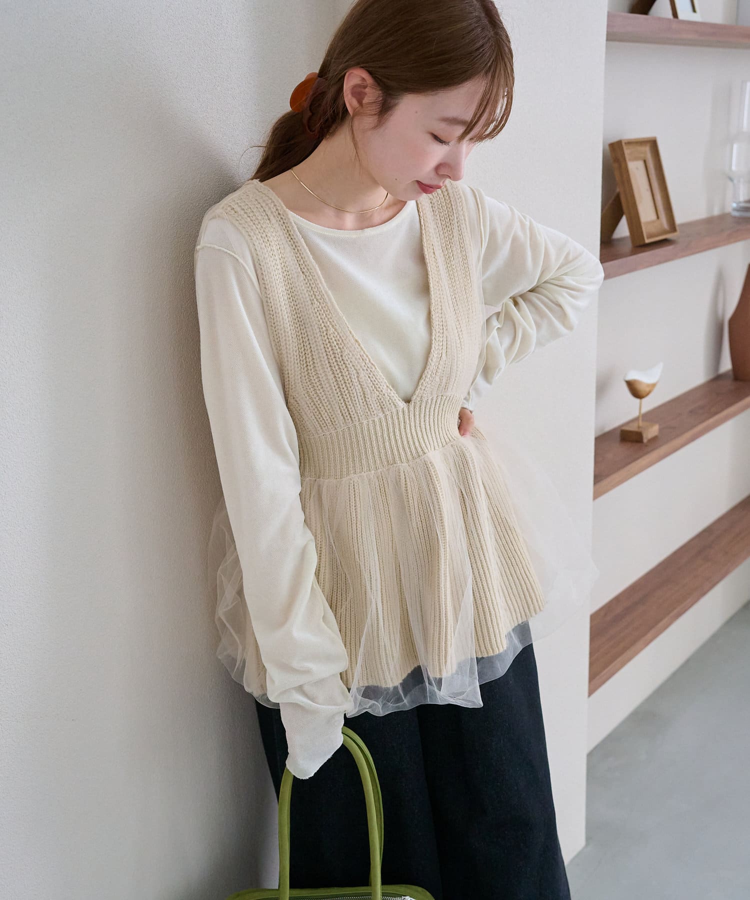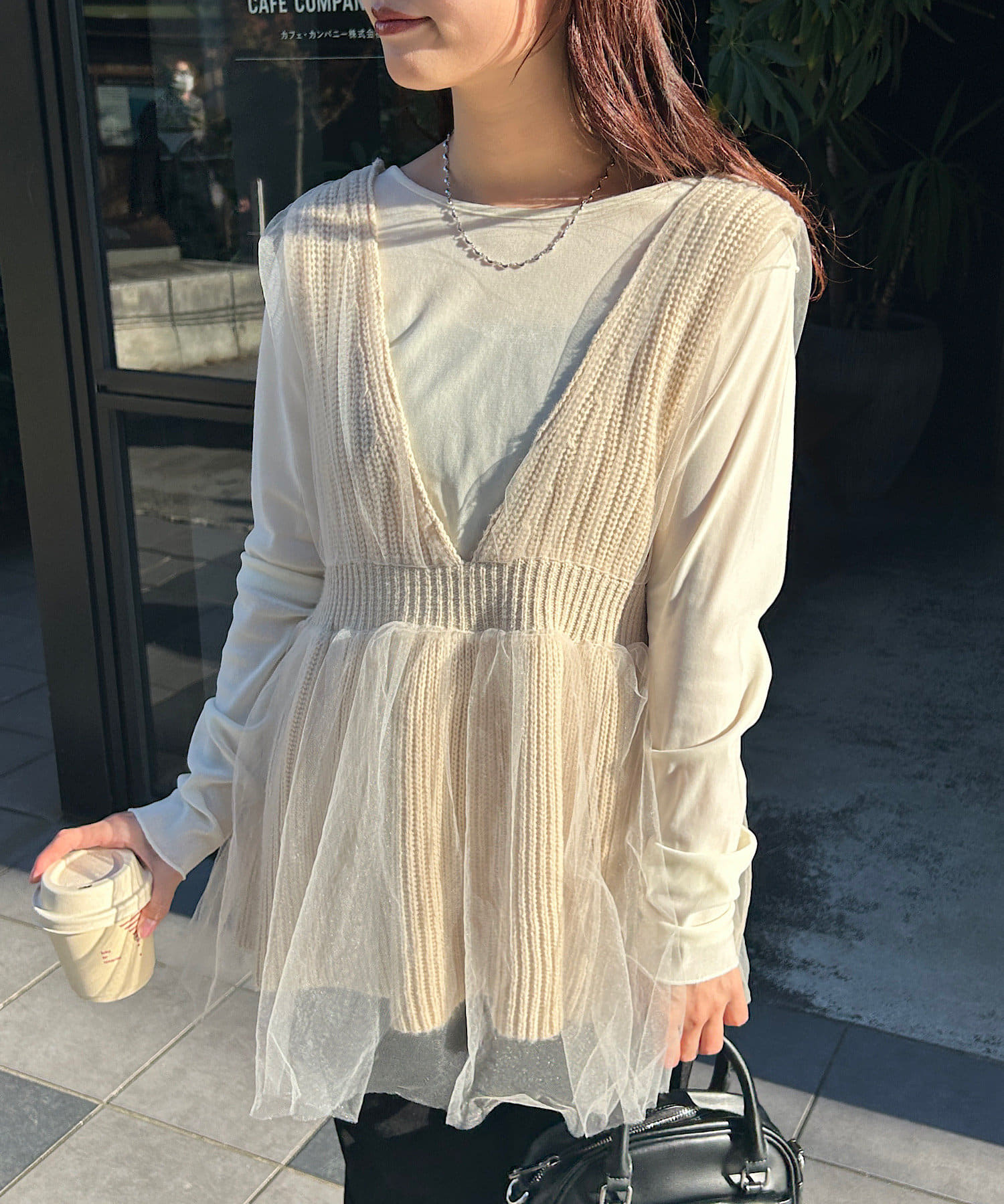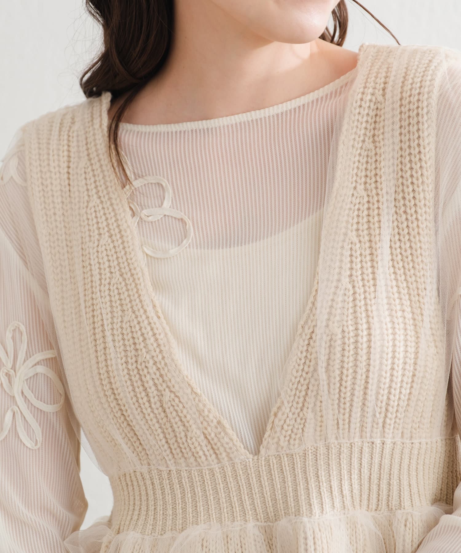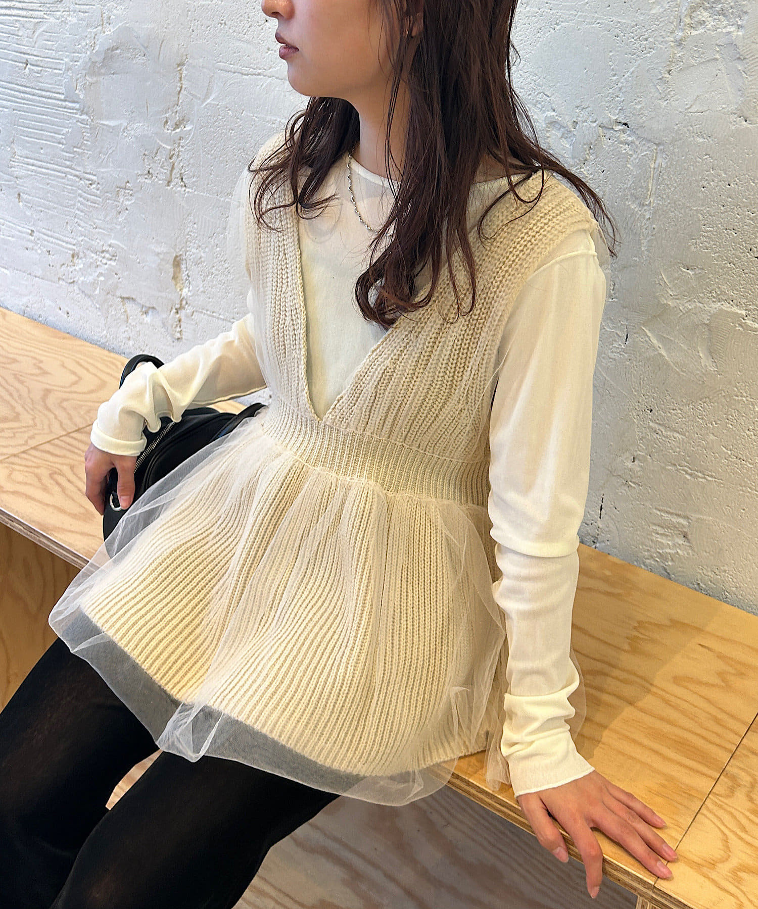 素材:素材:【ニット】アクリル100%【チュール】ナイロン100%