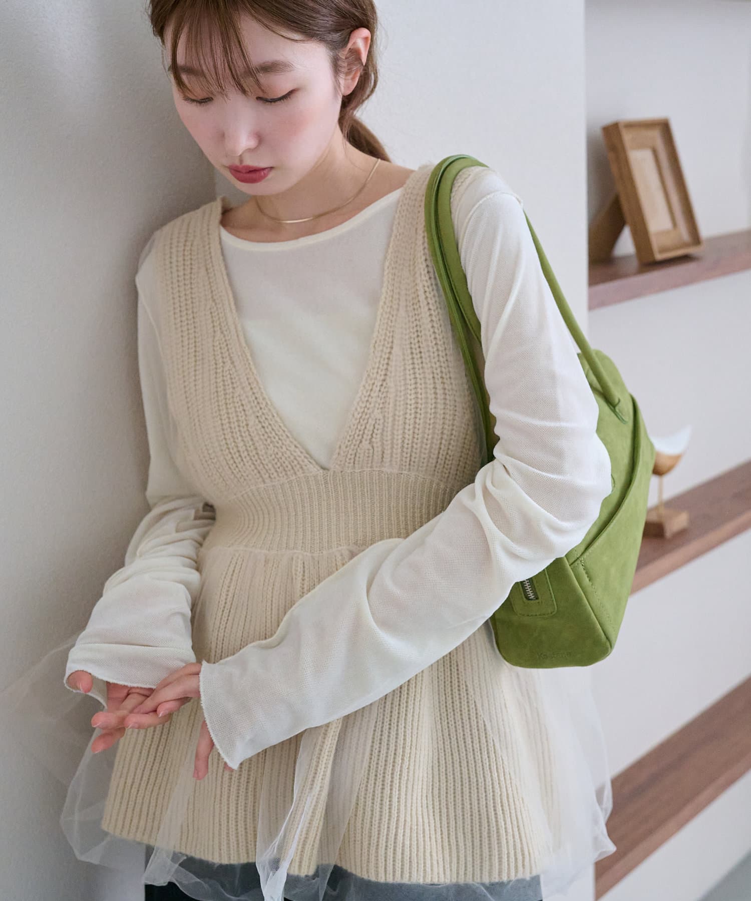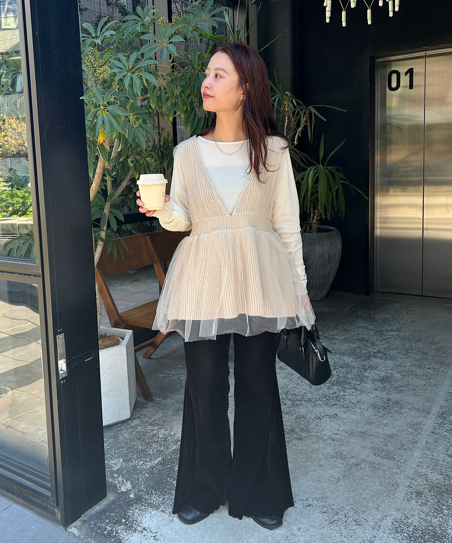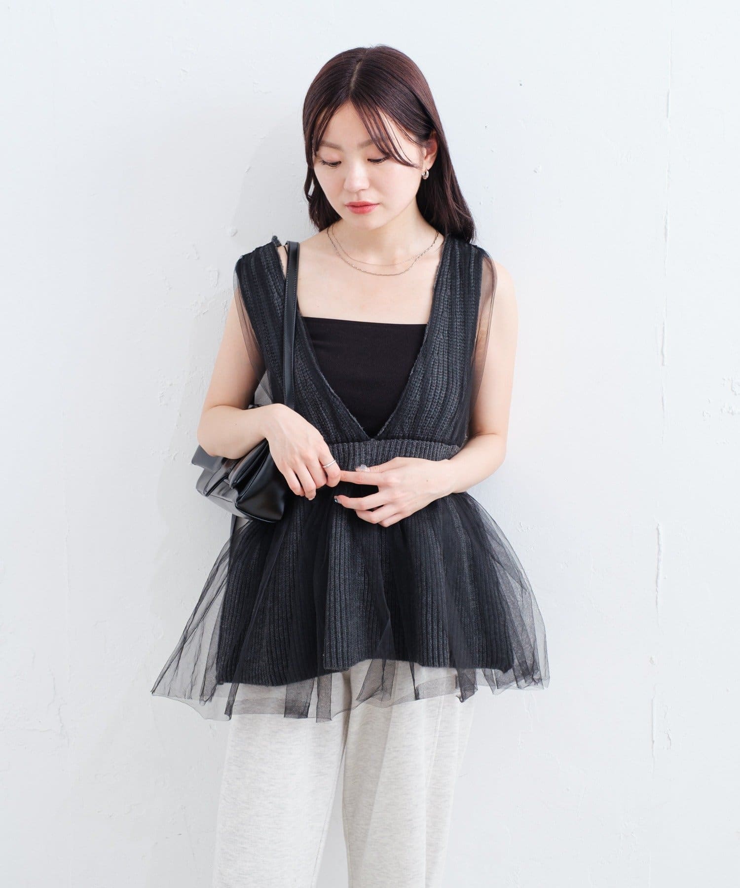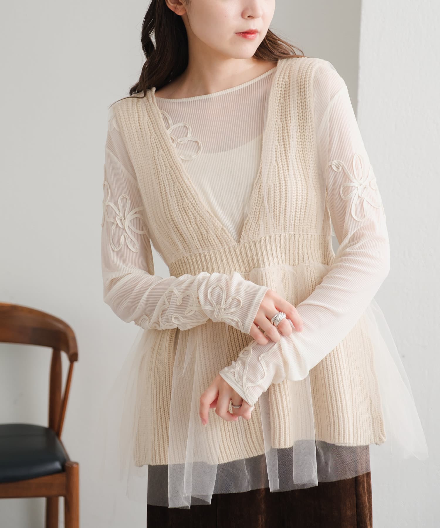 素材:素材:【ニット】アクリル100%【チュール】ナイロン100%