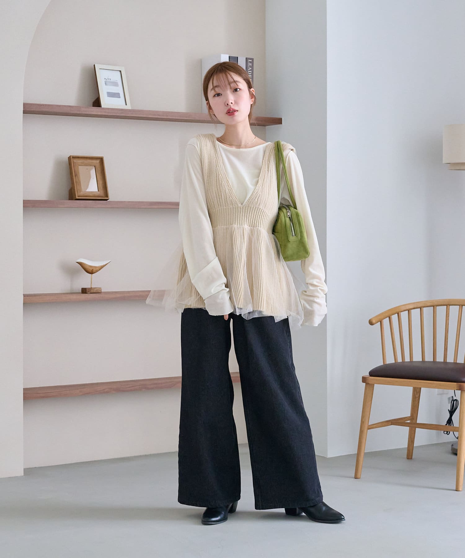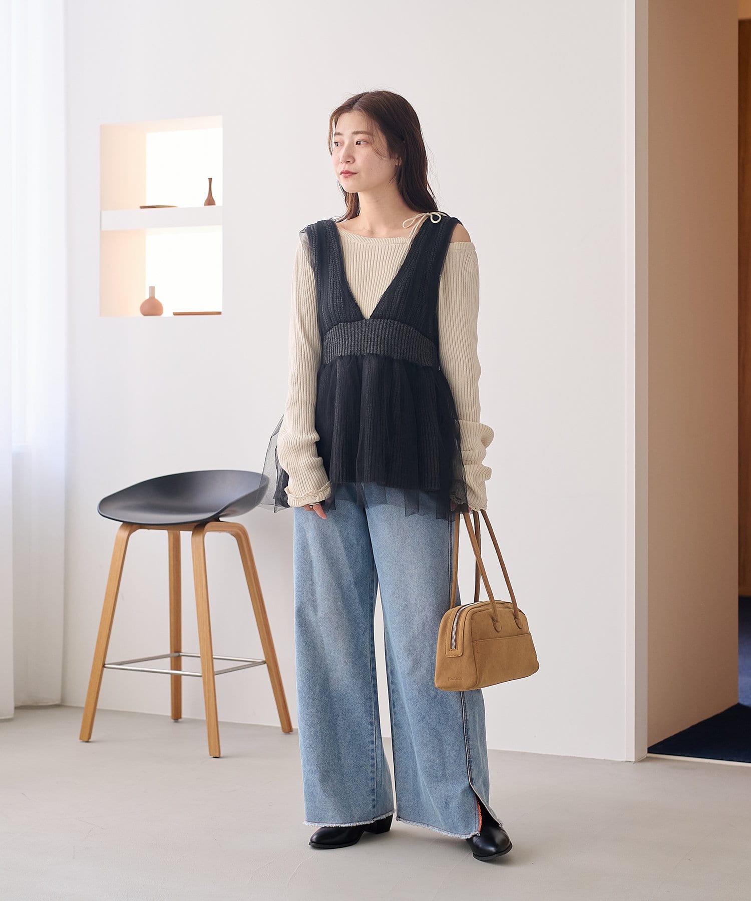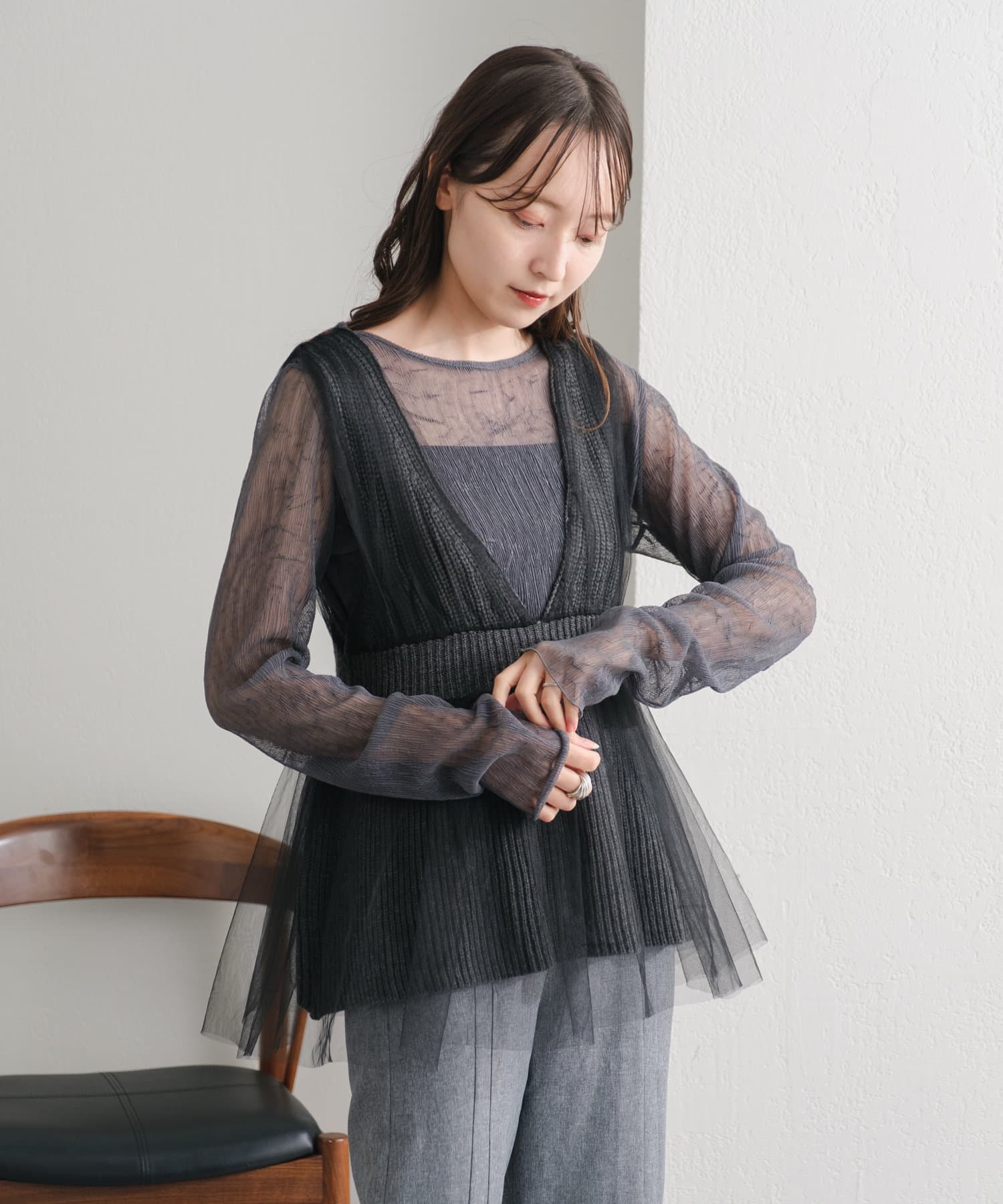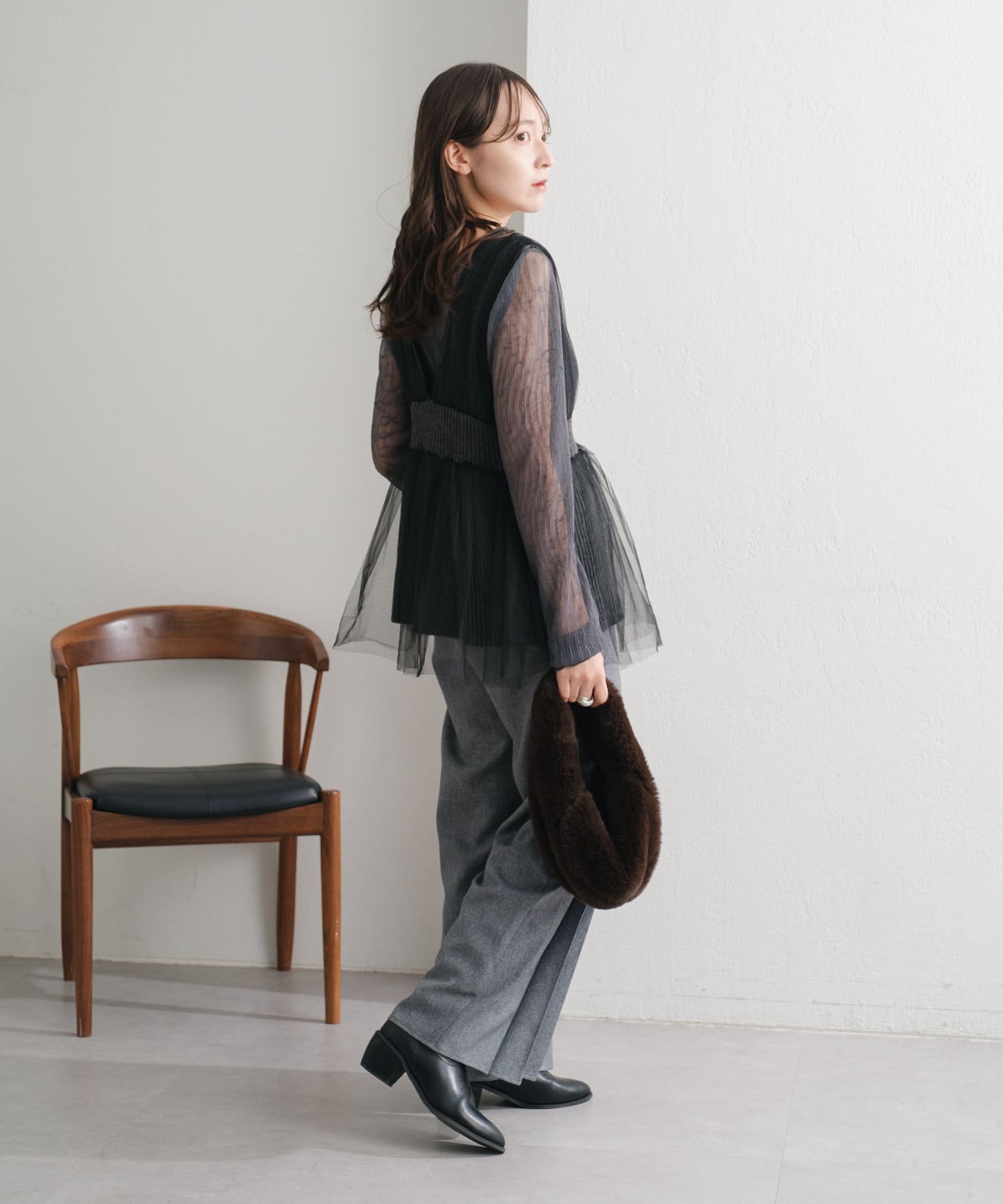 素材:素材:【ニット】アクリル100%【チュール】ナイロン100%