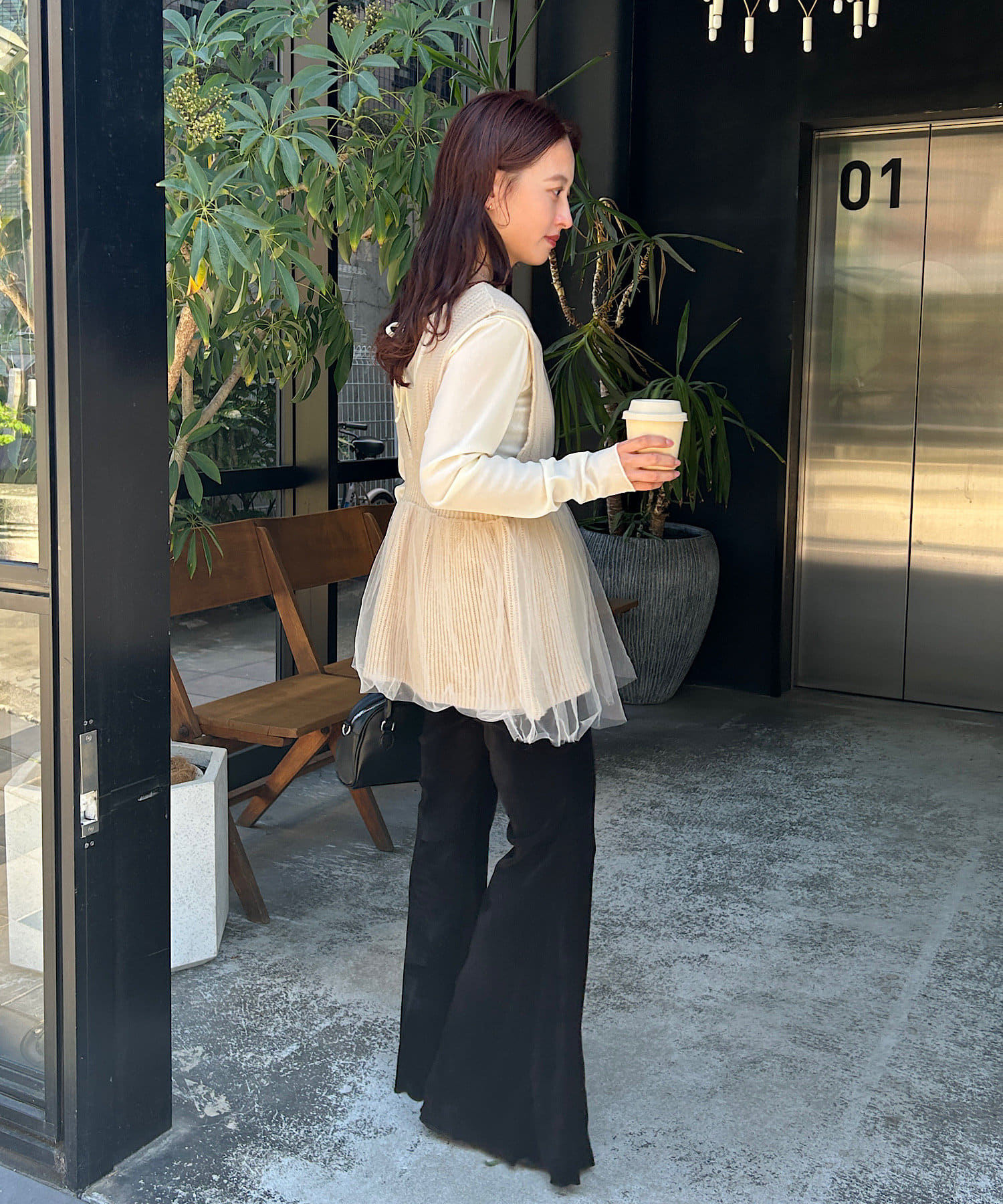 購入場所:パルクローゼットまだ暑い日が続いてるので着れていませんが、チュールの部分も可愛くて、ベストなのですっきり着れます!妊娠中のお腹周りも誤魔化せそうで買ってよかったです^^