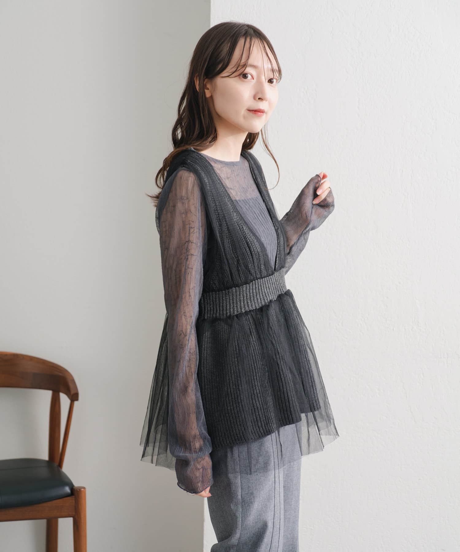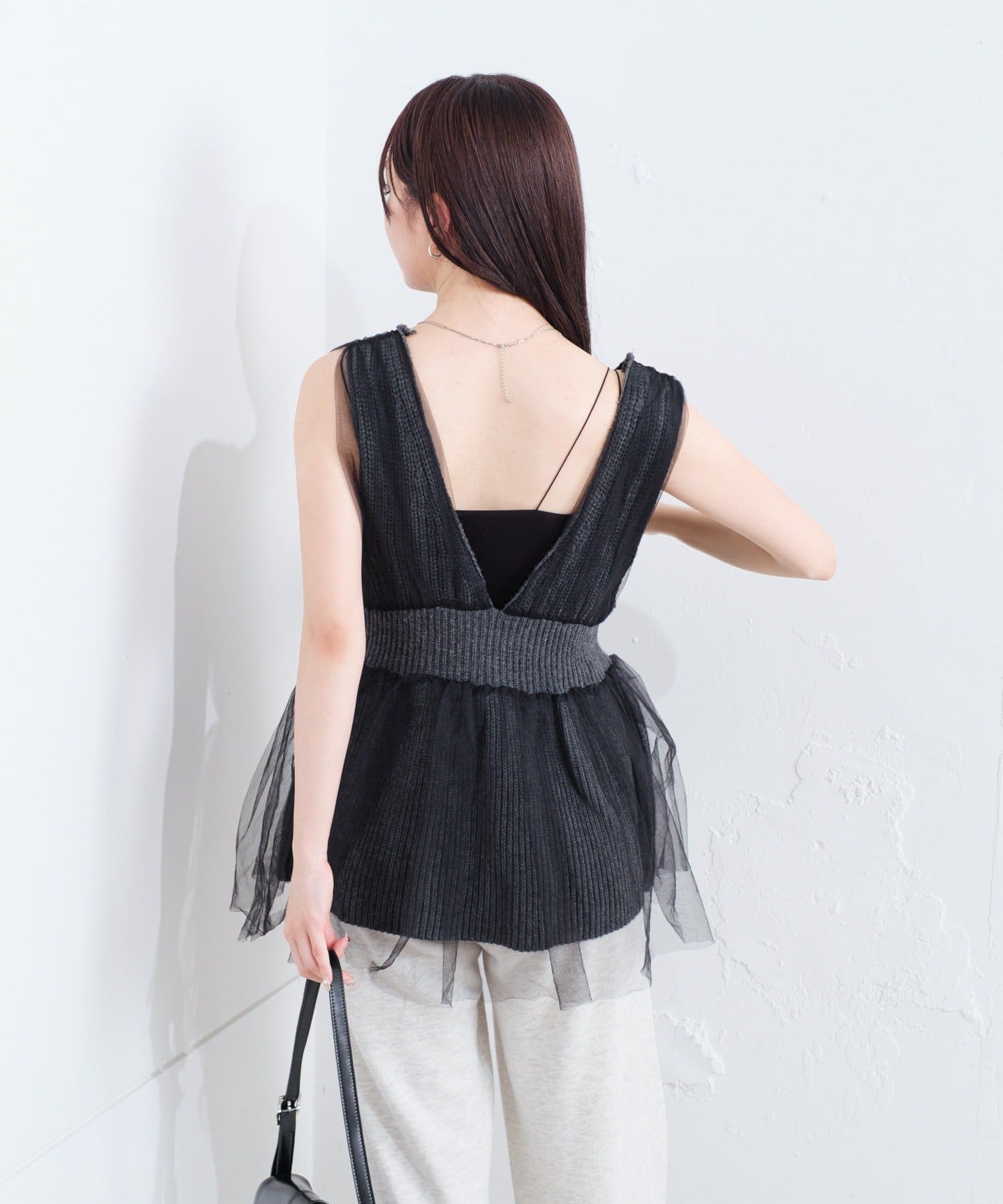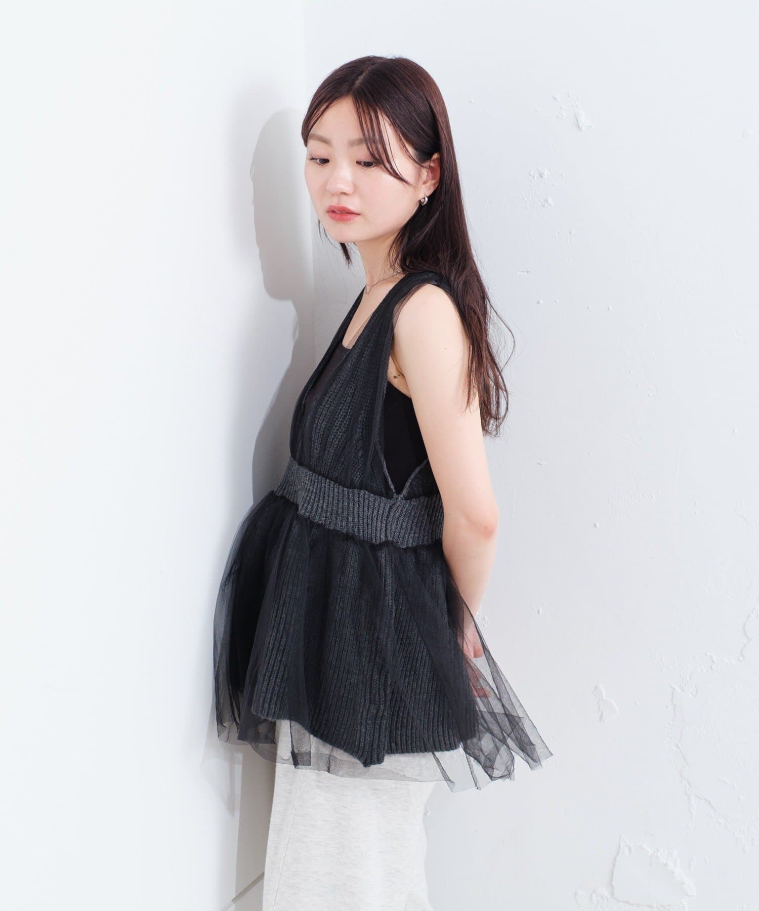 品番 KAZ1042107A0002 素材 【ニット】アクリル100%【チュール】ナイロン100% 原産国 - サイズ F カテゴリ トップス > ベスト/ジレ タイプ レディース ギフト ラッピング 可 取り扱い ご自宅では洗えませんのでクリーニングショップにご相談ください。 アイテムサイズ