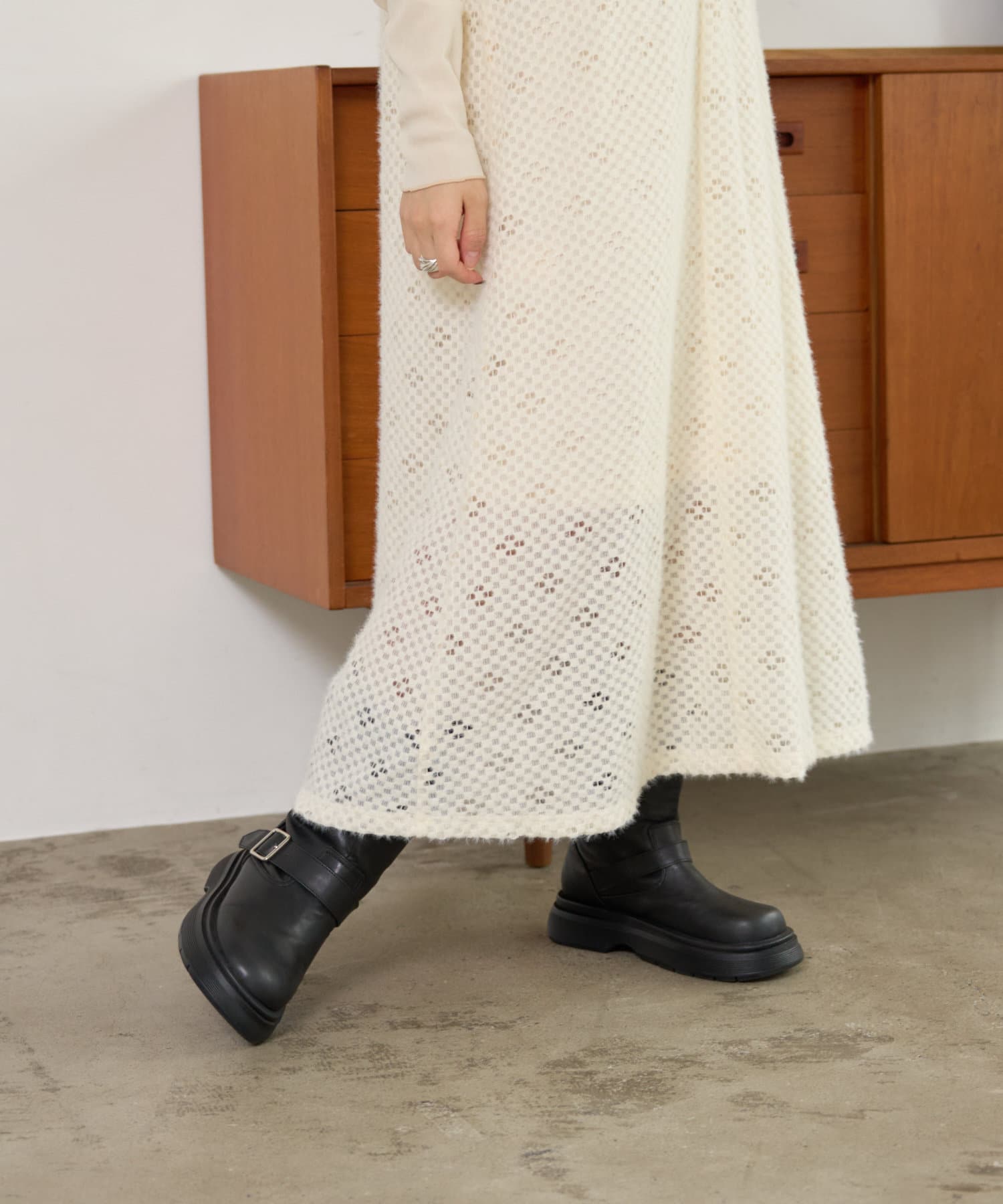 膝まで裏地が付いているので、一枚でも楽しめるアイテムです。
