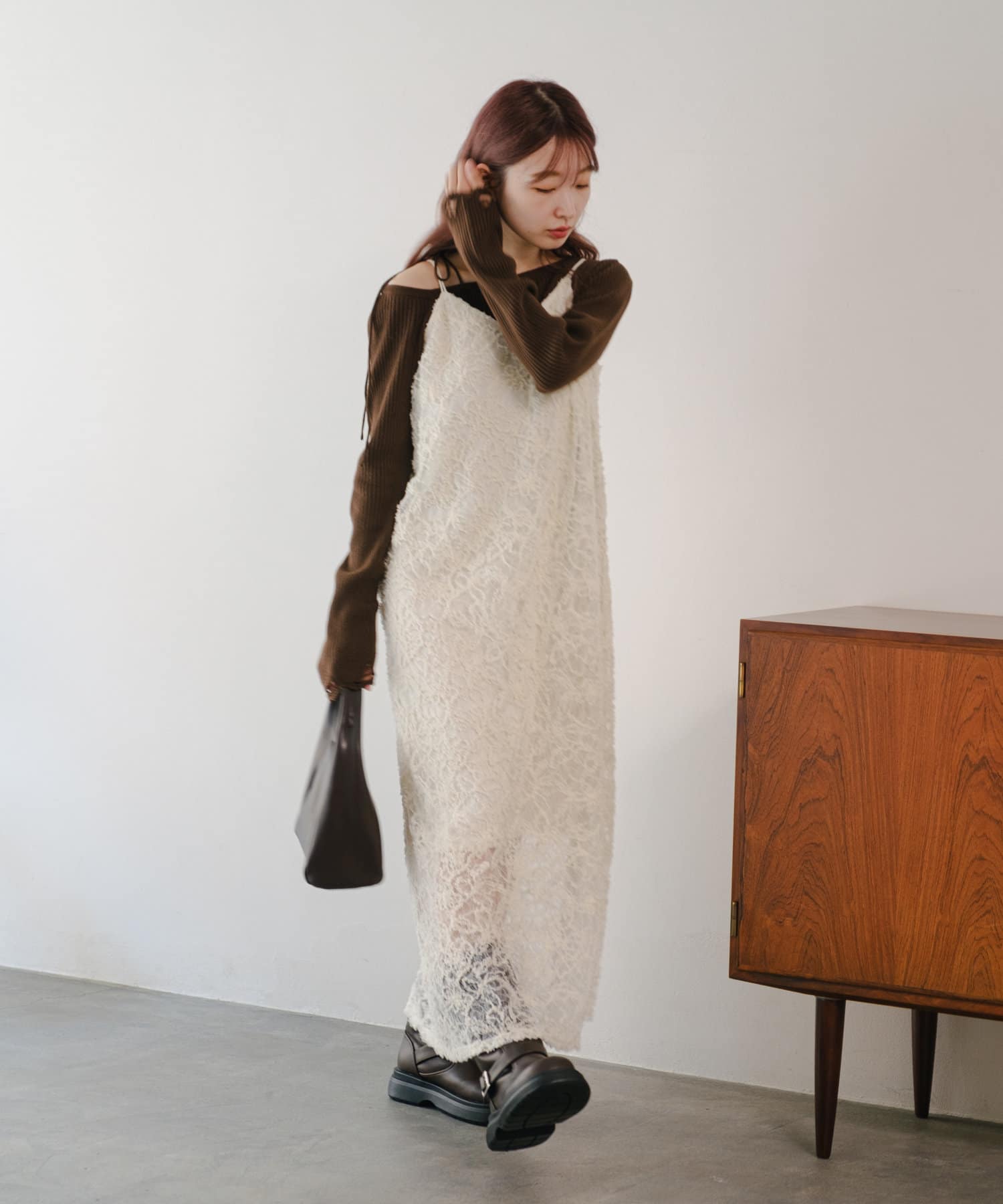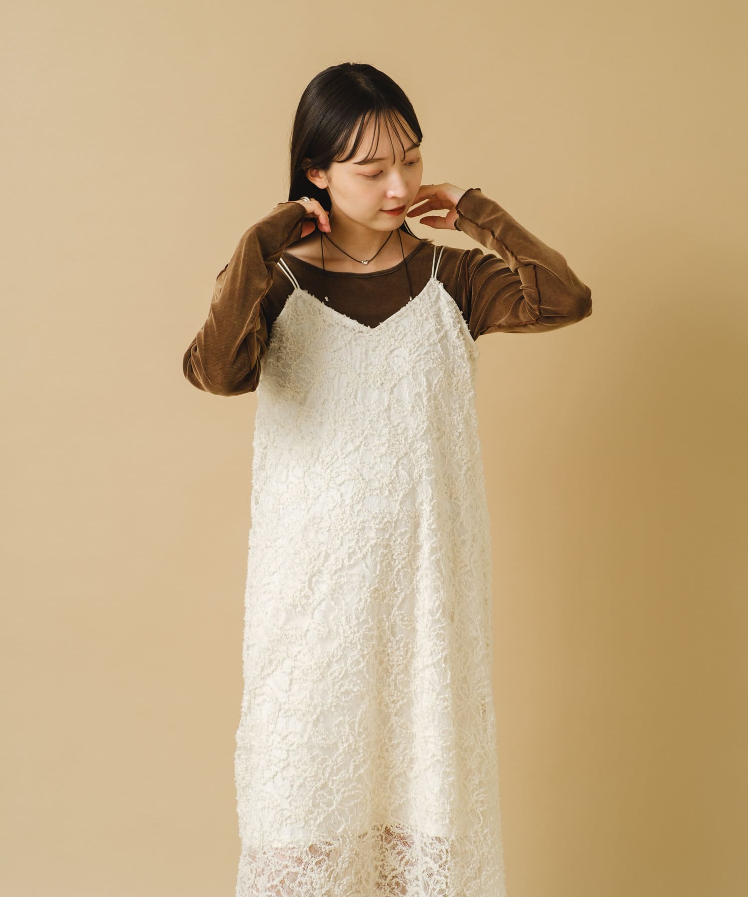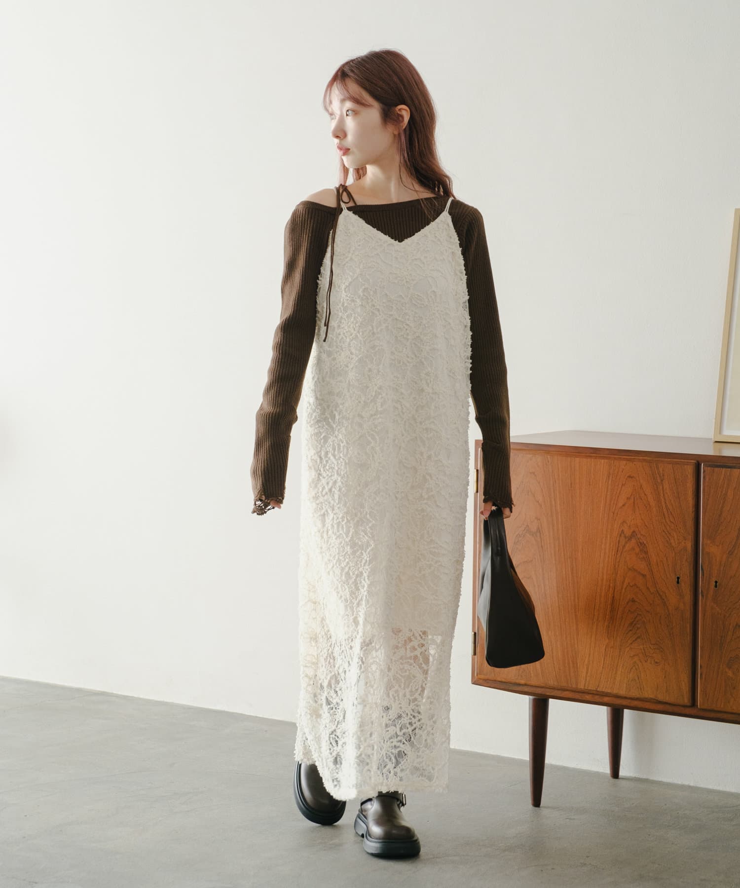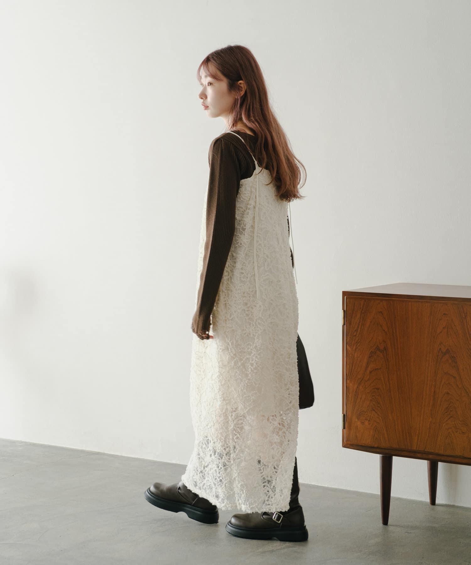 落ち感のあるシルエットで、大人なレースが魅力のワンピース。