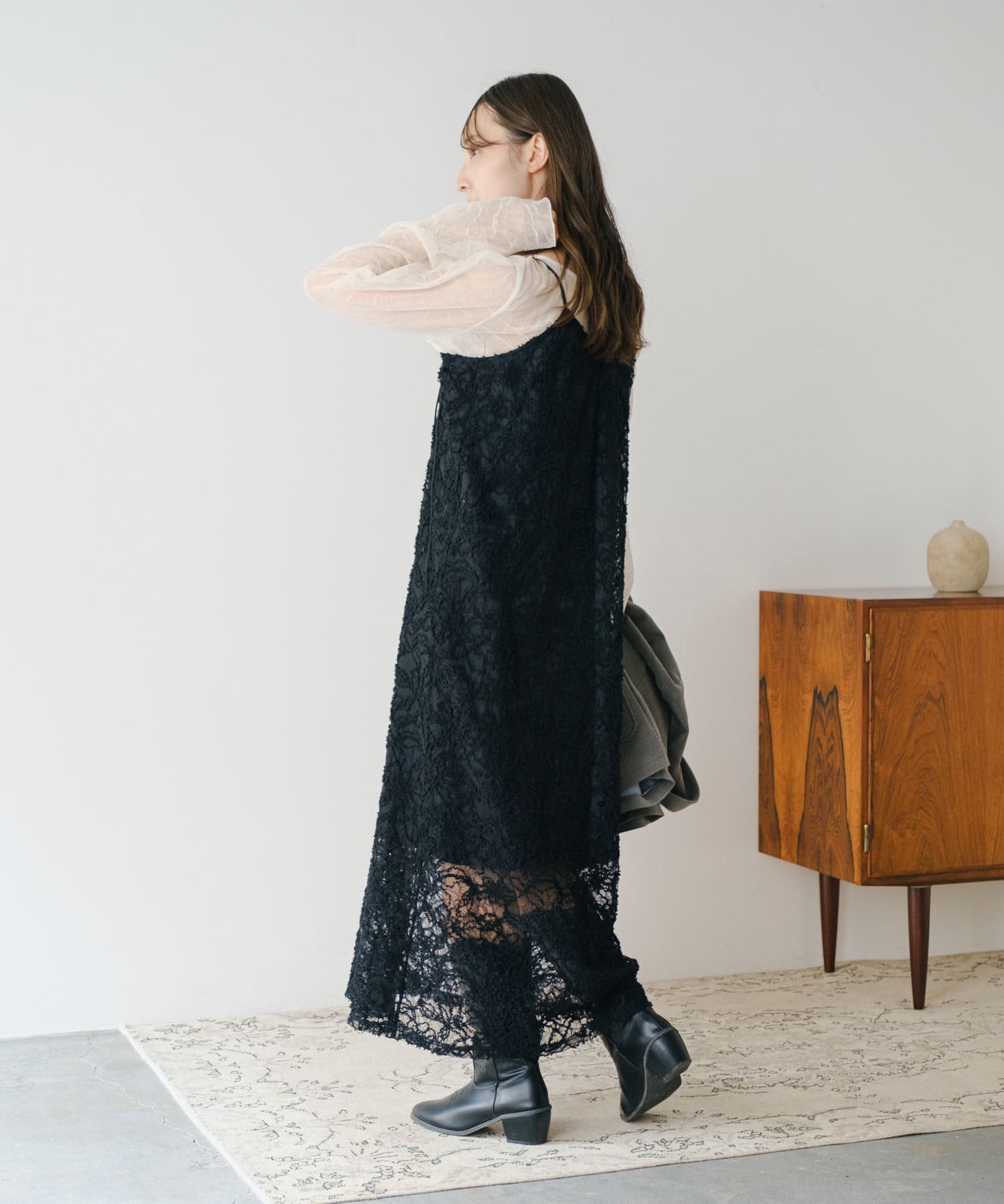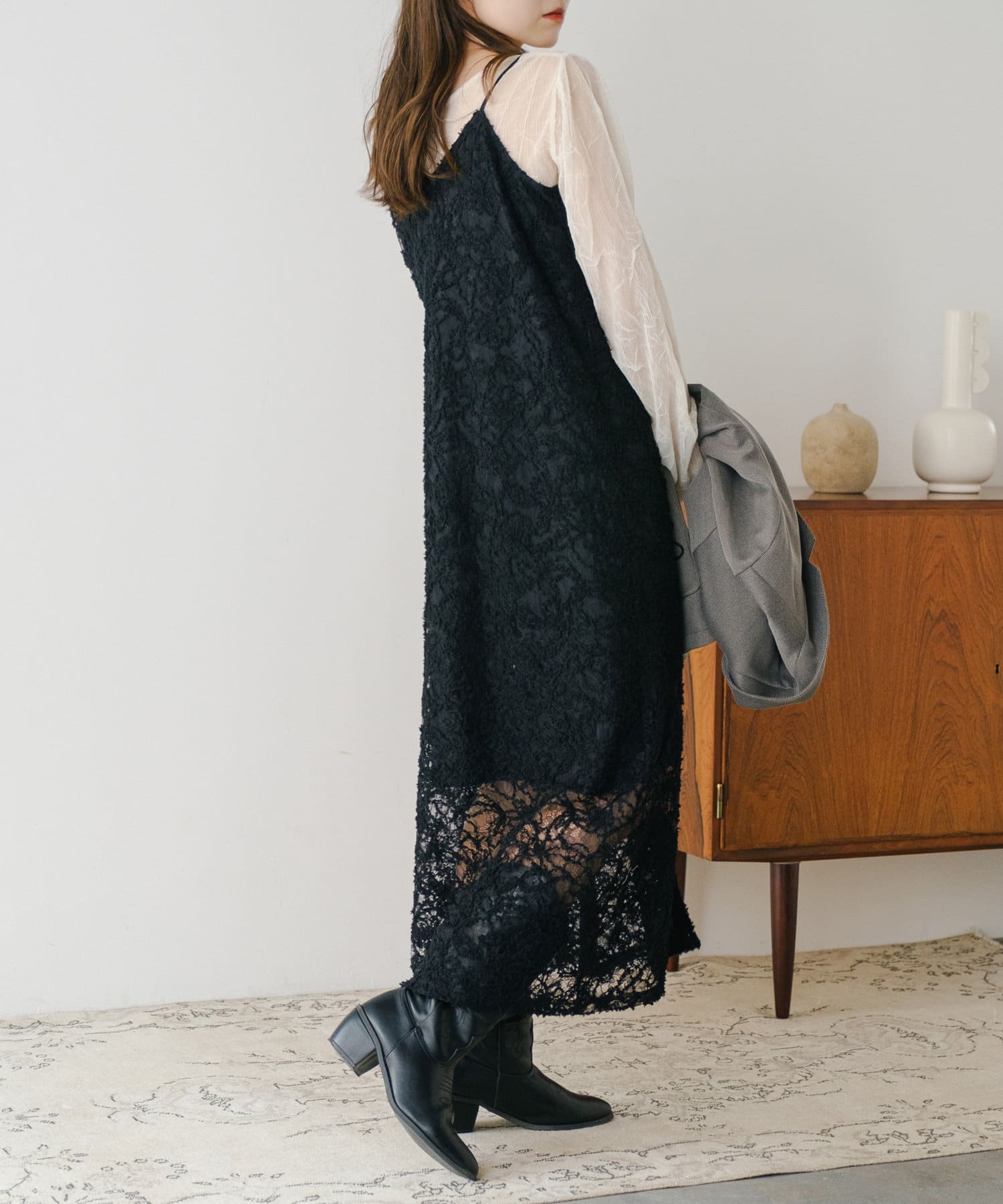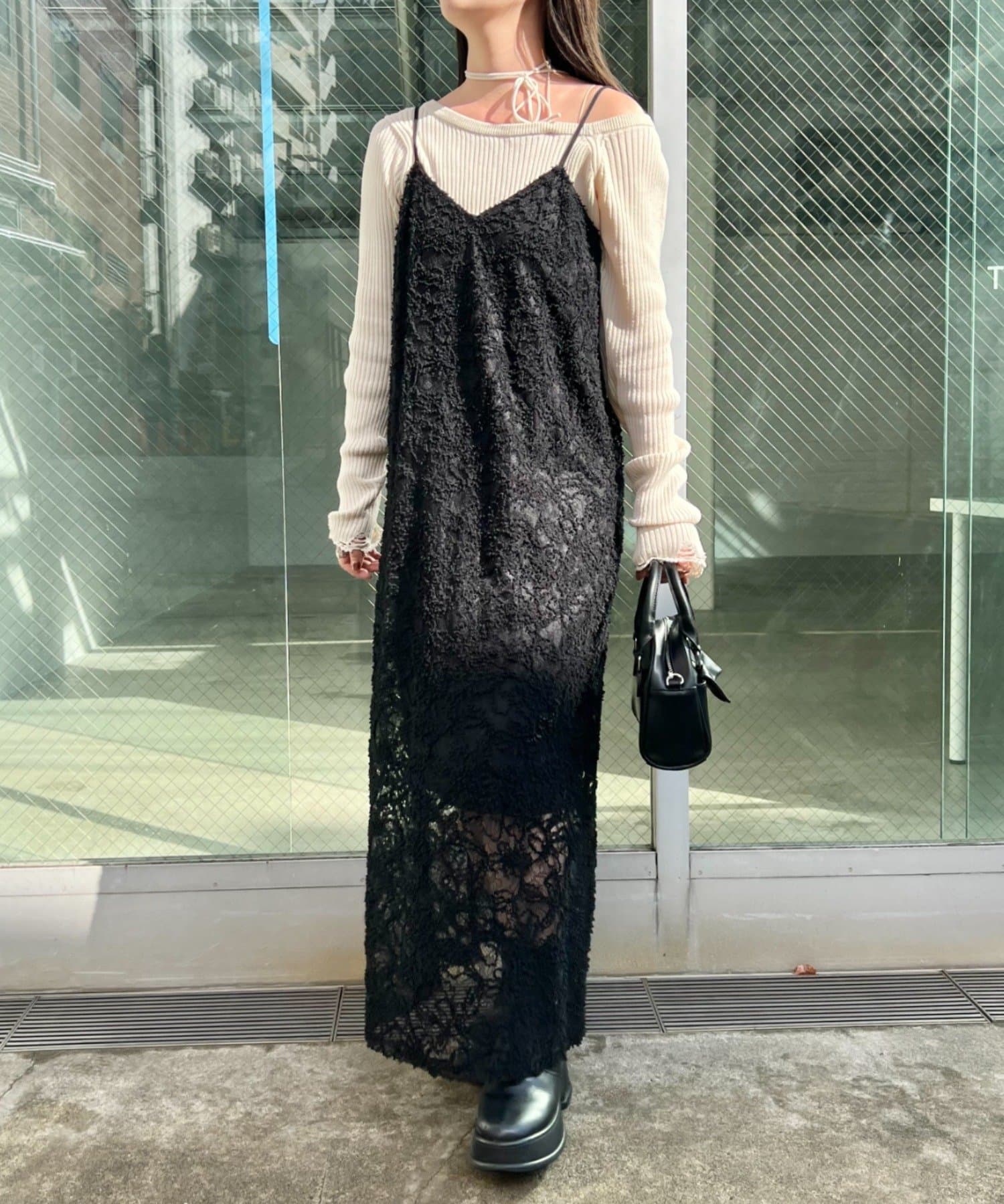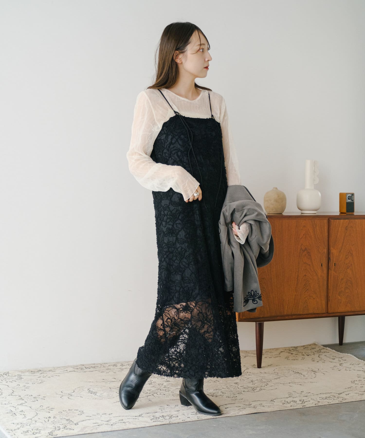 落ち感のあるシルエットで、大人なレースが魅力のワンピース。