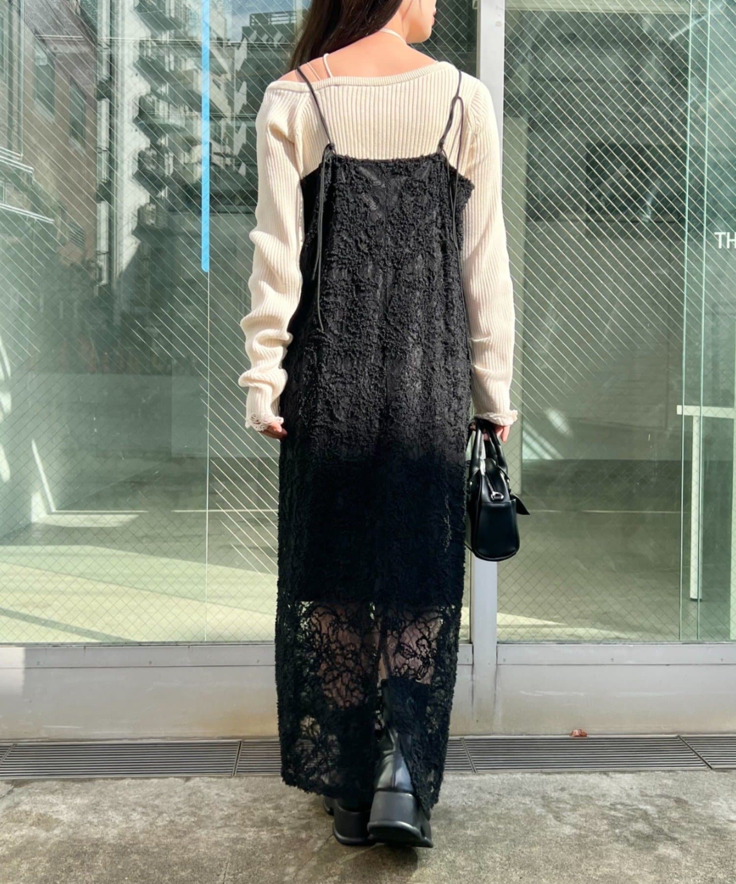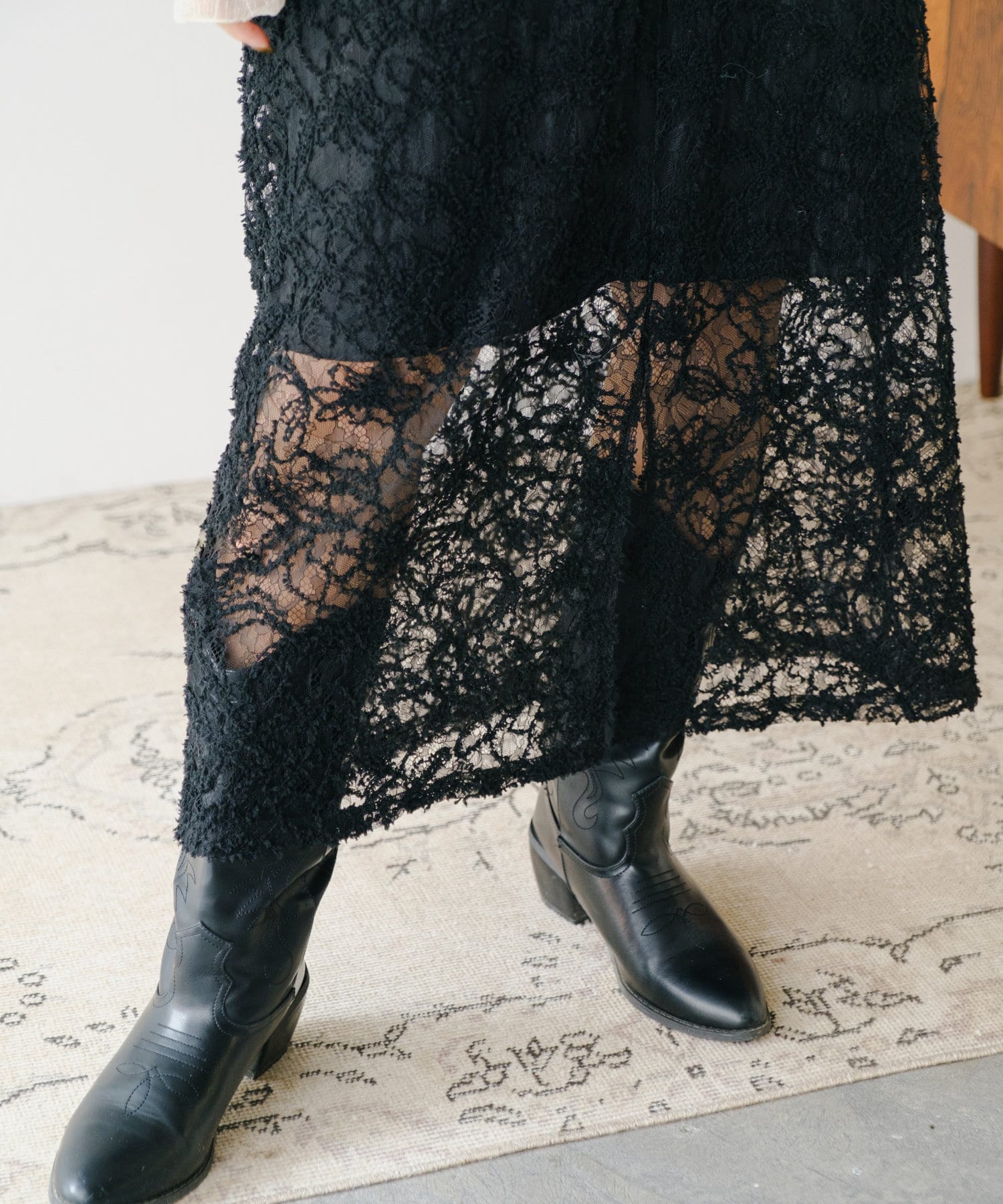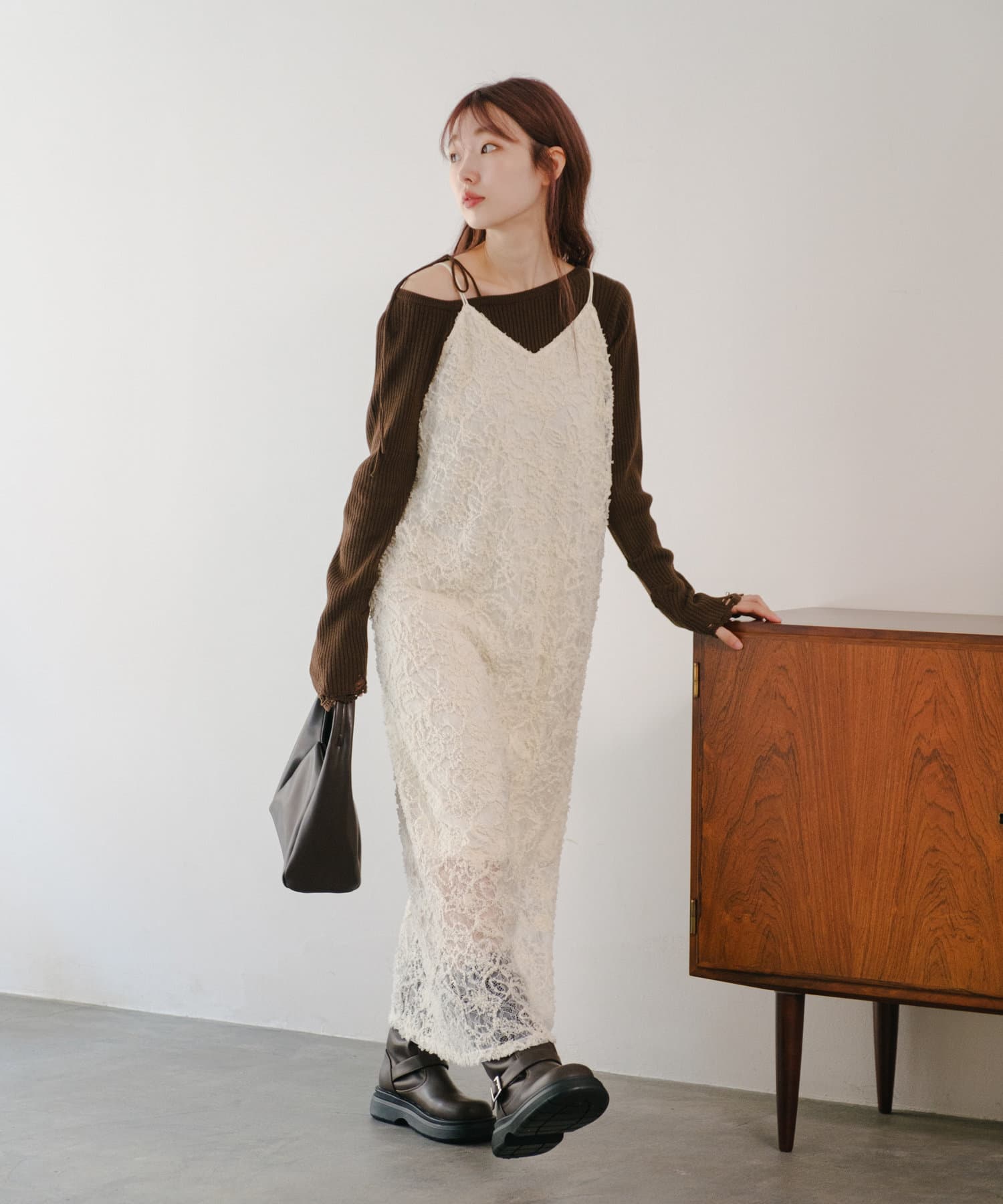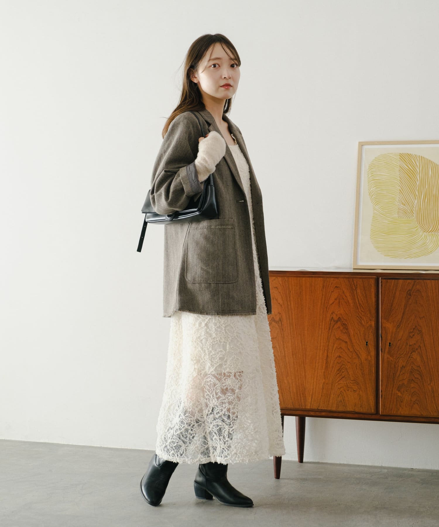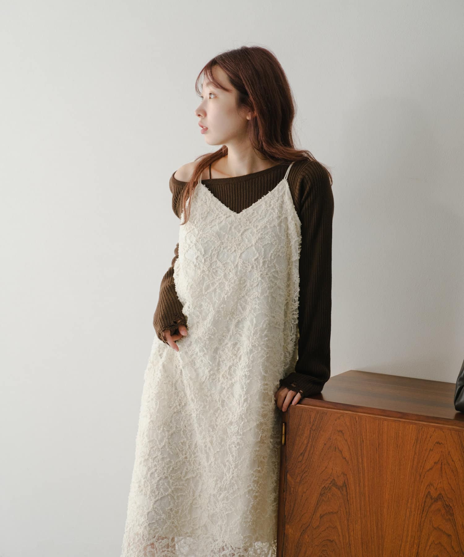 落ち感のあるシルエットで、大人なレースが魅力のワンピース。