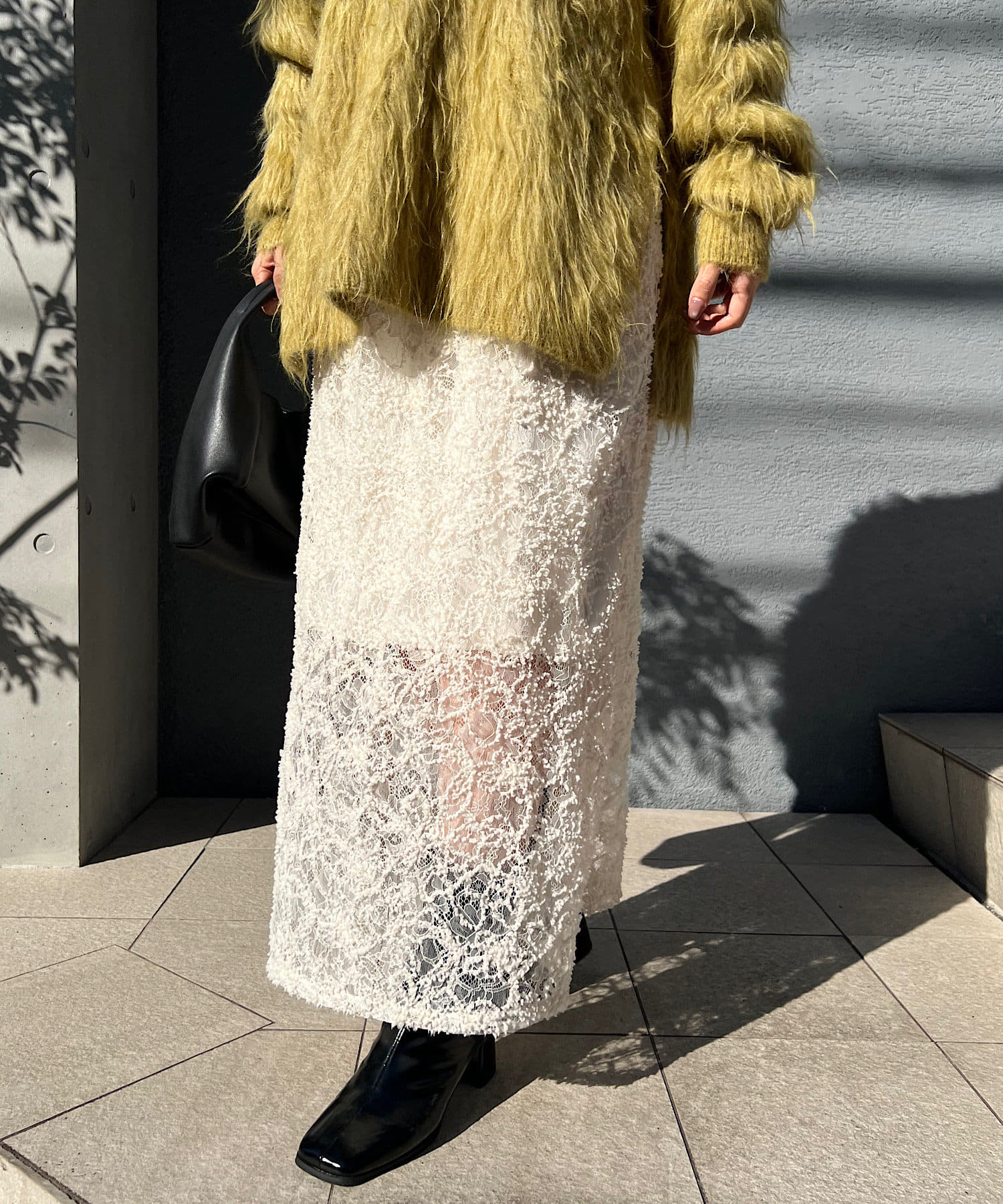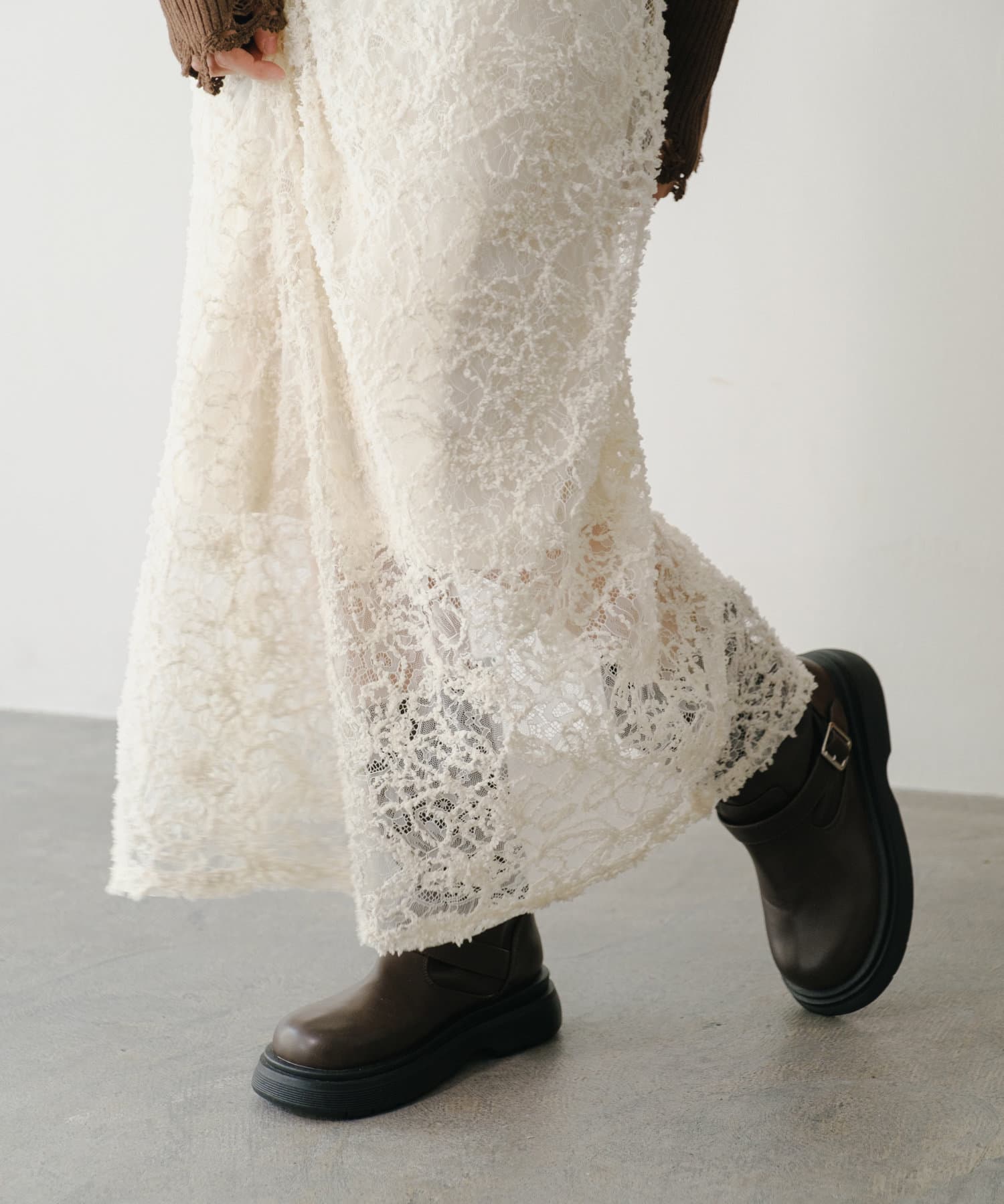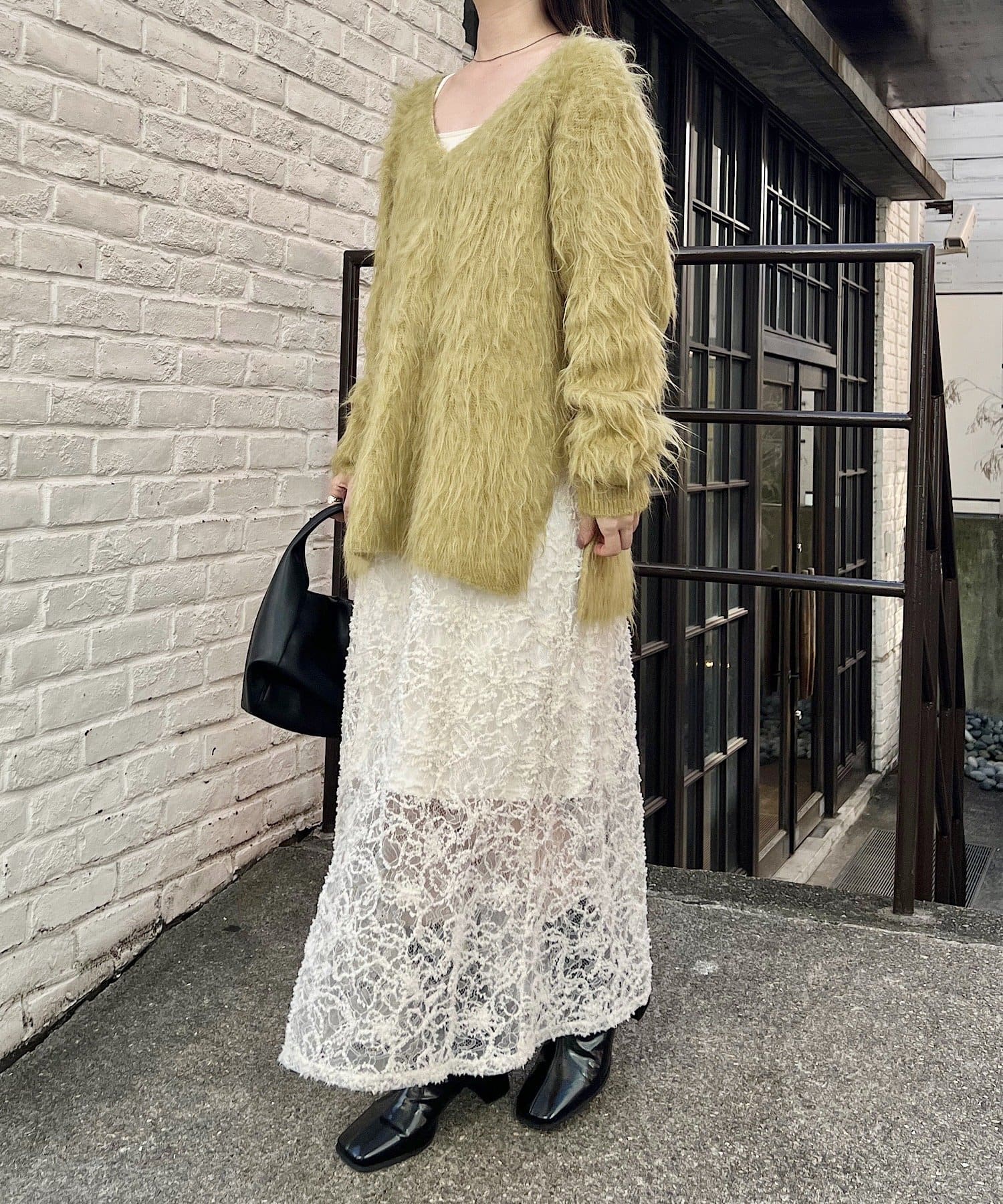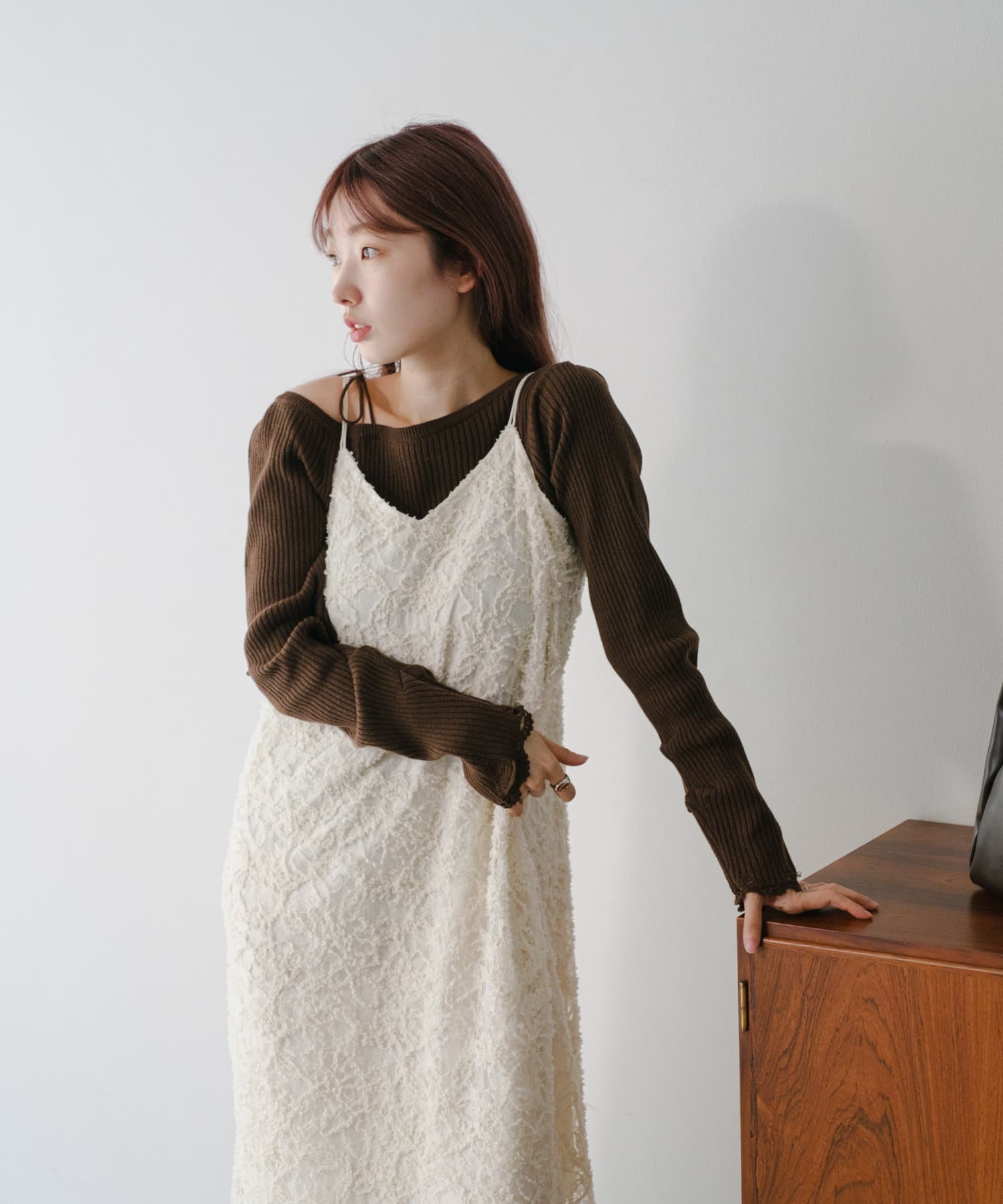 落ち感のあるシルエットで、大人なレースが魅力のワンピース。
