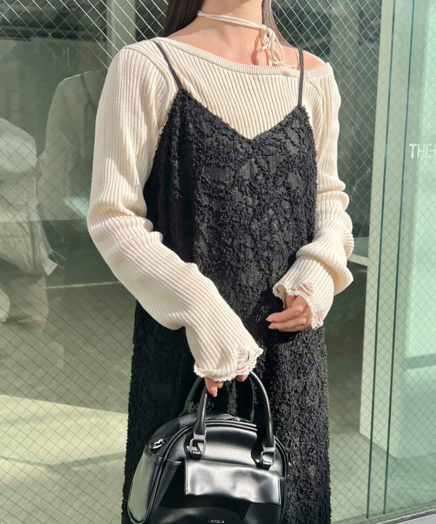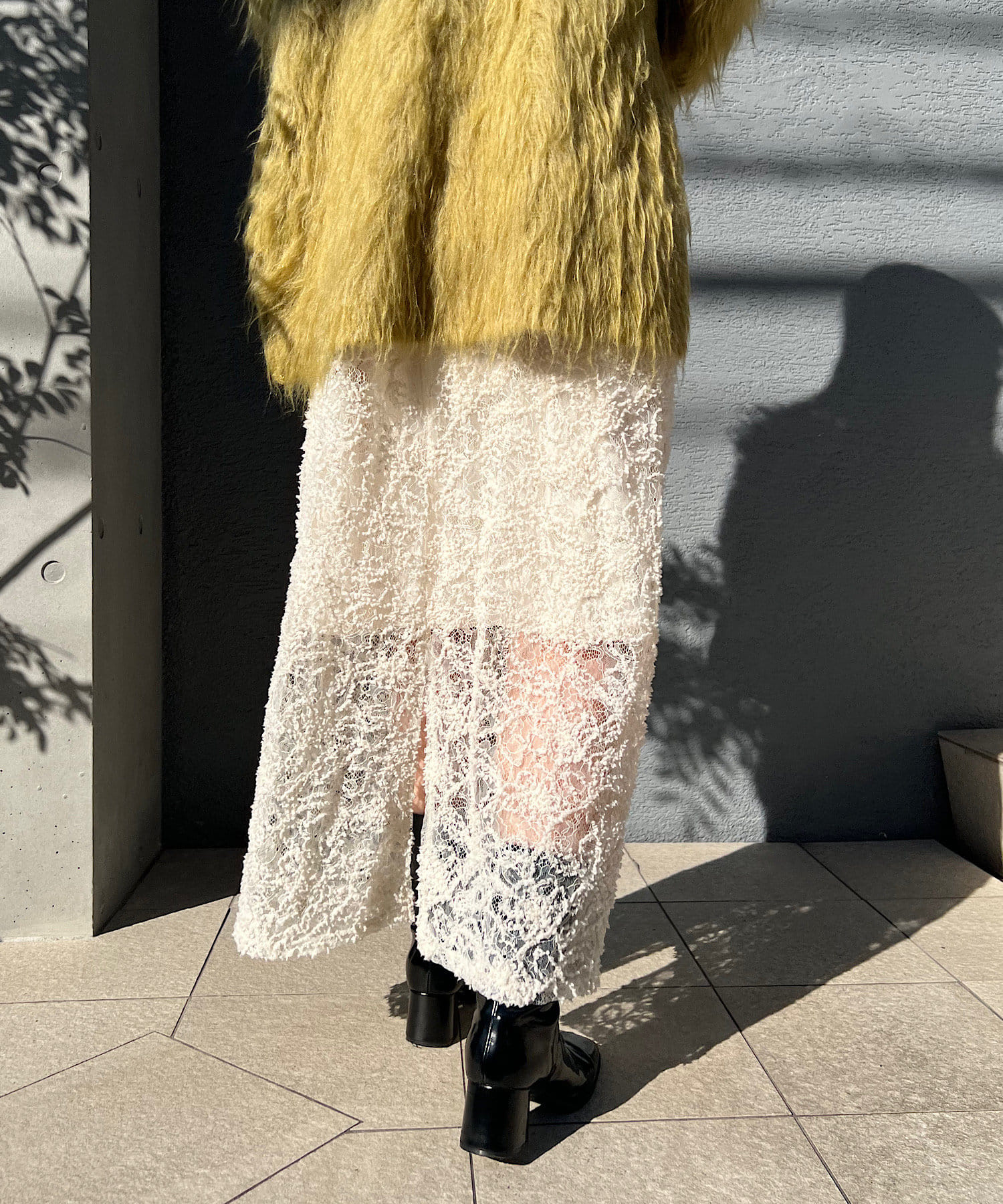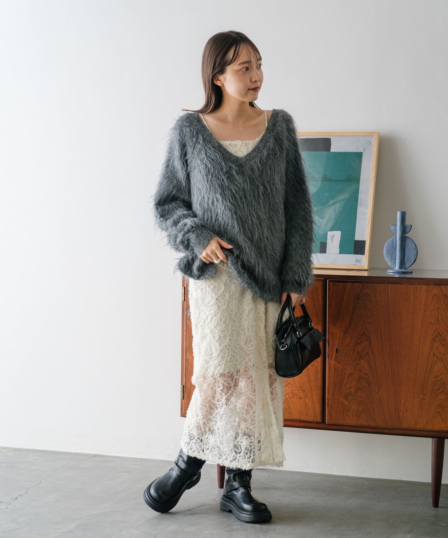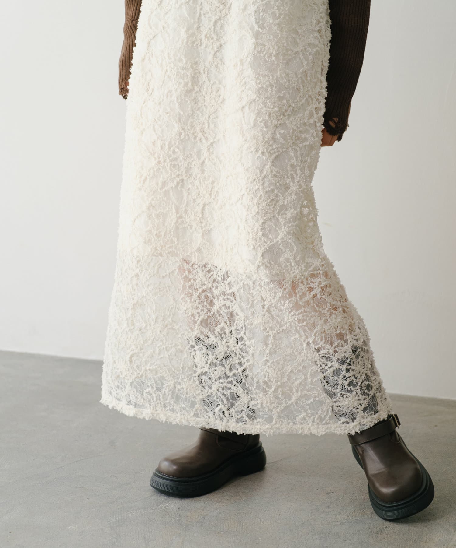 落ち感のあるシルエットで、大人なレースが魅力のワンピース。