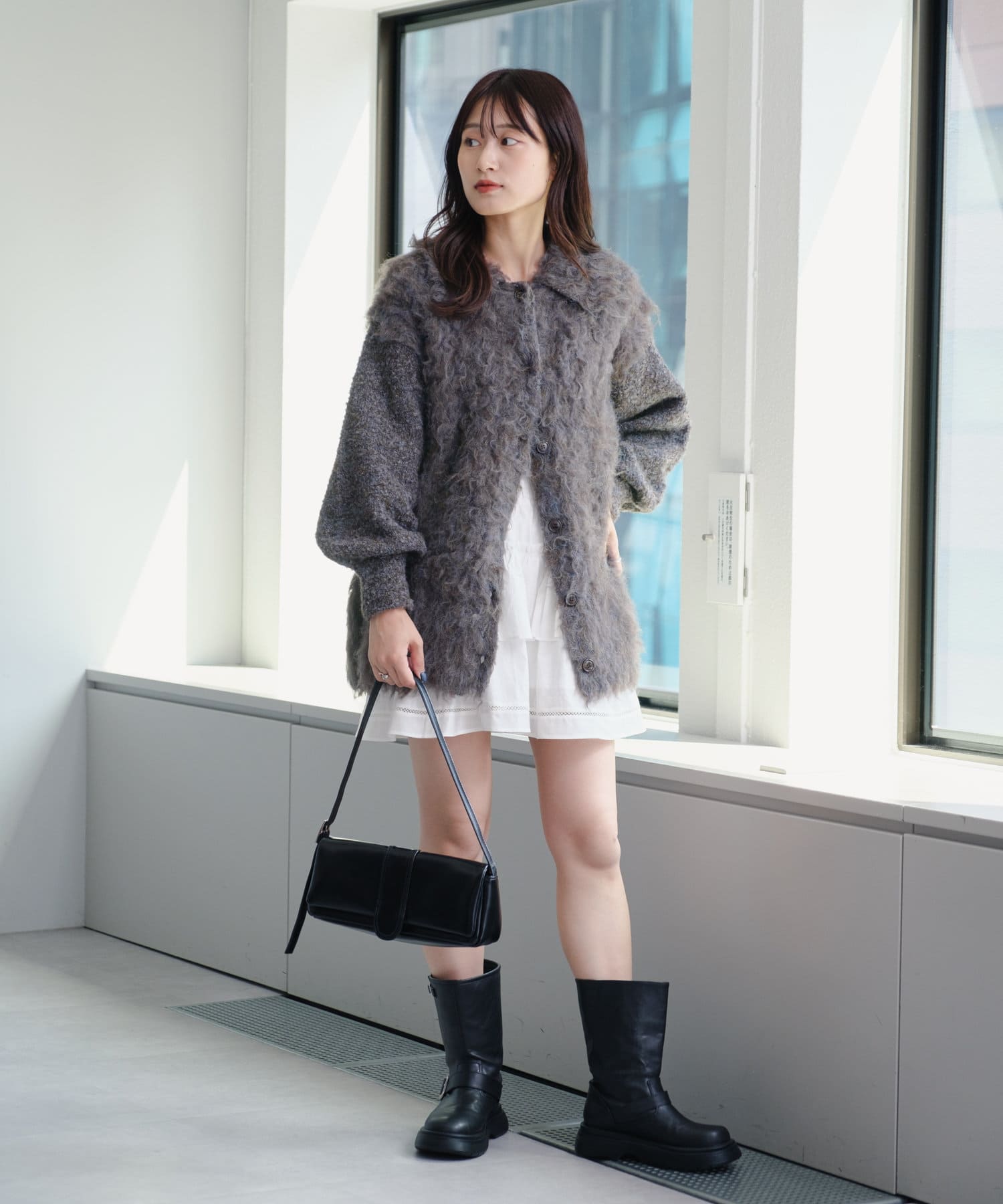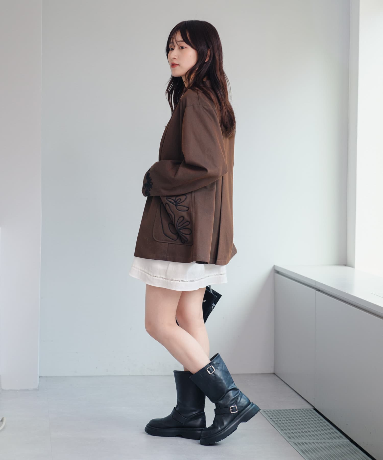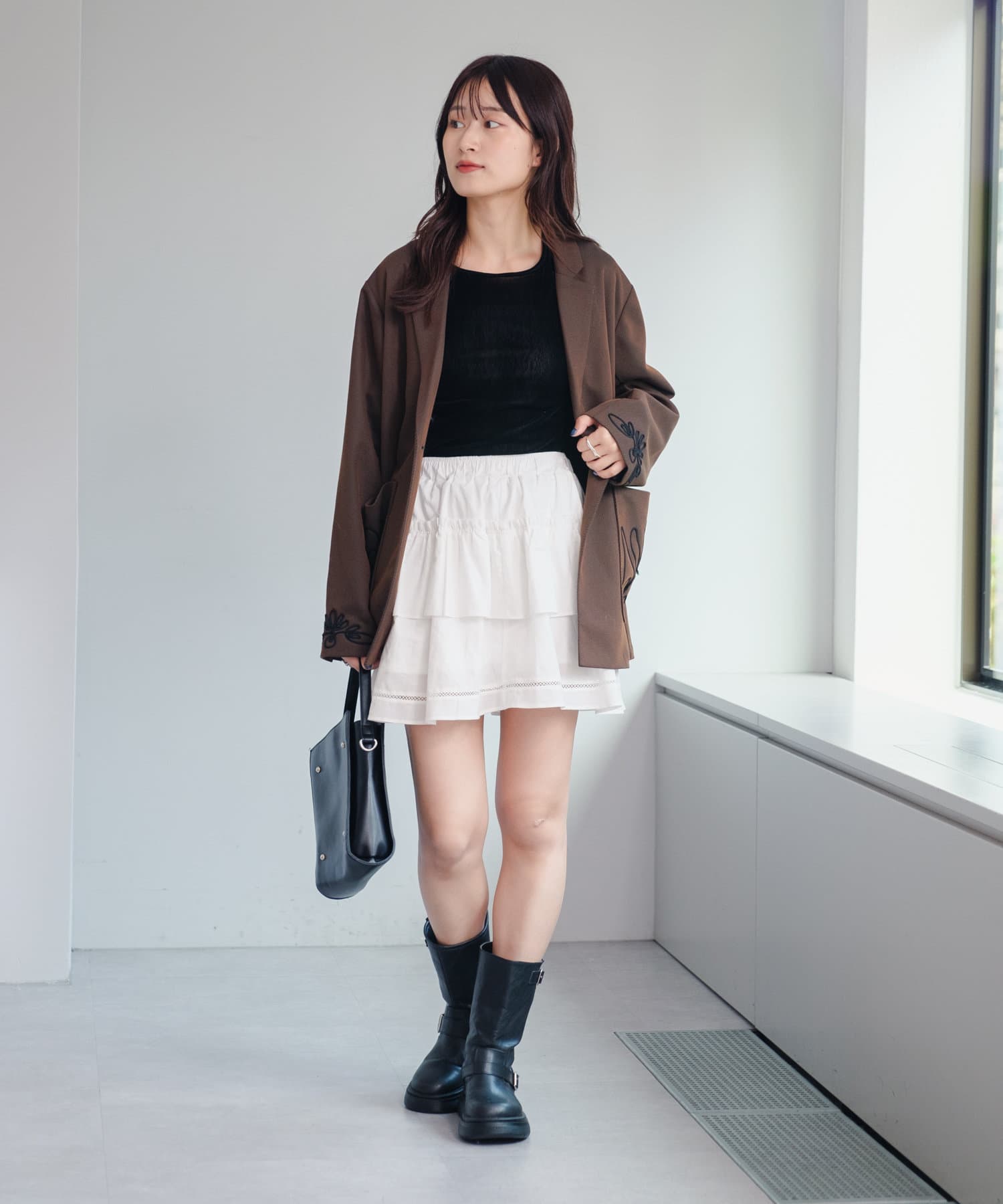 甘めなデザインなので、トップスやアウターを少しクールにすると全体のバランスが取りやすいです。