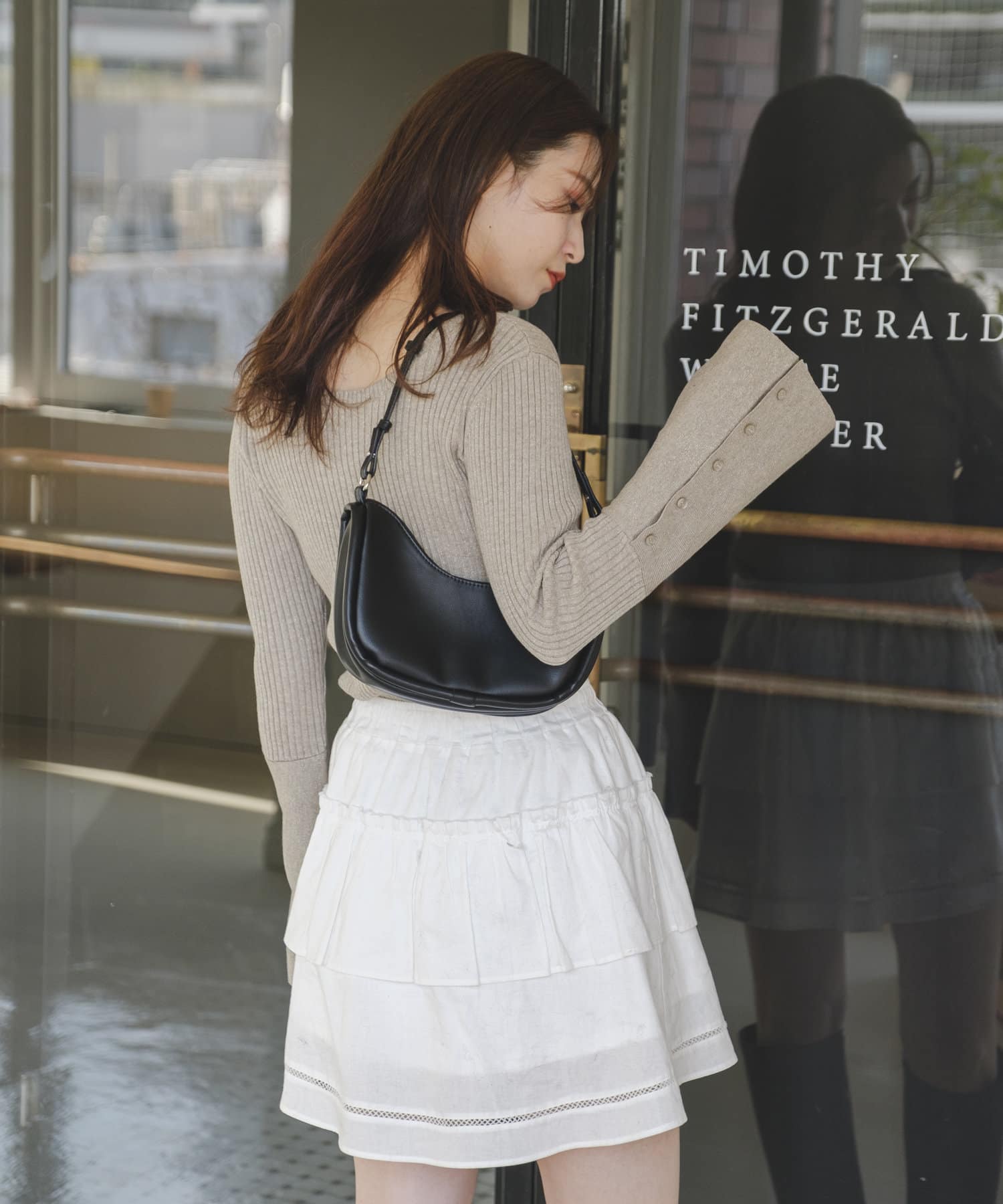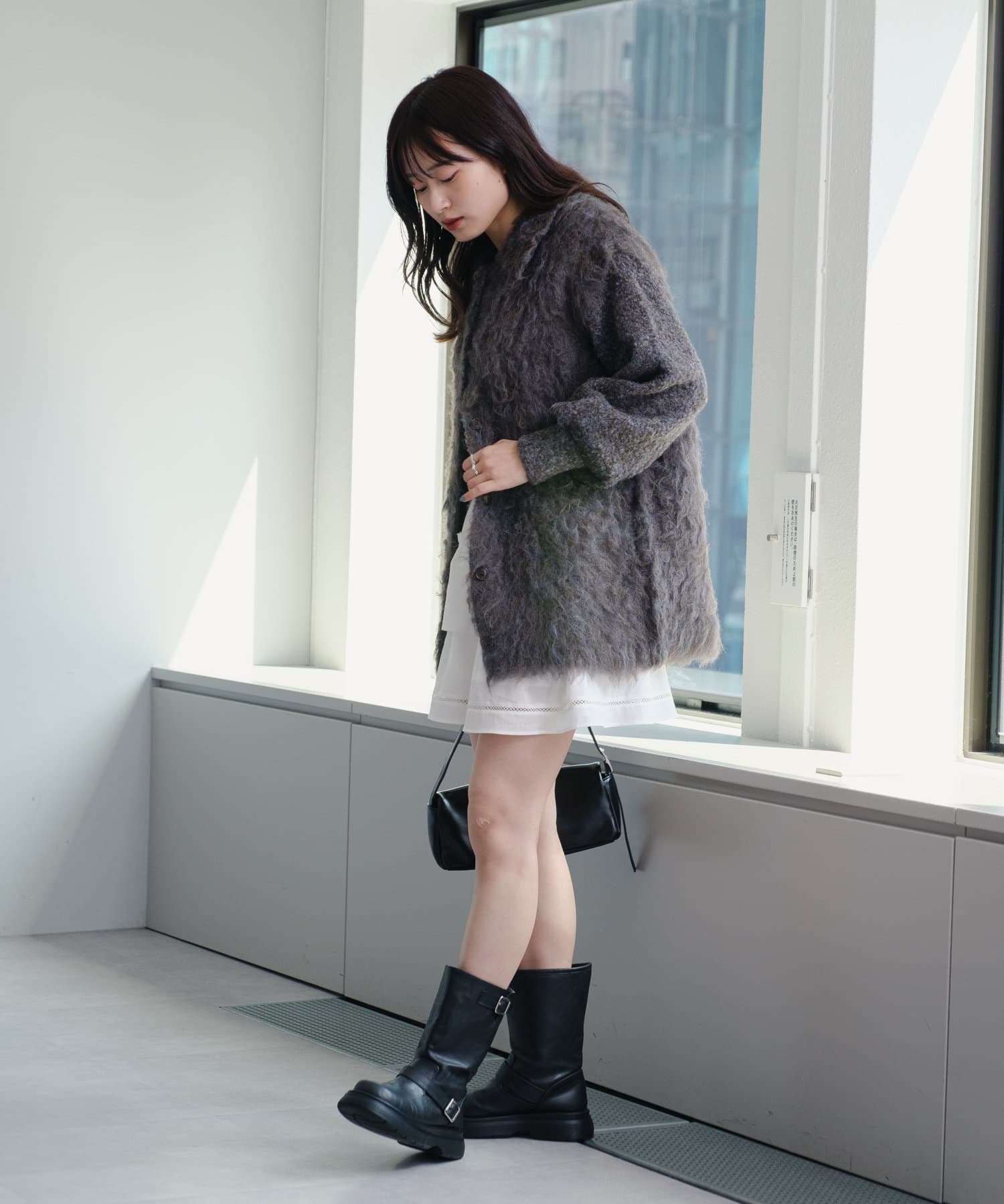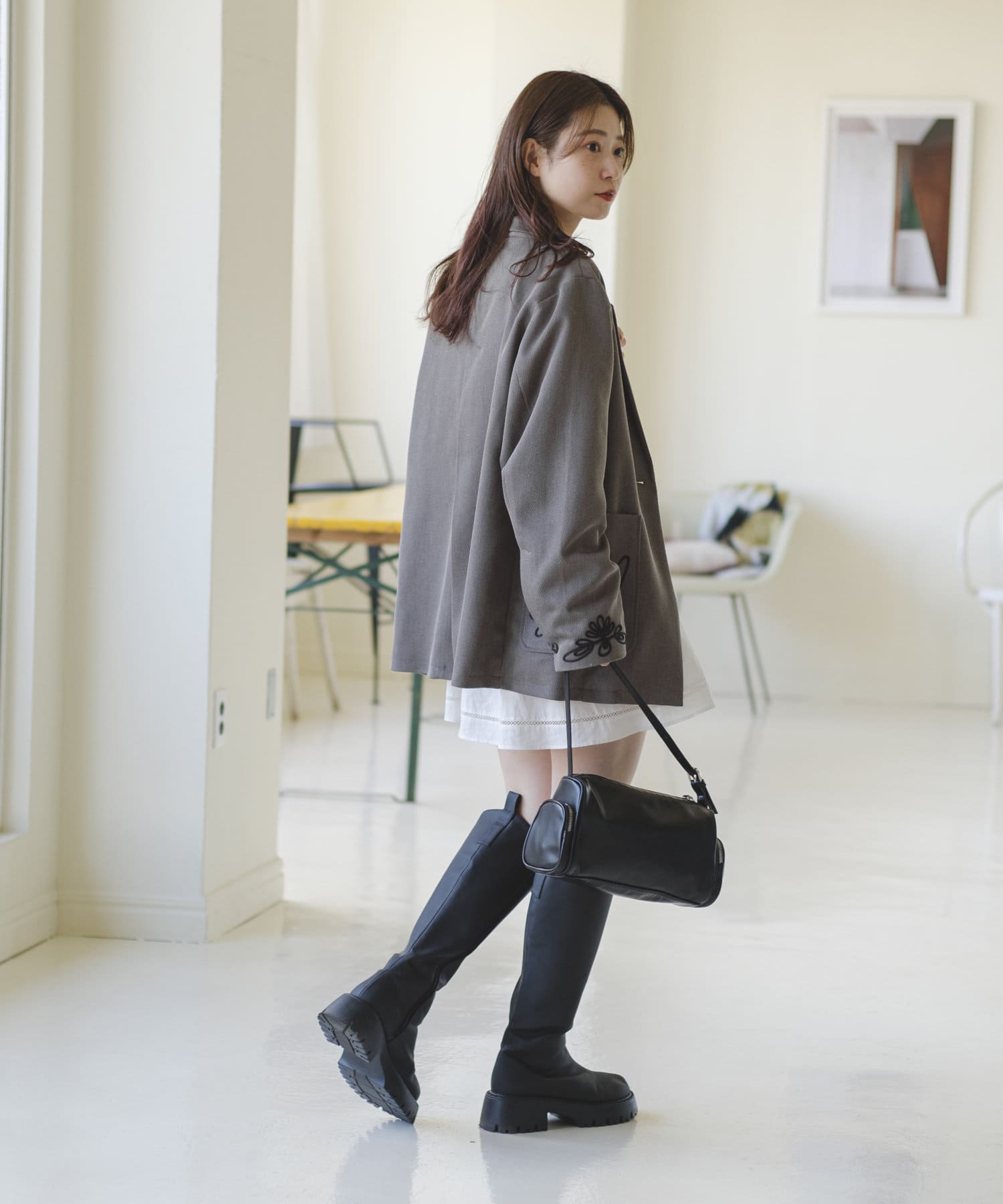 甘めなデザインなので、トップスやアウターを少しクールにすると全体のバランスが取りやすいです。