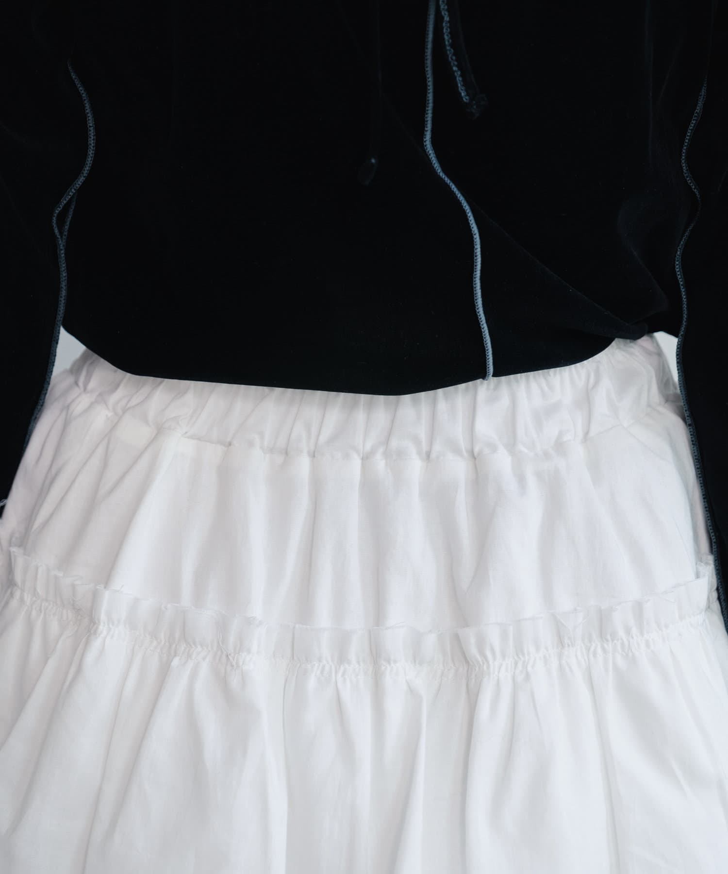 程よい厚みがあり、しっかりとした生地感があるため、型崩れしにくく、フリルのボリューム感も綺麗に保たれます。