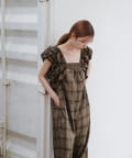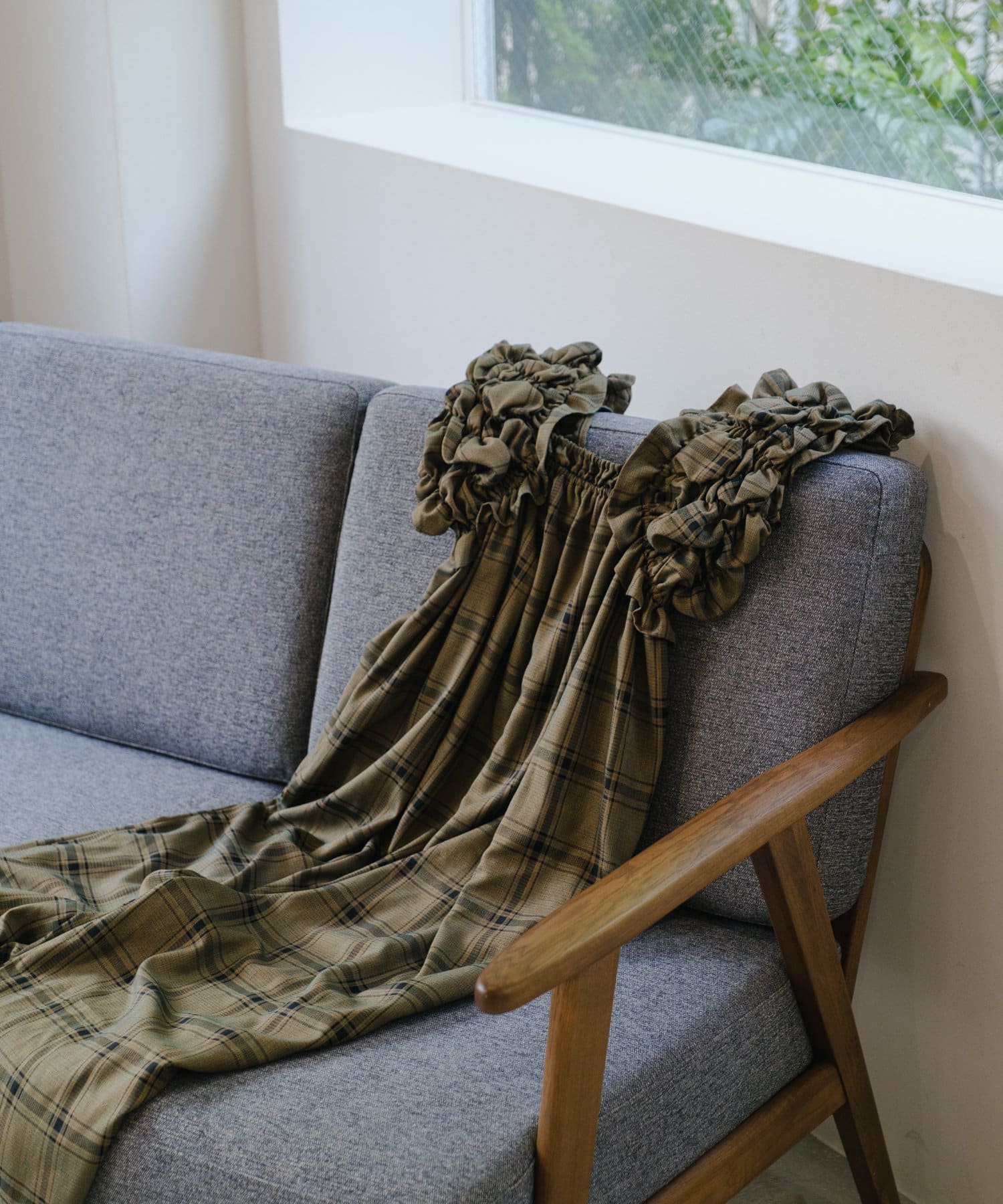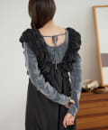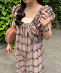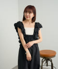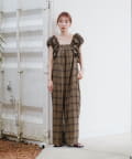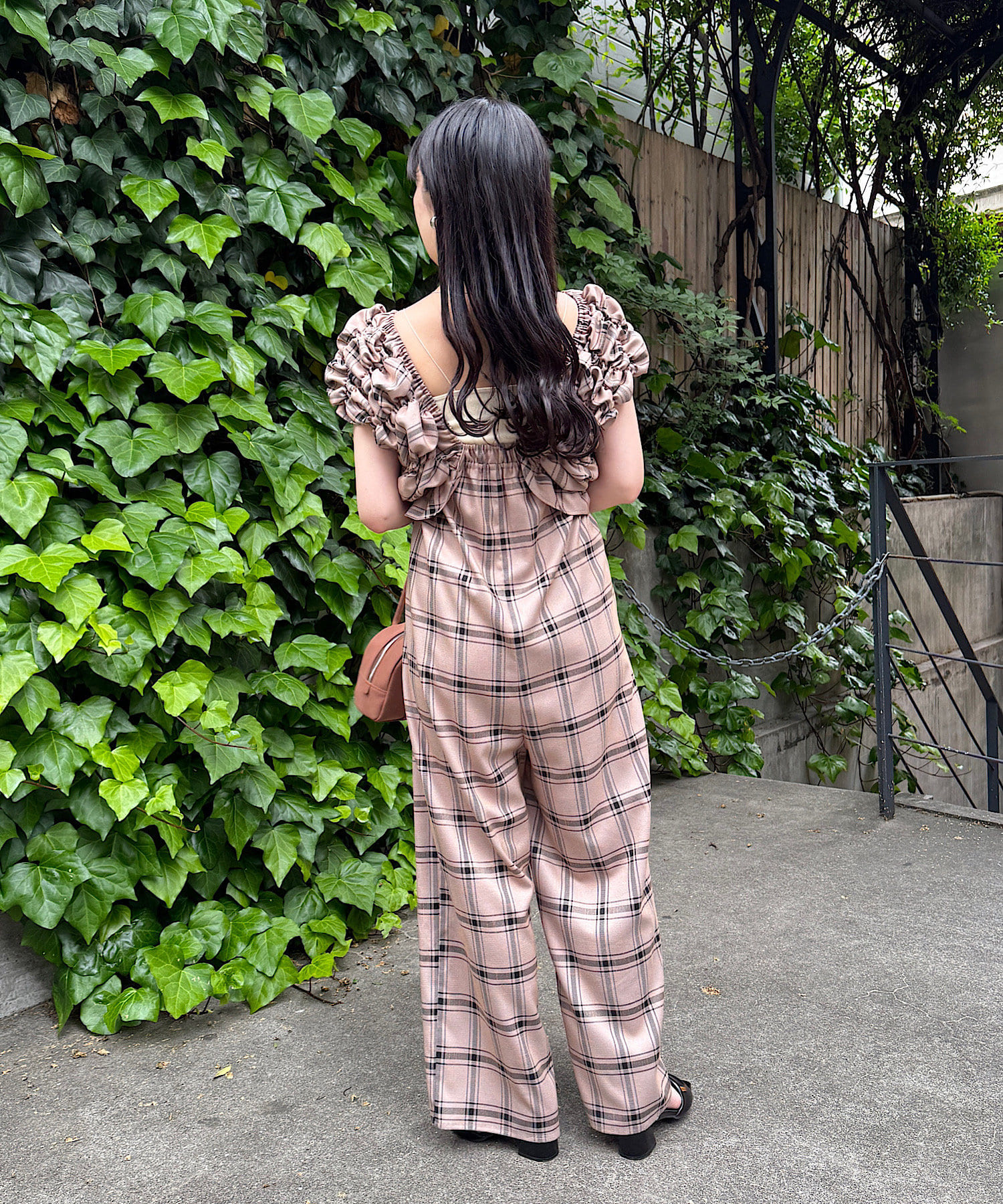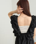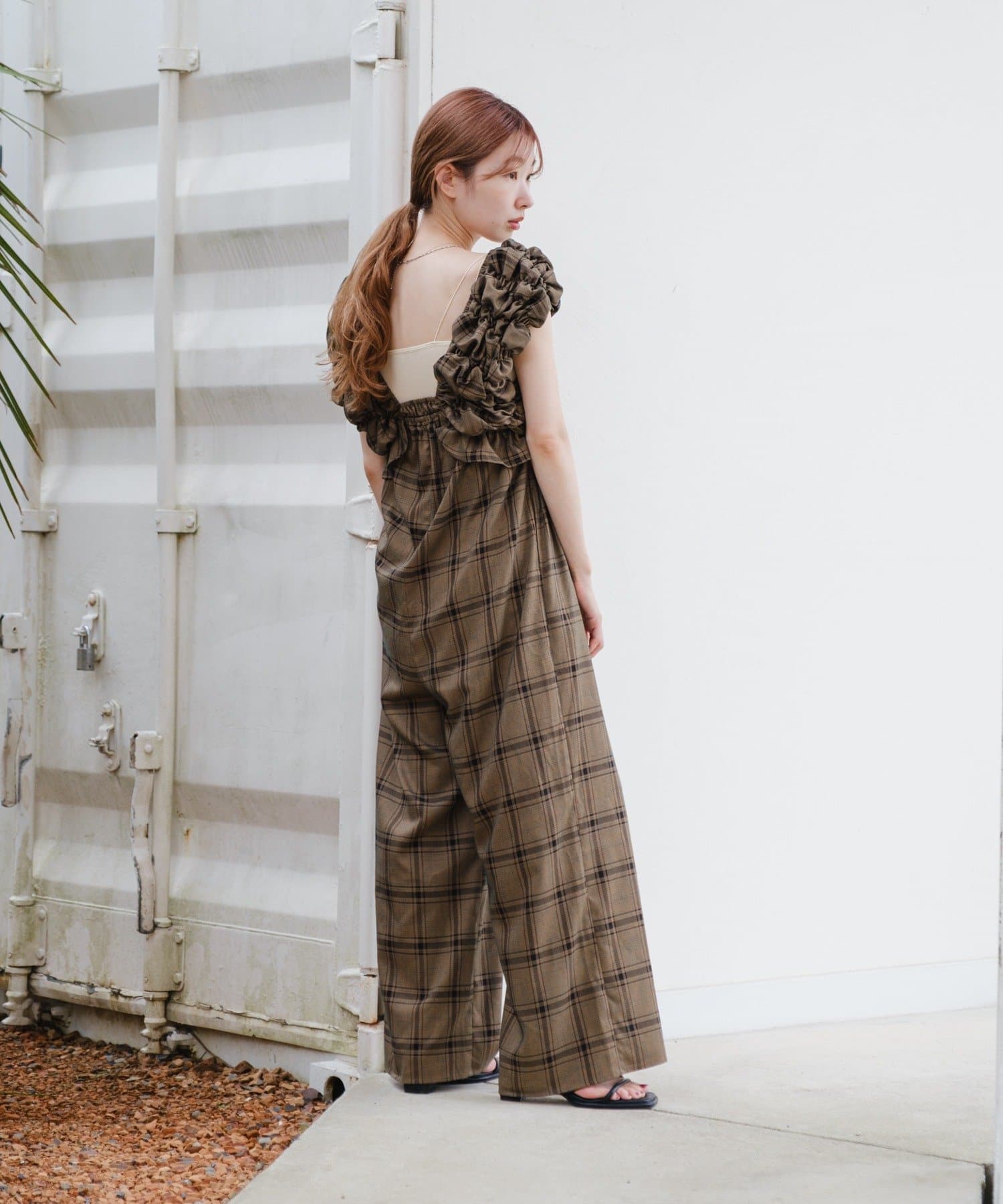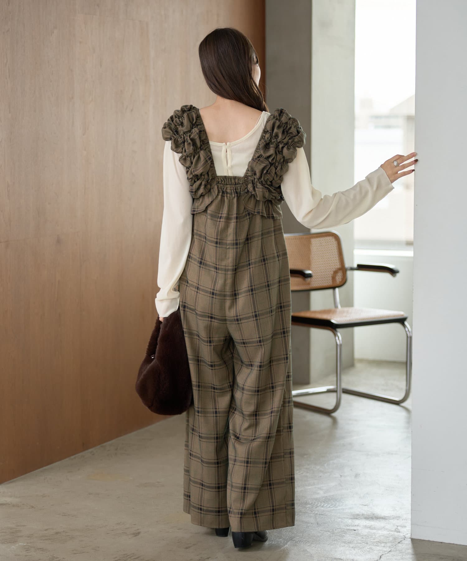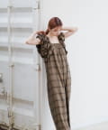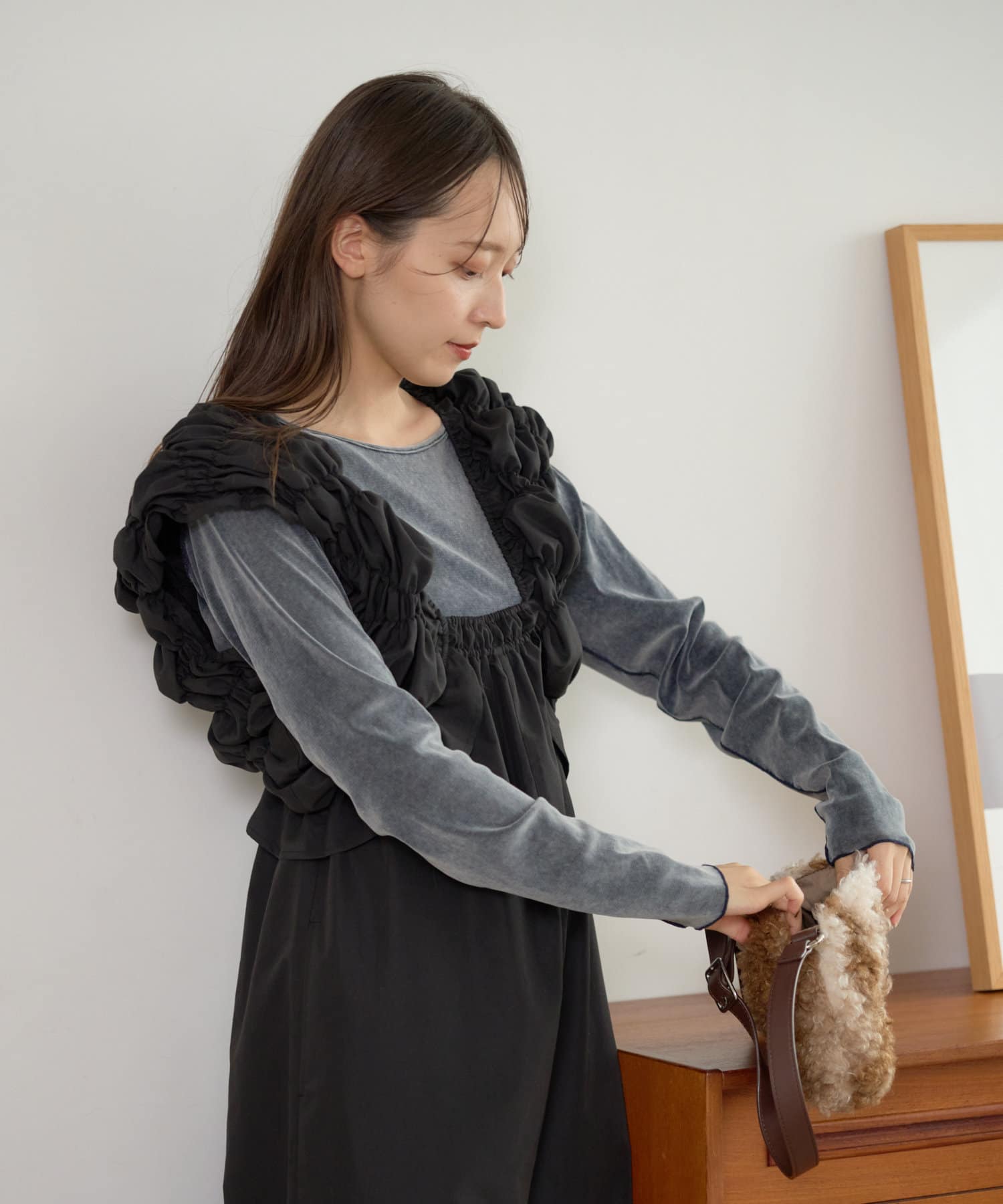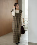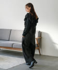 肩のボリューム感が目を惹くシャーリングギャザーサロペ。