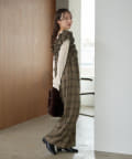 インナーにタイトなトップスを合わせることで、サロペットのボリューム感を引き立たせることができます。