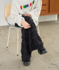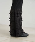 裾にたっぷり施されたフリルデザインが、歩くたびに軽やかに揺れ、シンプルなトップスとの相性も抜群。