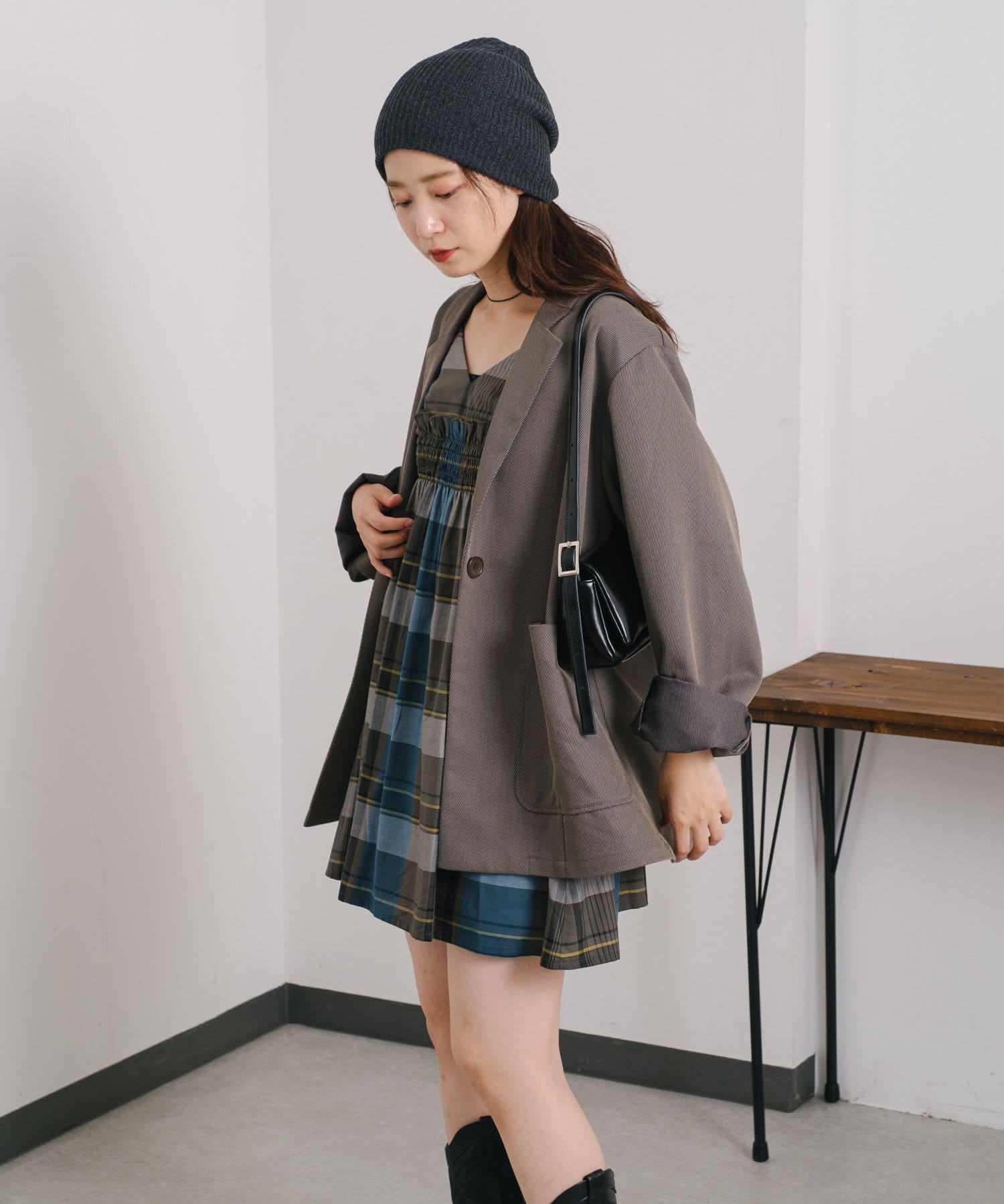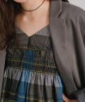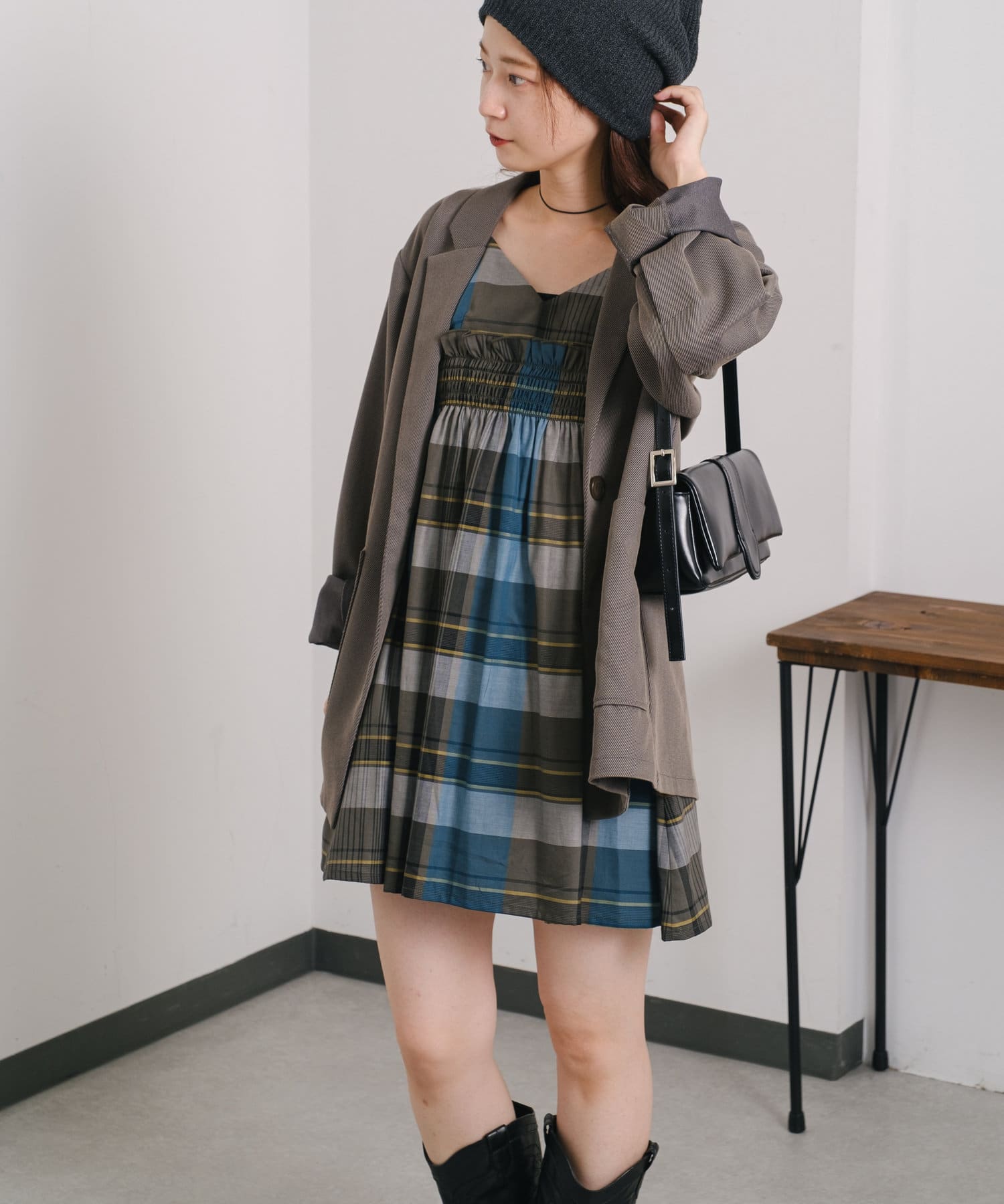 購入場所:パルクローゼット青色のチェックカラーに一目惚れして書いました。紐部分は調節可能、インナー次第でたくさん着回せそうです。