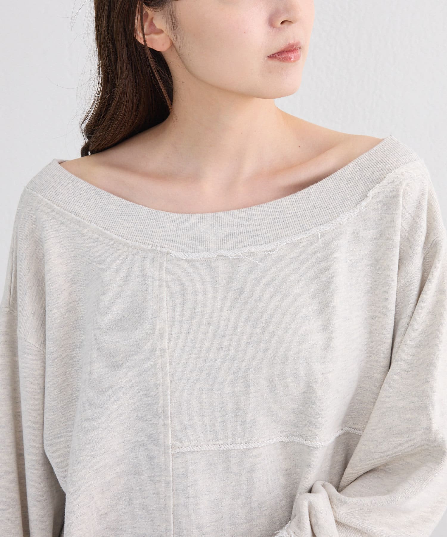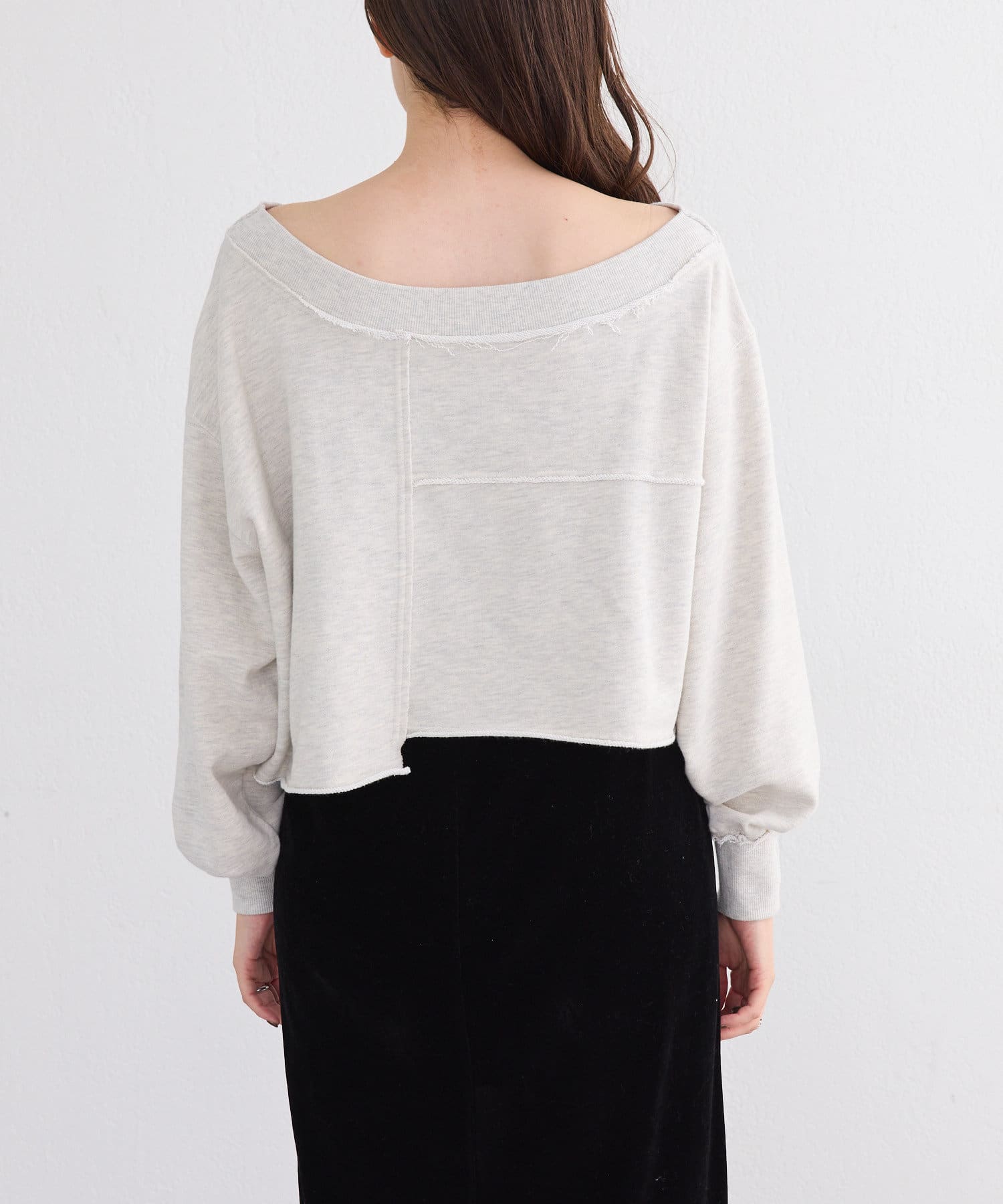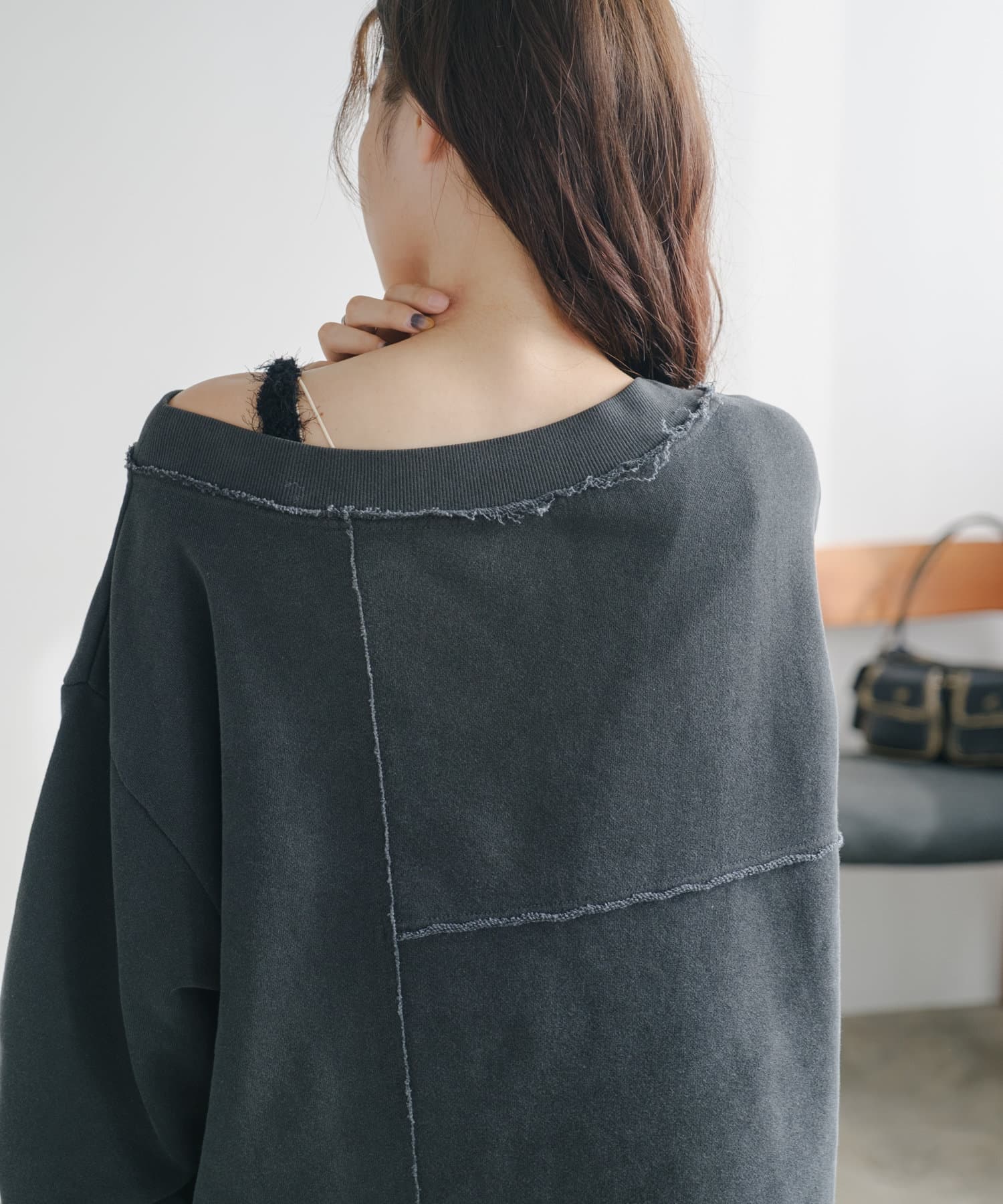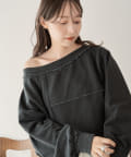 【S.Lサイズ/前後2WAY/4色展開】パッチワークオフショルスウェット