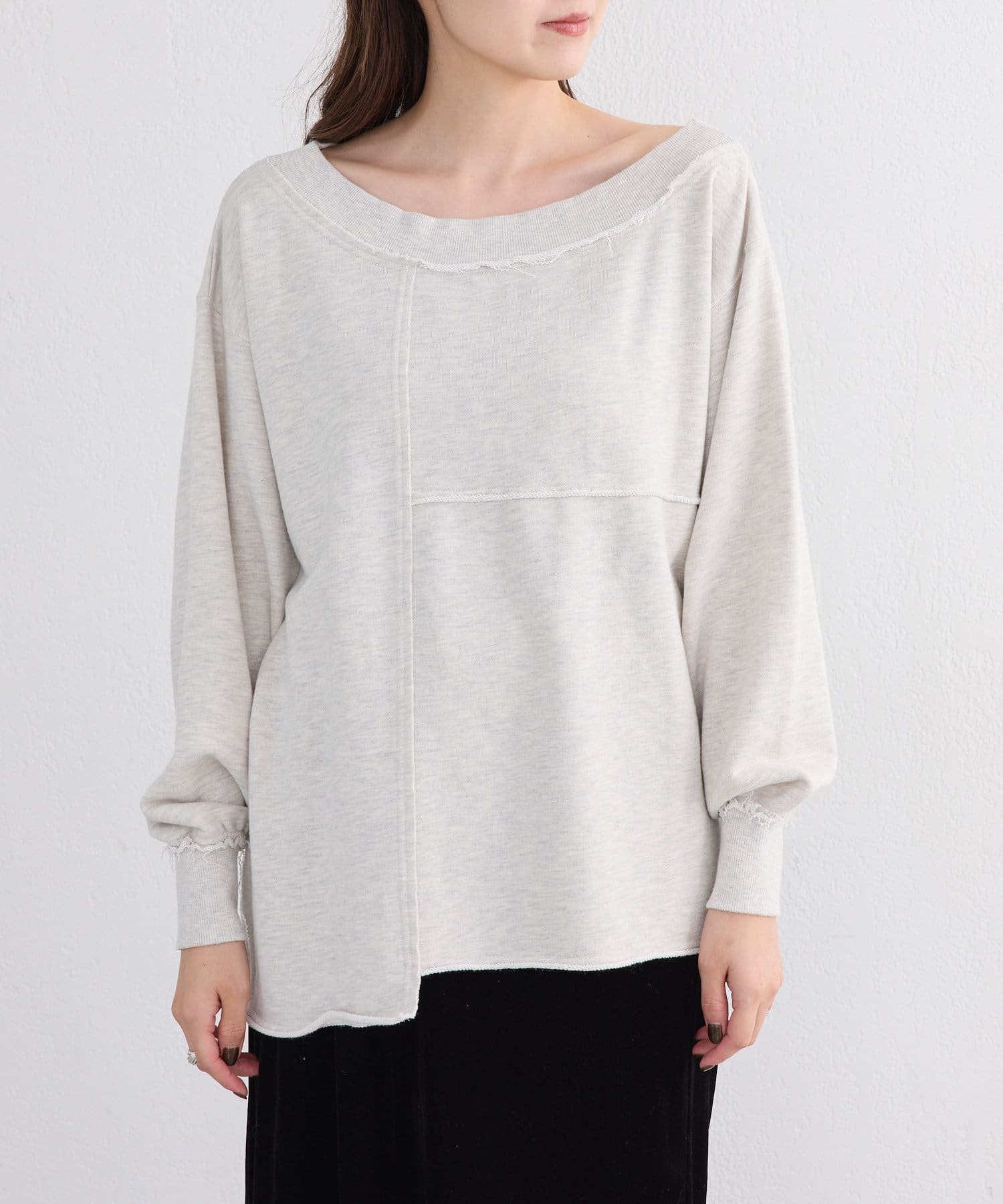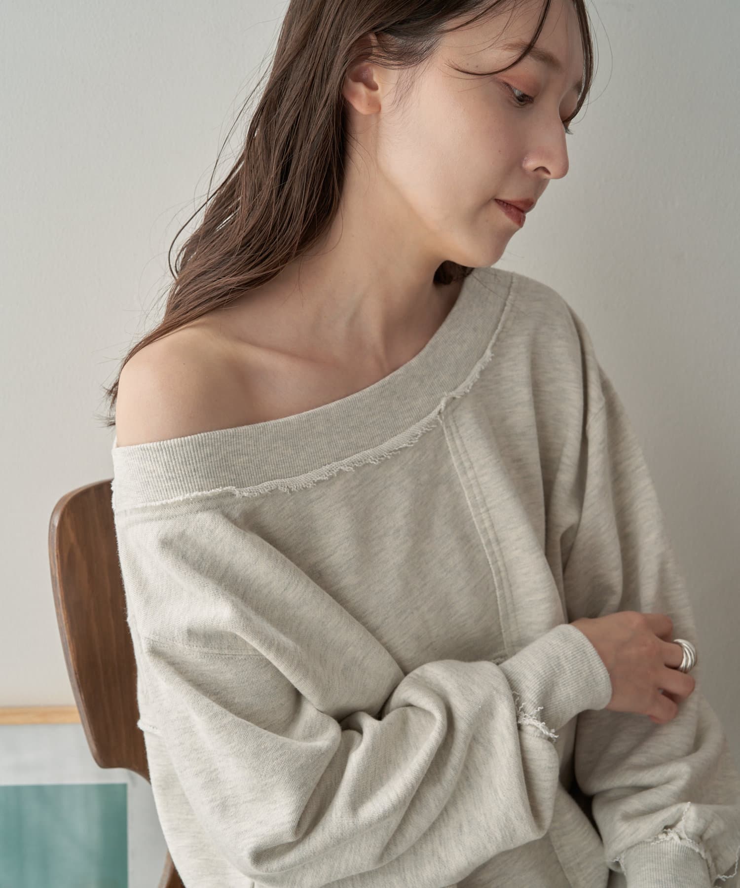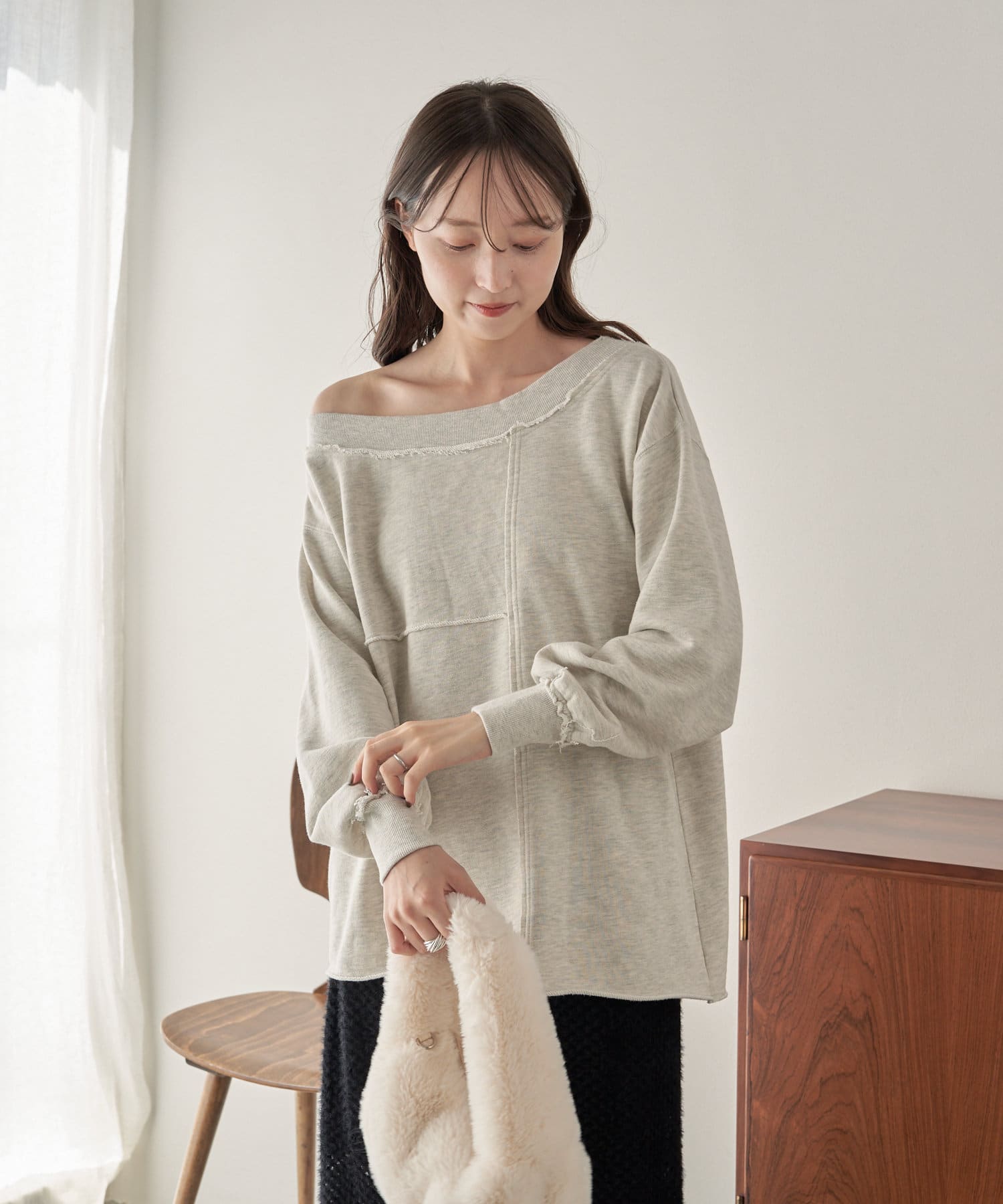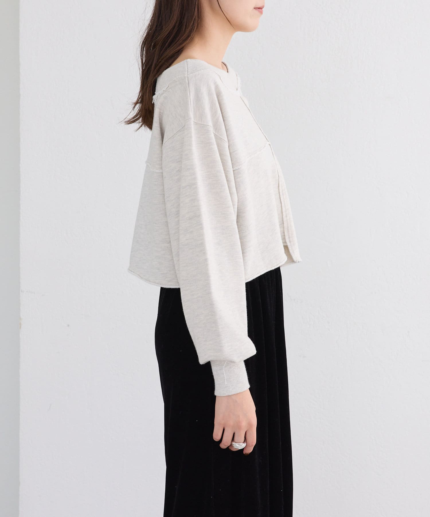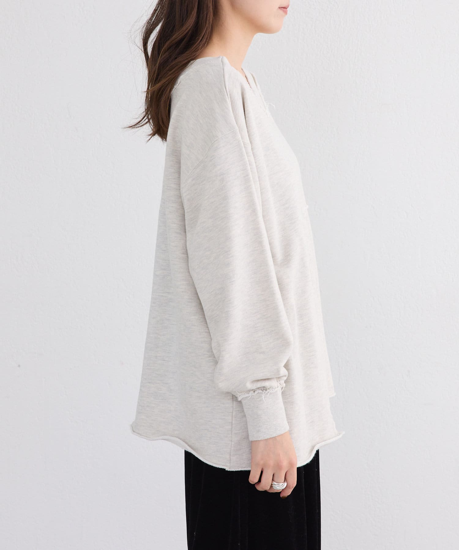 袖のたぽっと感が女性らしいスウェット。