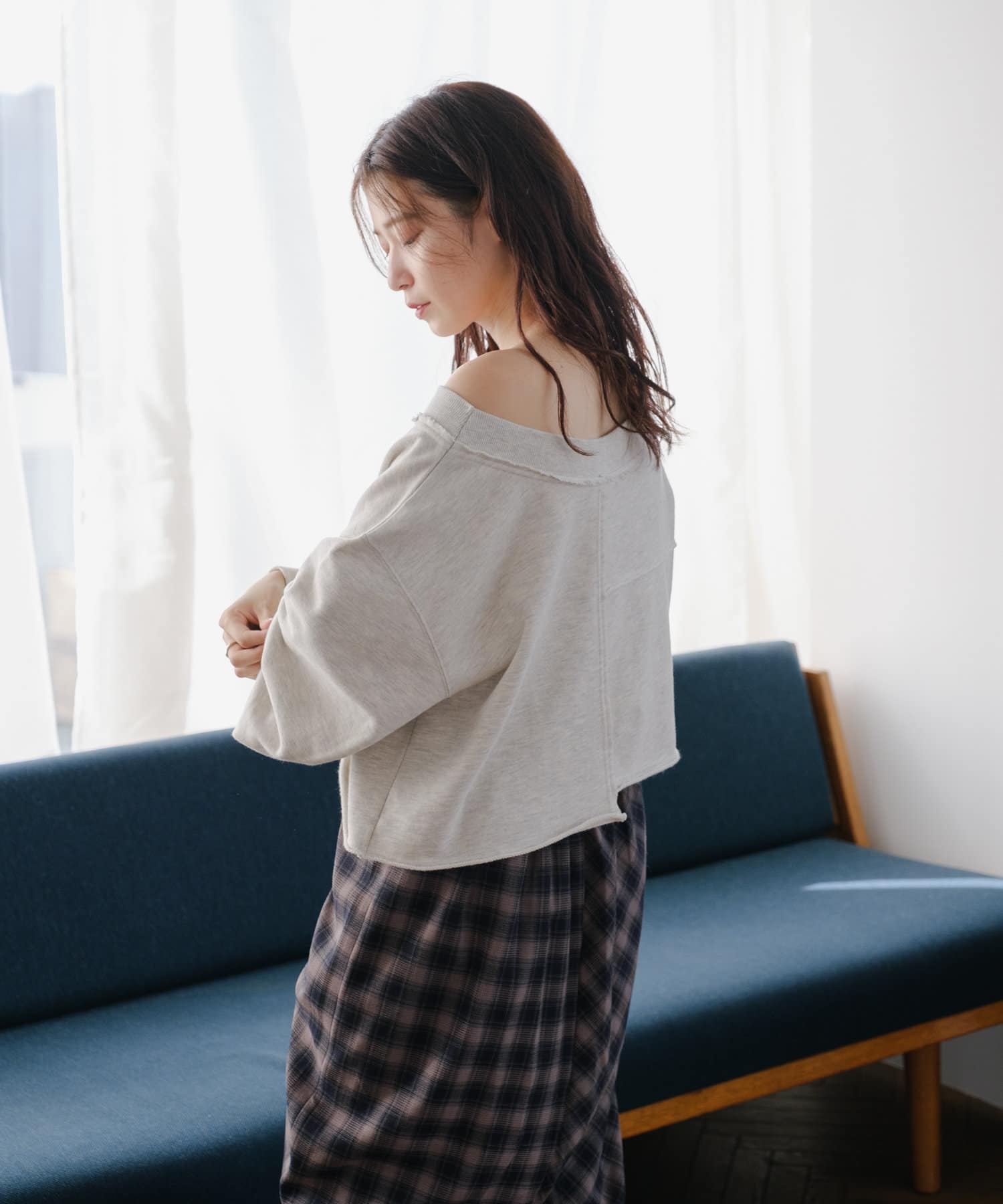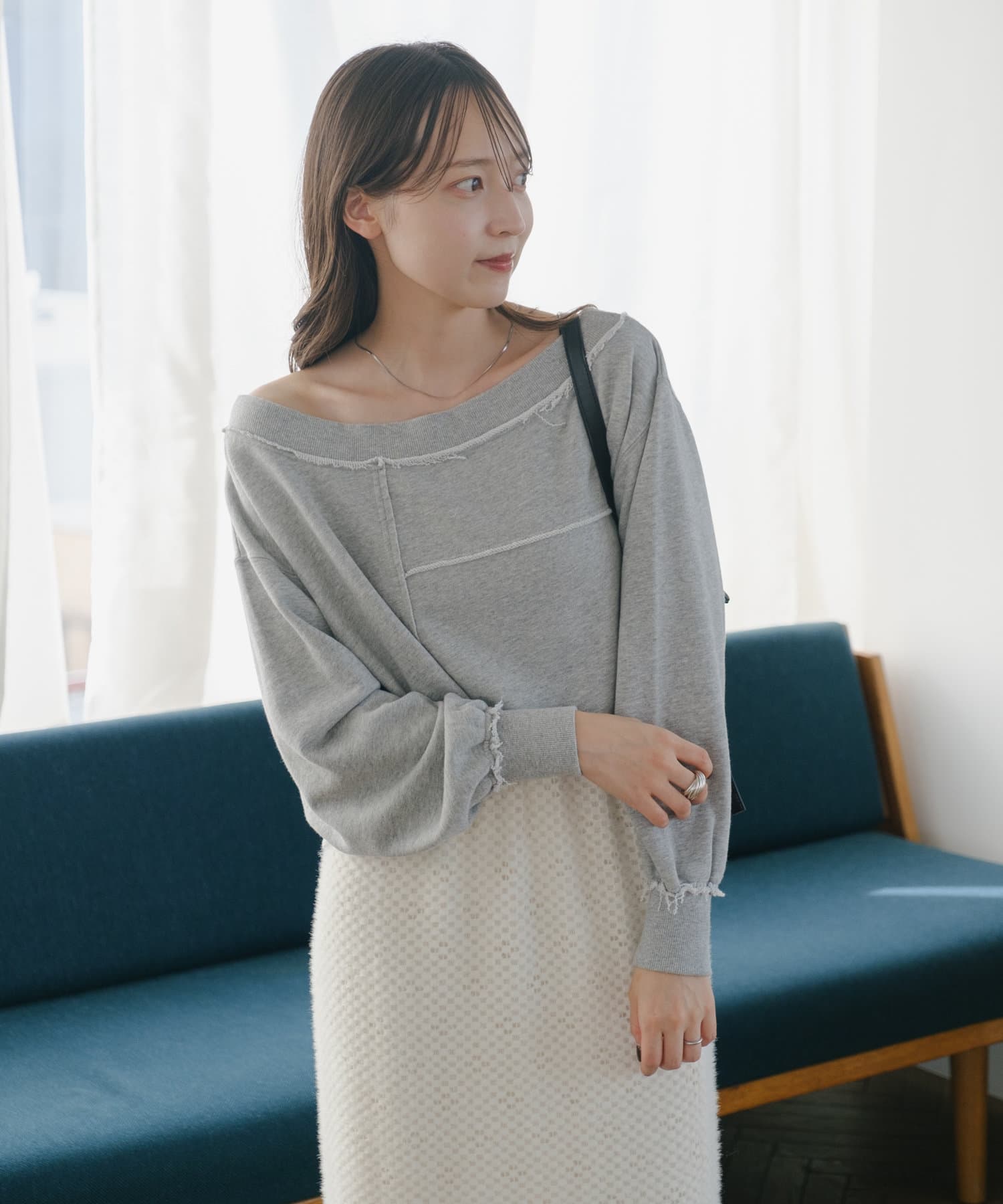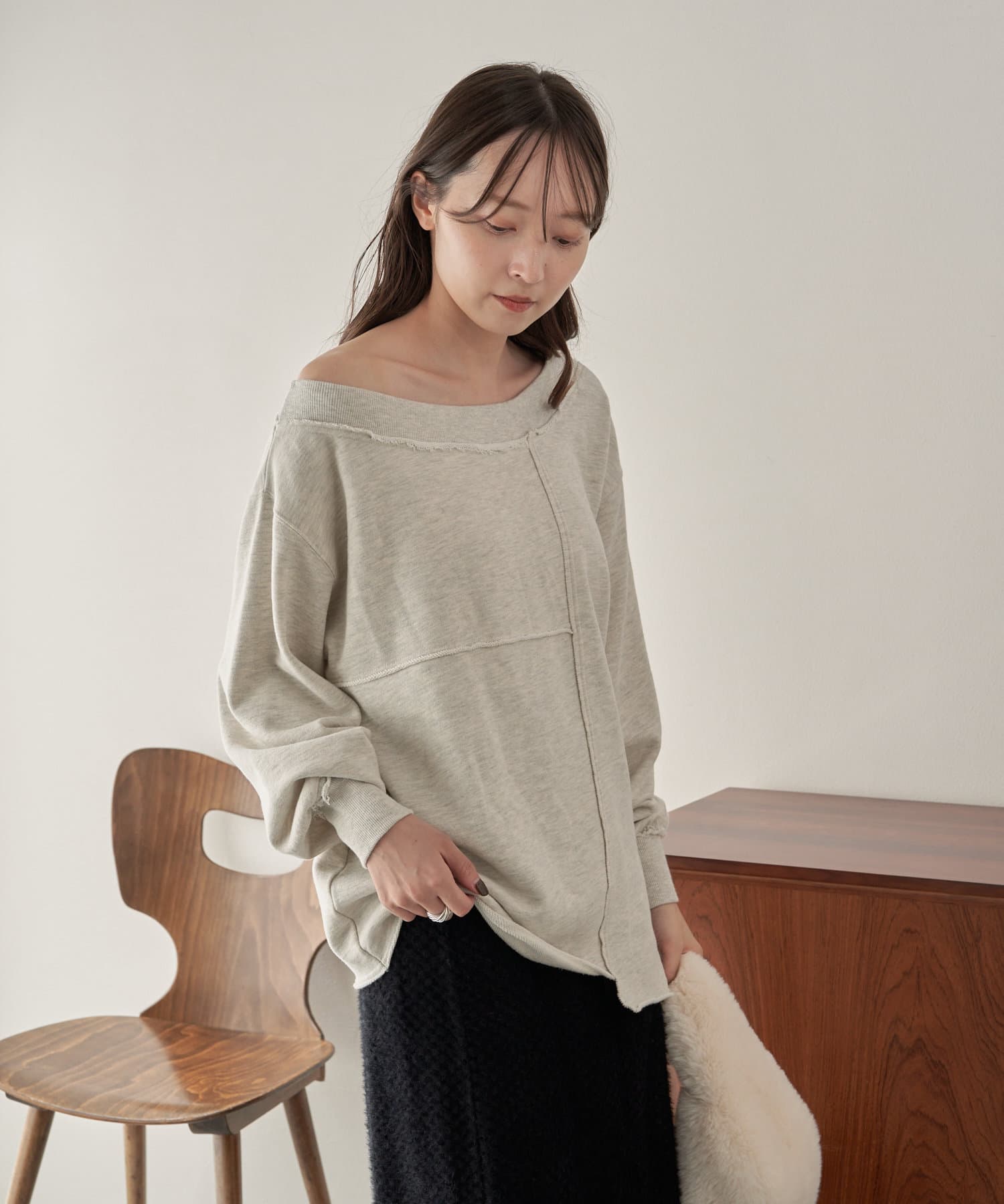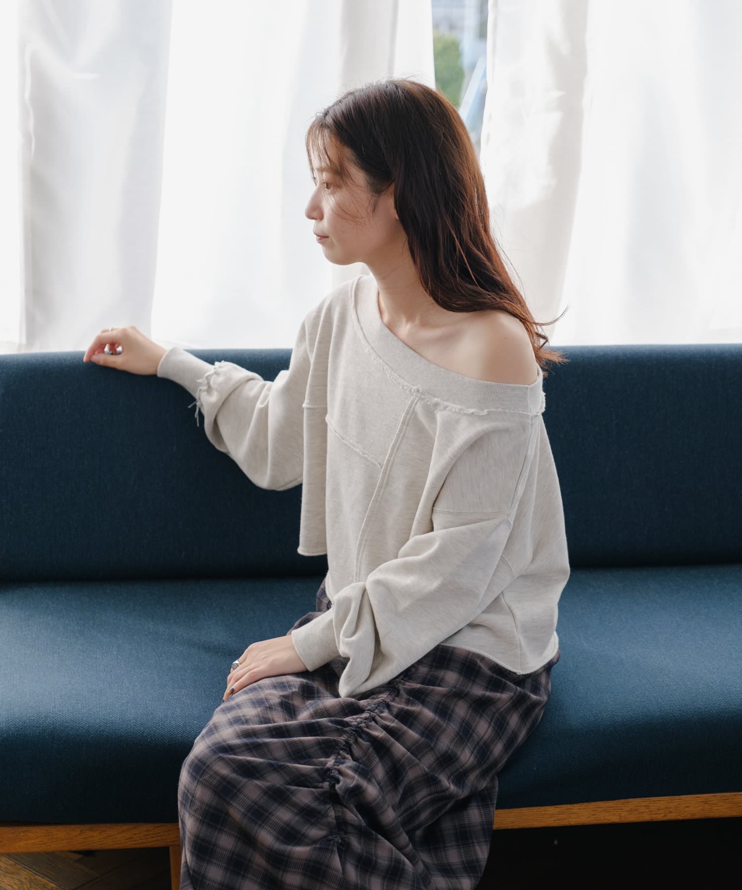 袖のたぽっと感が女性らしいスウェット。