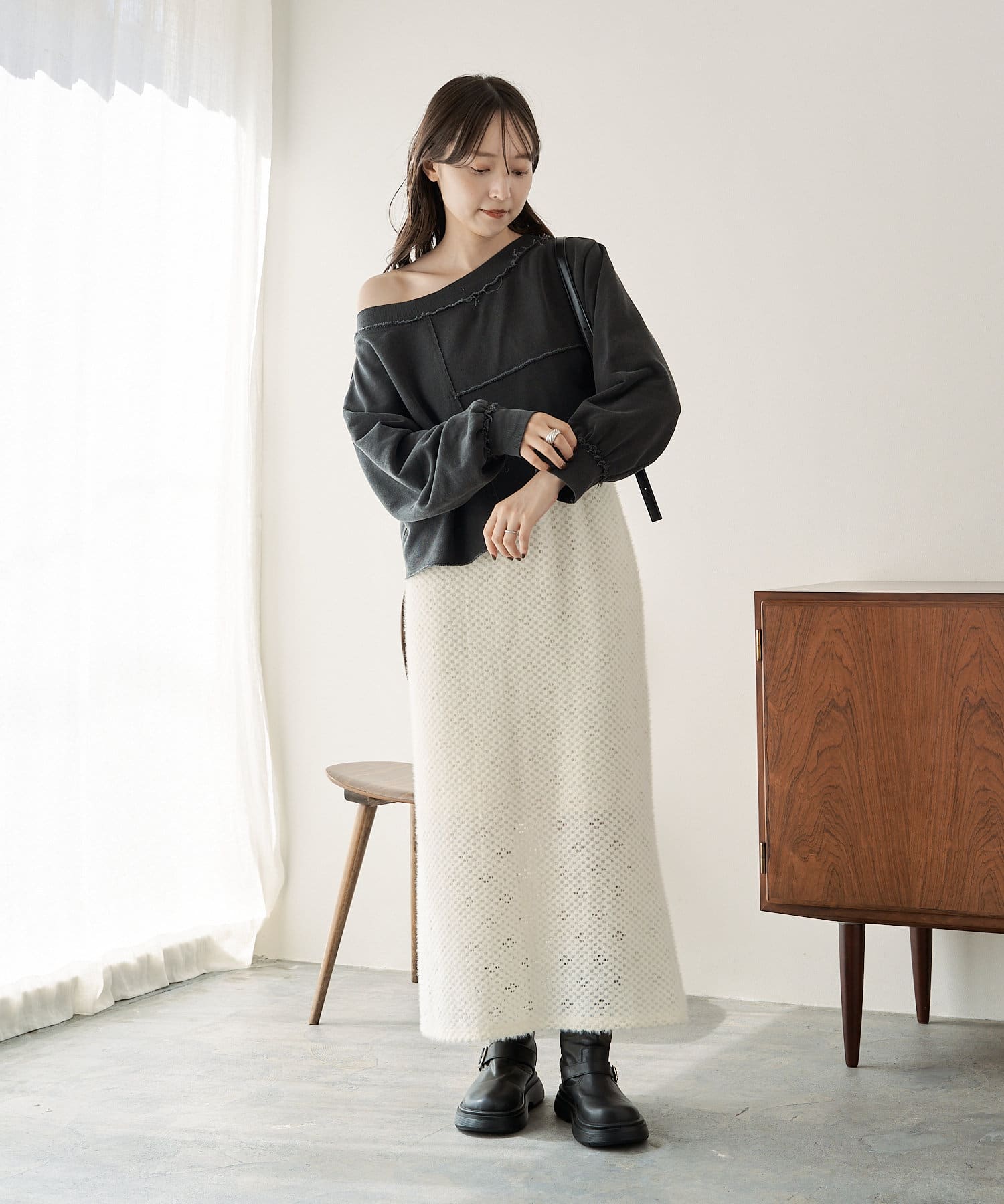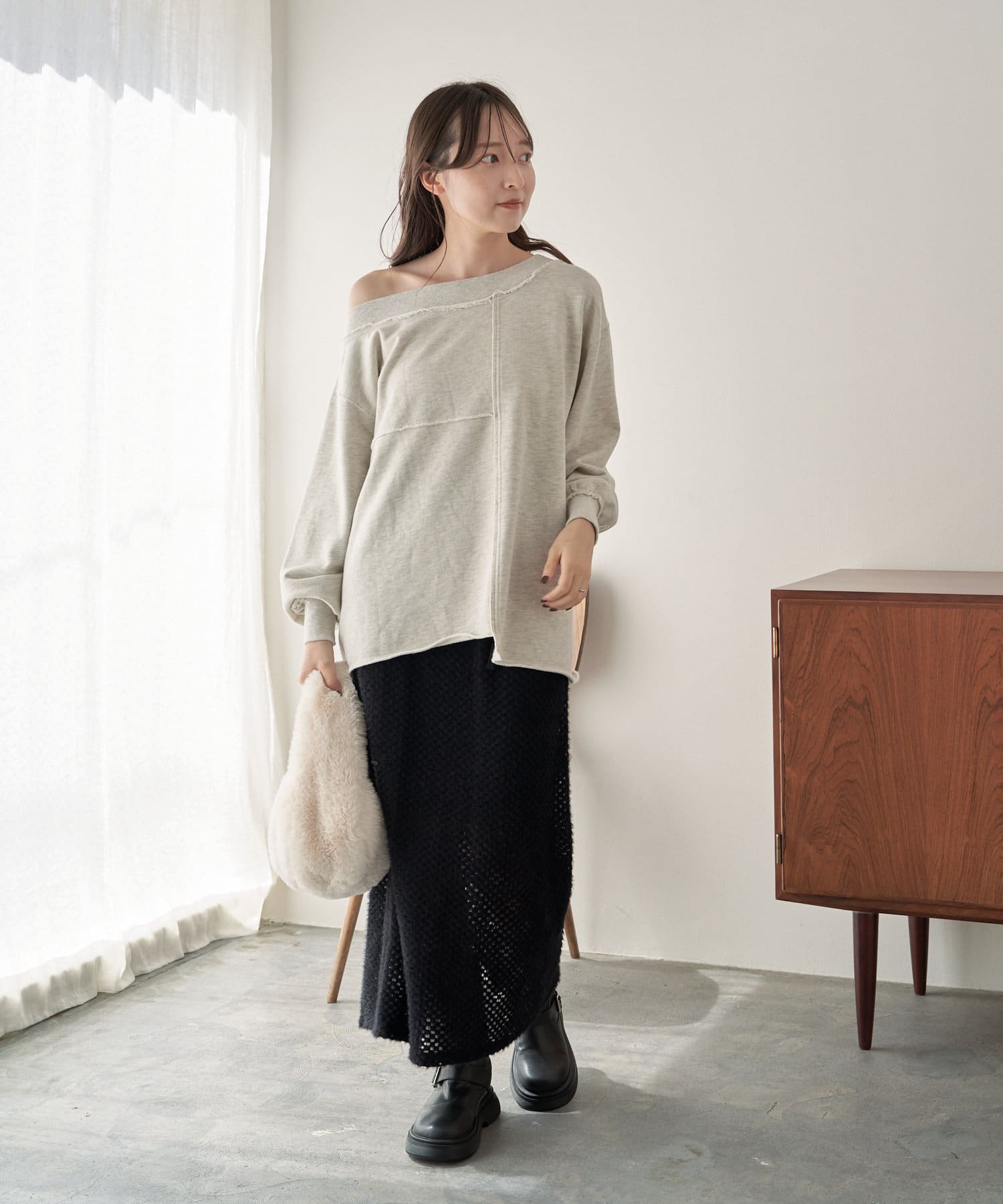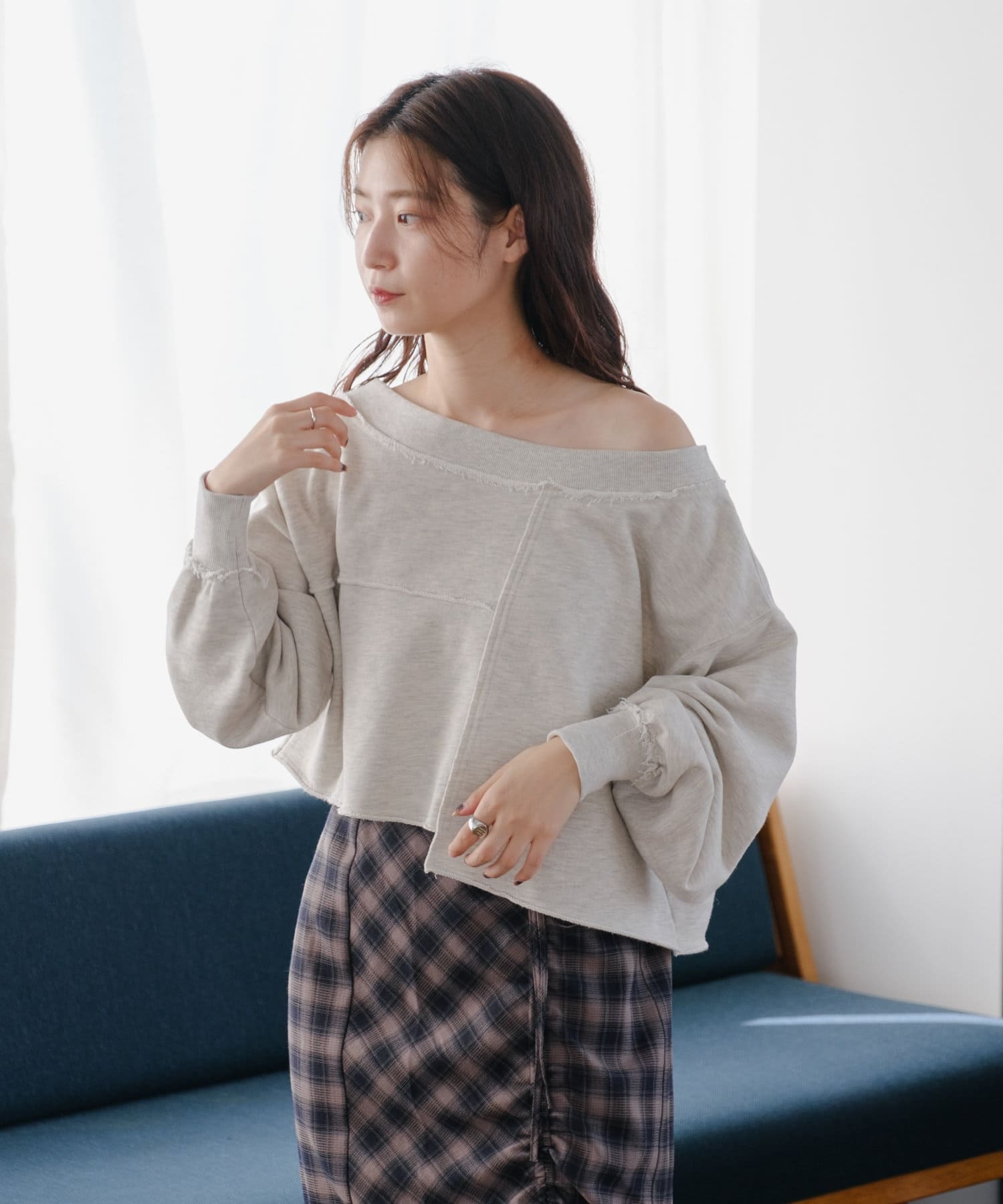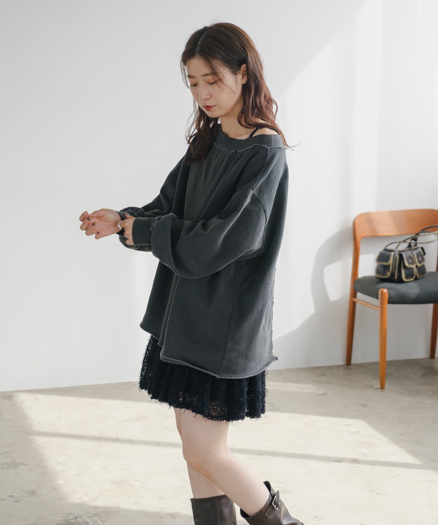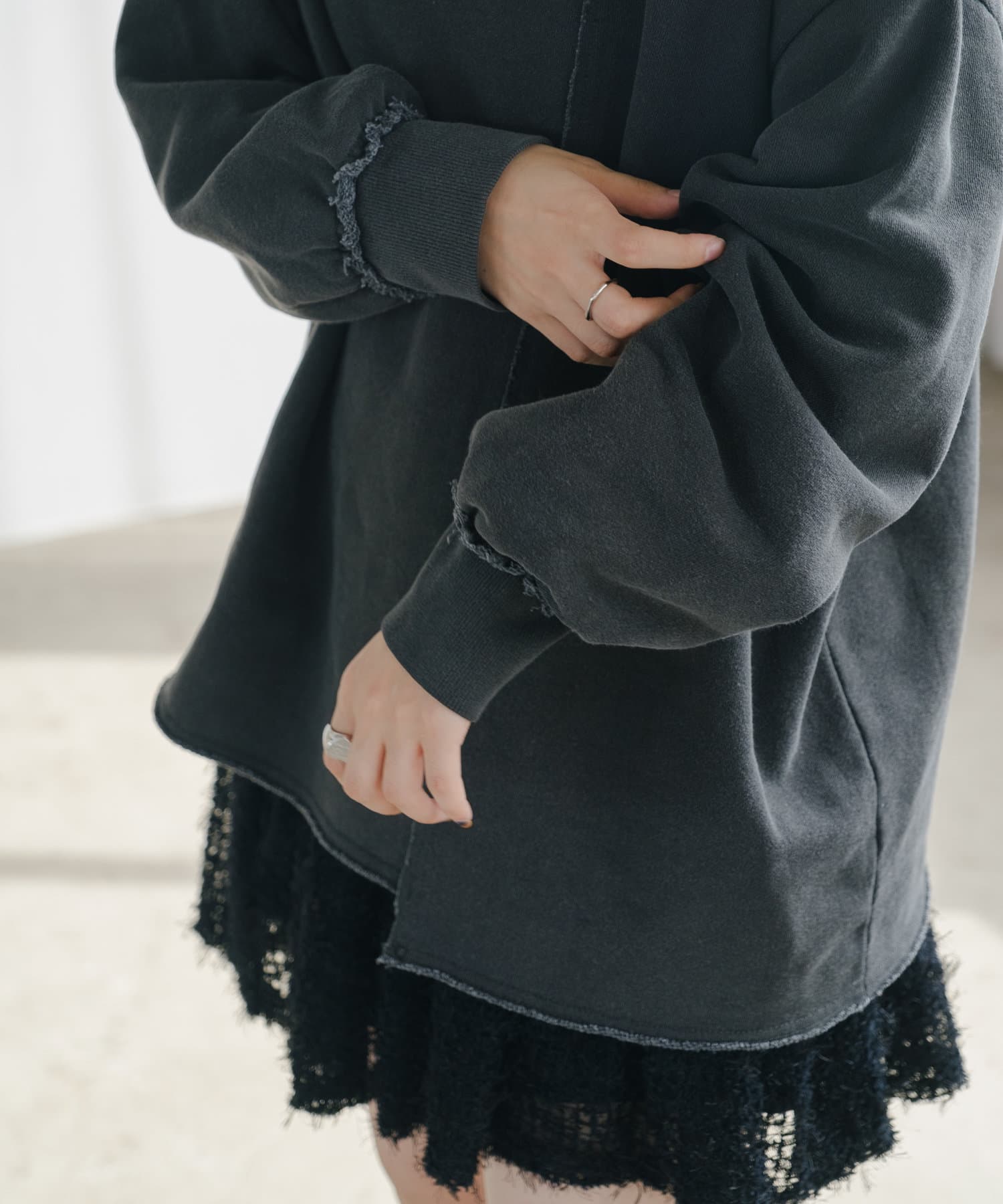 袖のたぽっと感が女性らしいスウェット。