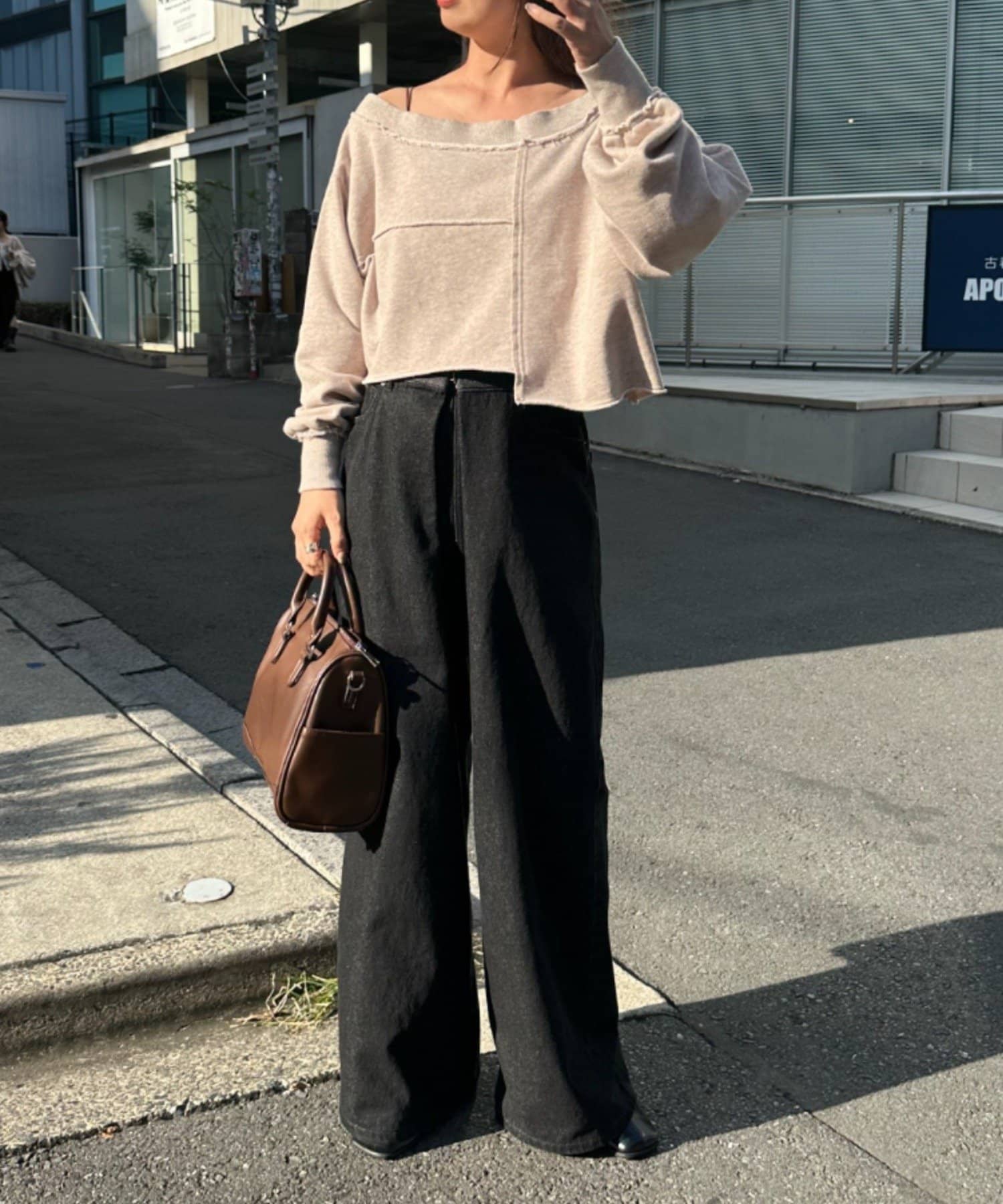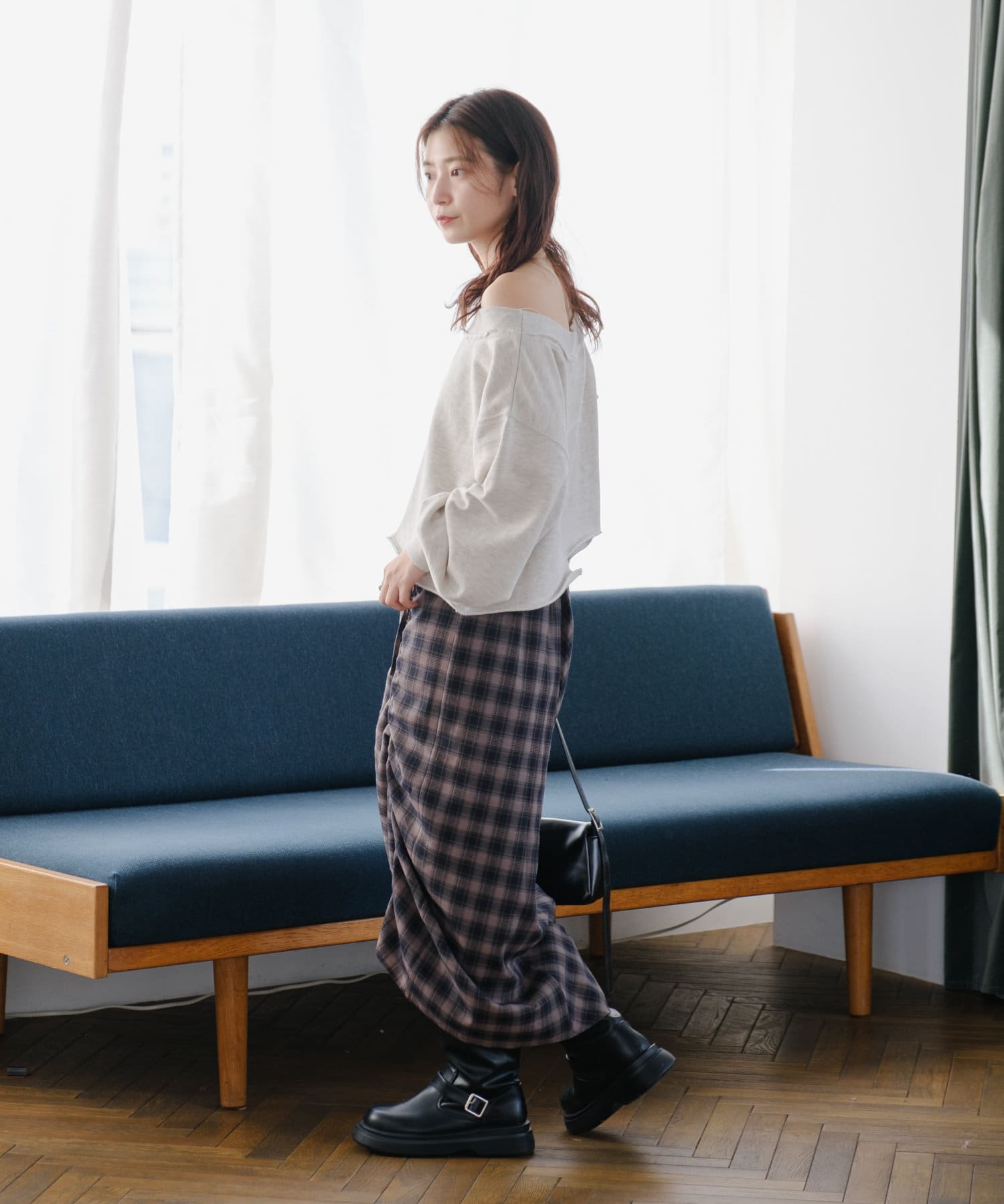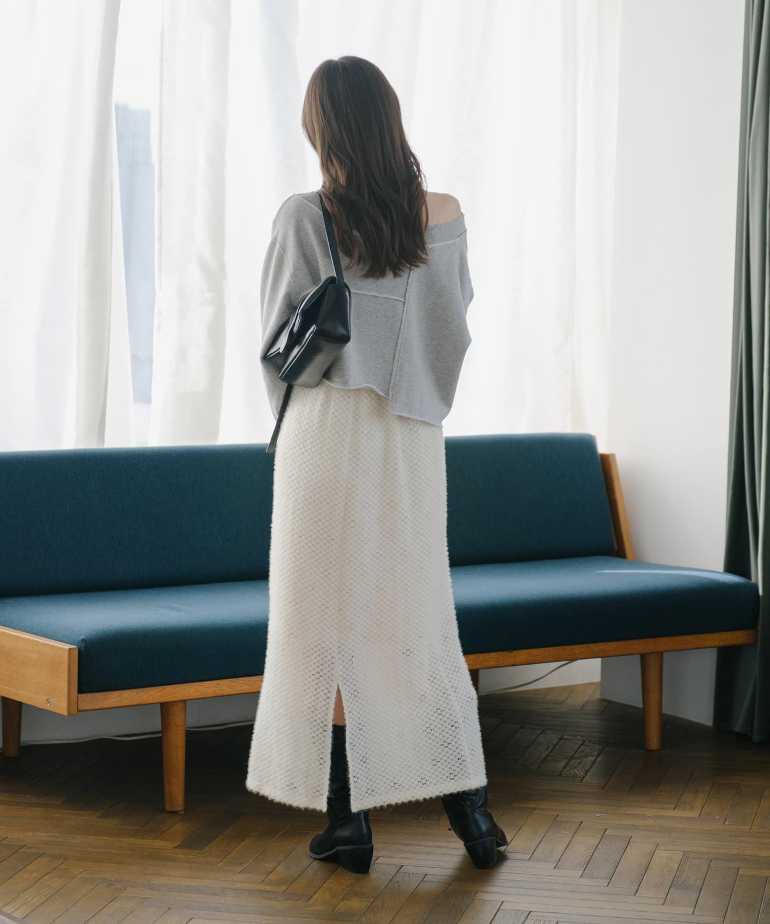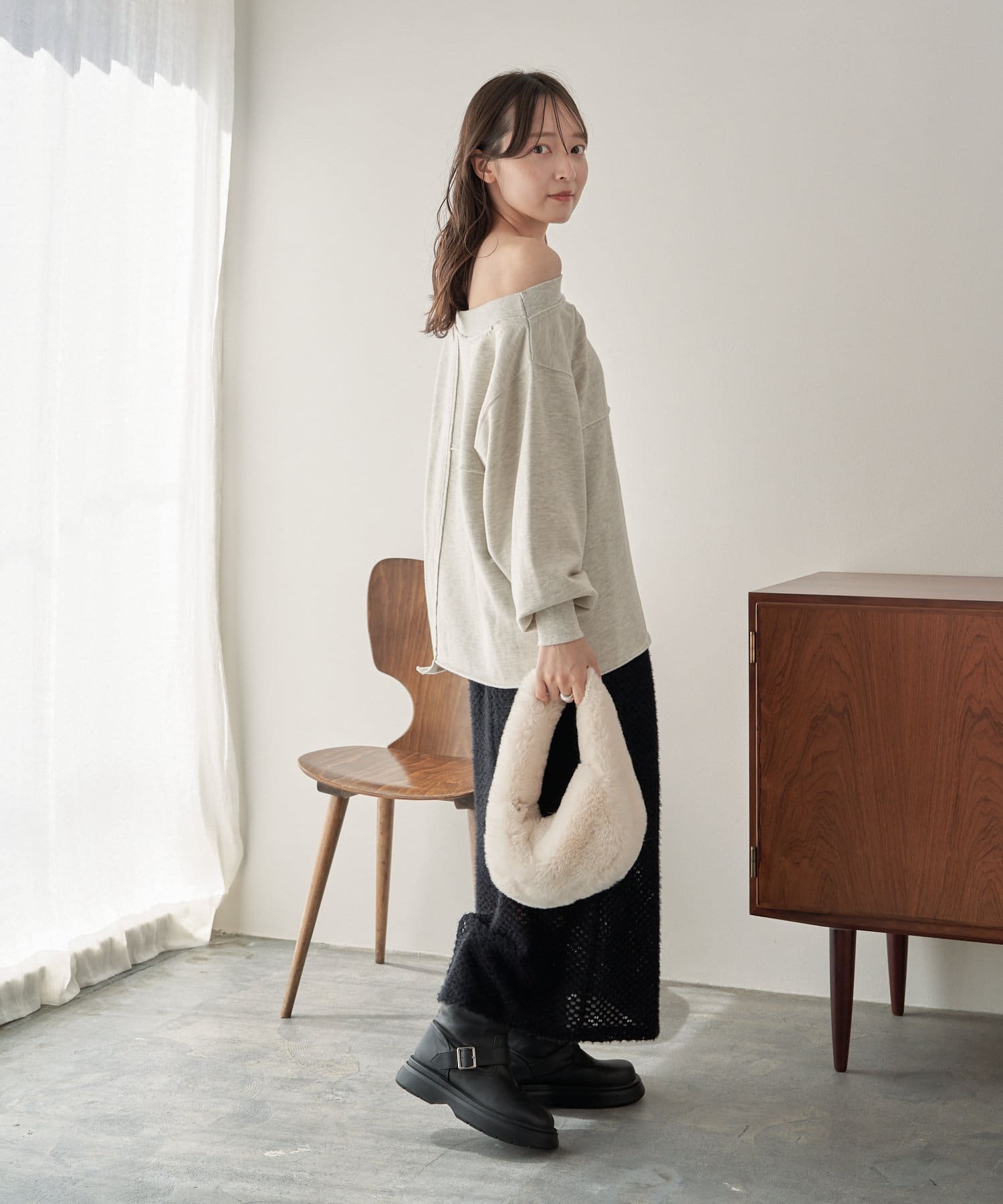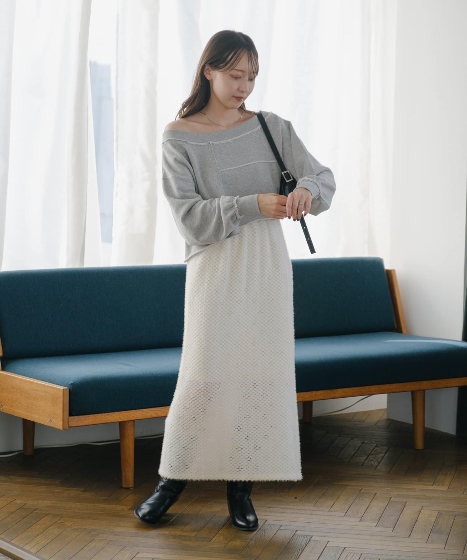 袖のたぽっと感が女性らしいスウェット。